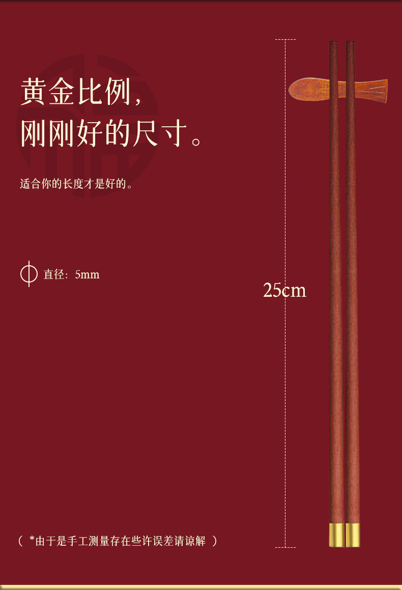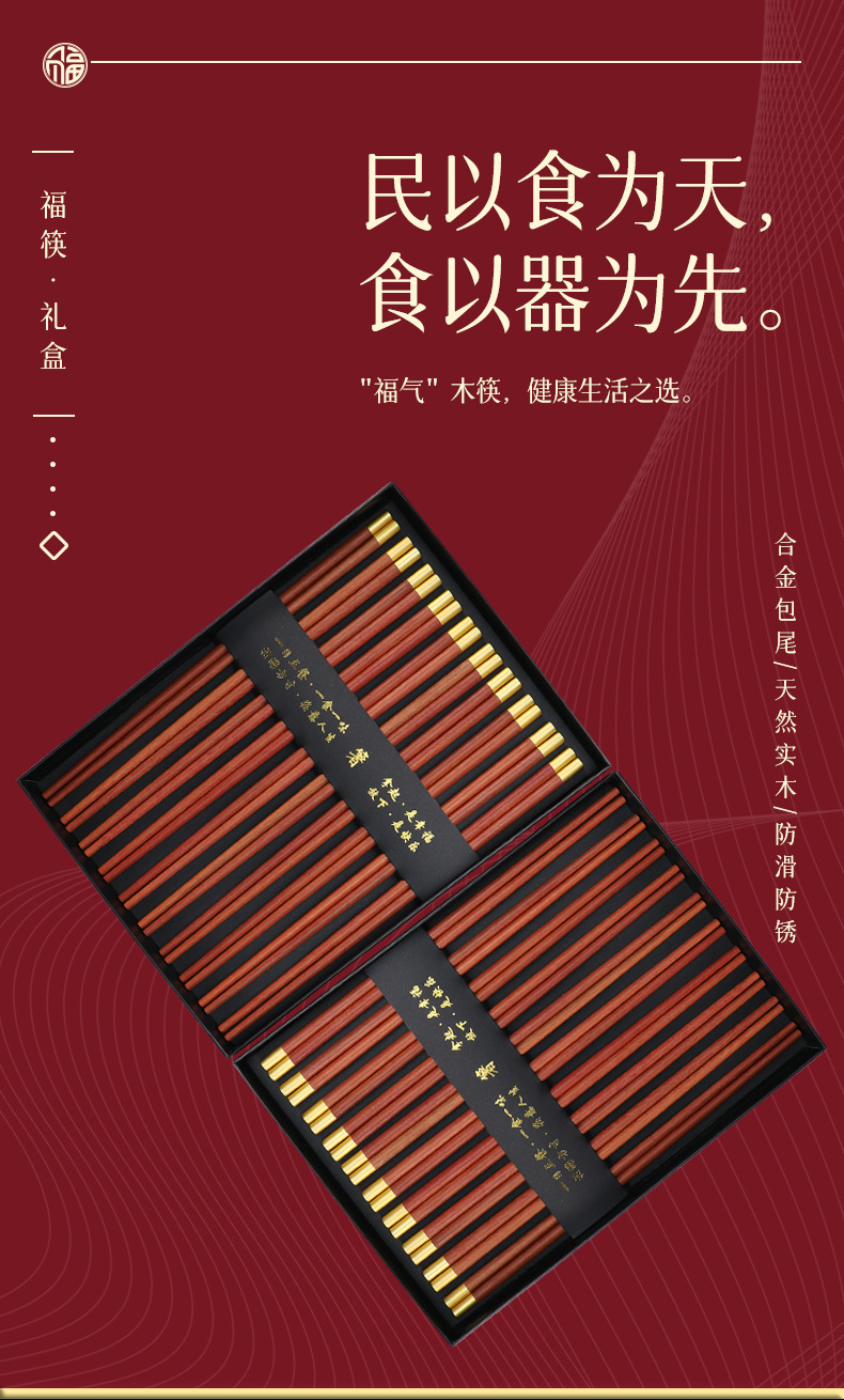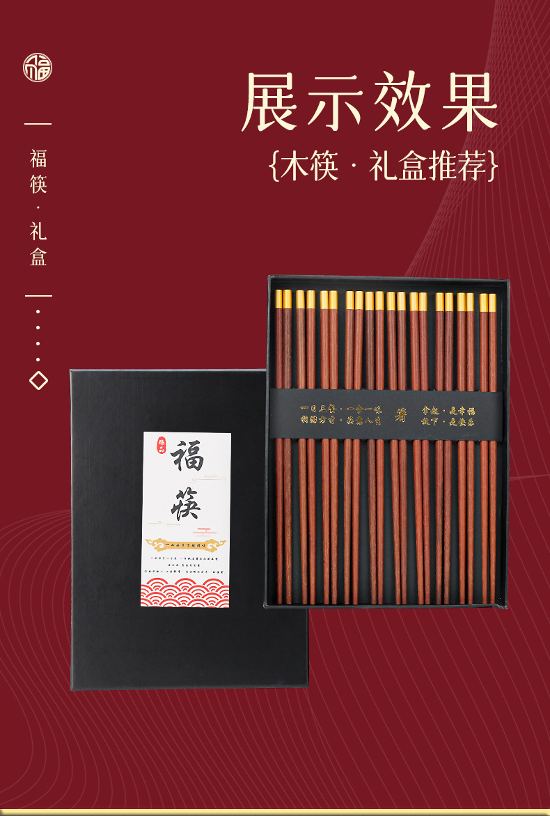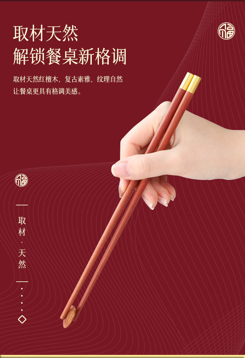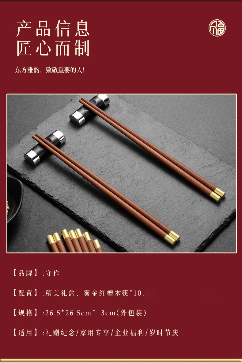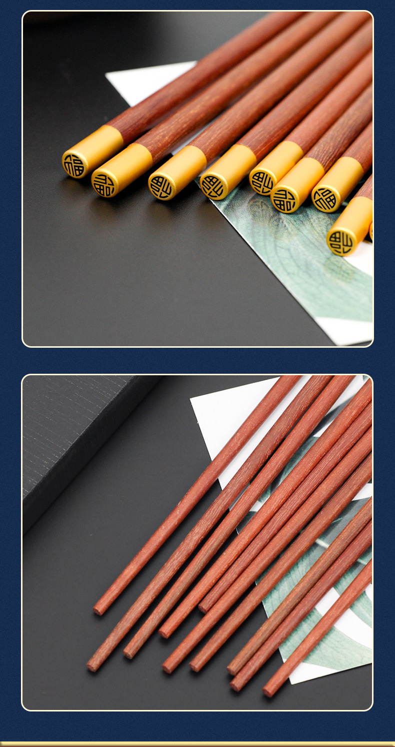 守作红檀木福筷 抗压耐磨防腐防虫防霉 无漆无蜡 复古素雅 纹理自然 健康厨房生活 精美礼盒送礼