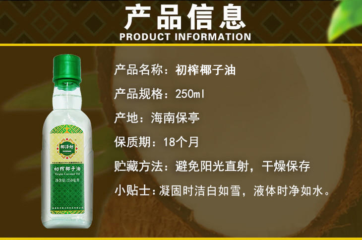 海南椰子油椰泽坊初榨椰子油两瓶装送人自用更划算可以喝的椰子油