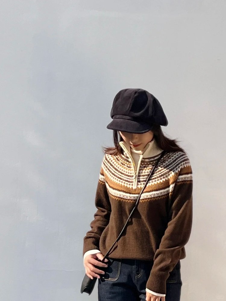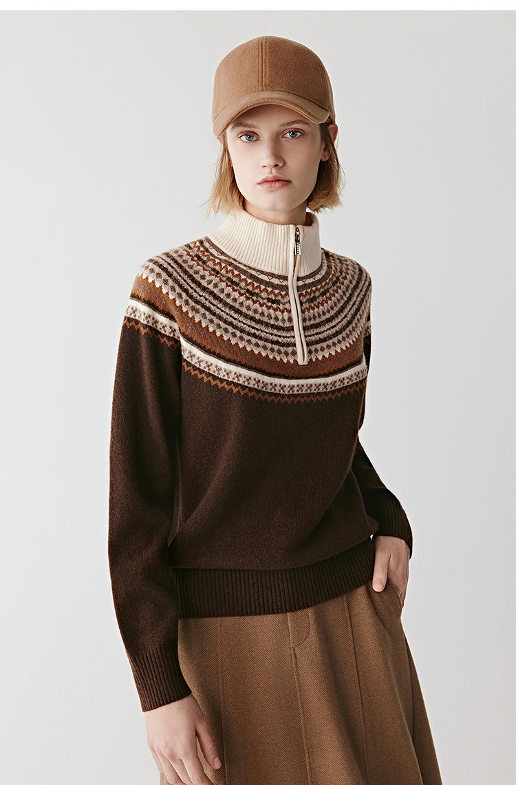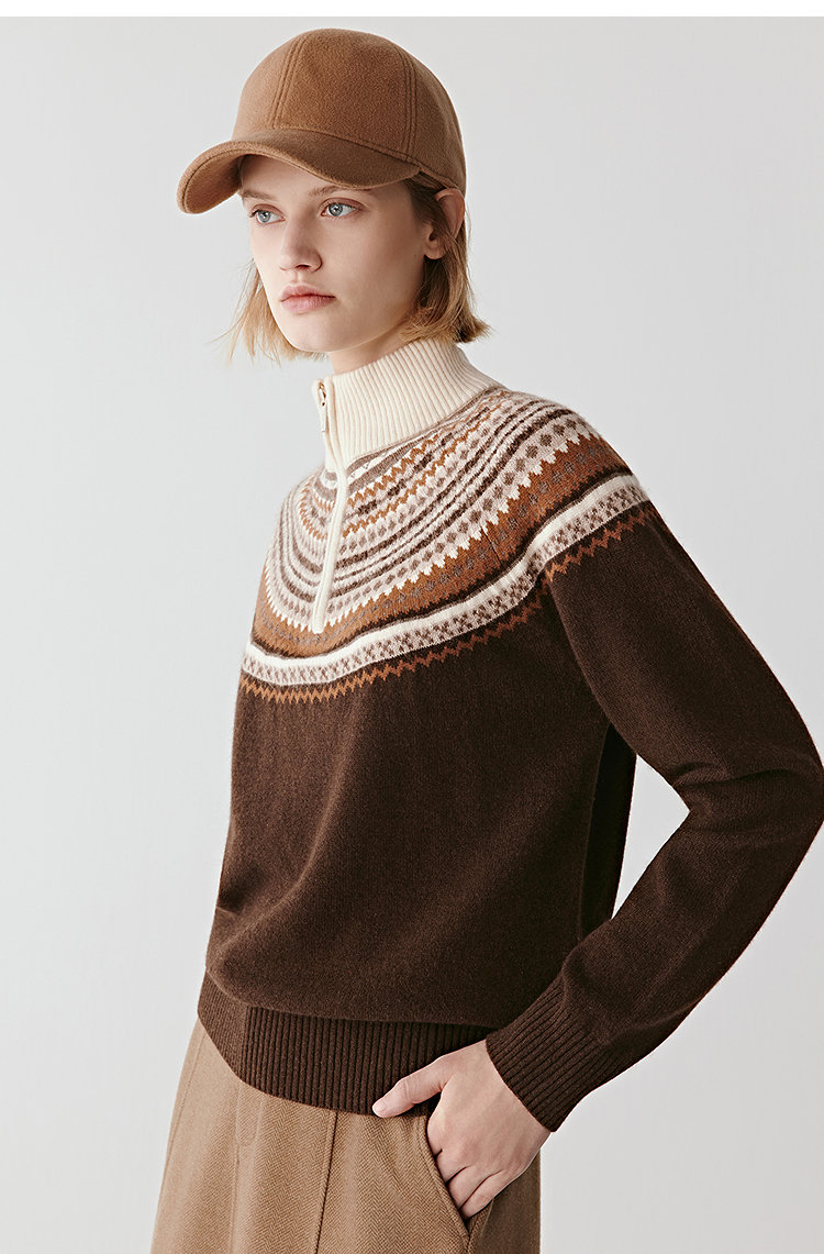 小禾羊毛费尔岛半高领款 | 穿搭的层次感,被这件拉链针织衫轻松拿捏