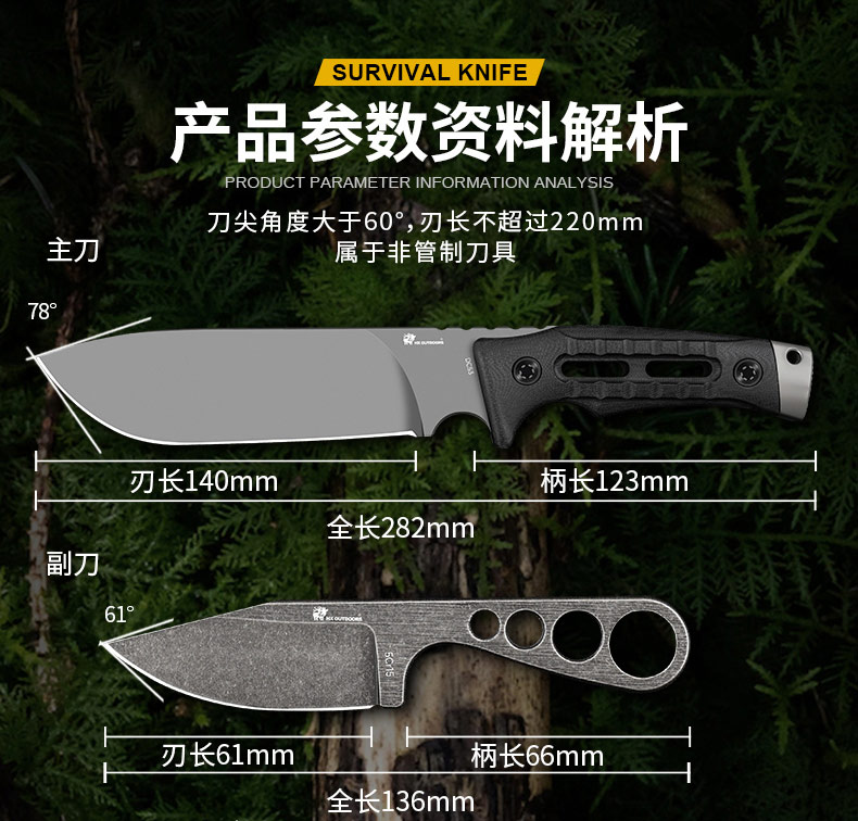 汉道【疣猪挂脖刀】多功能组合工具挂脖刀野外求生军刀直刀