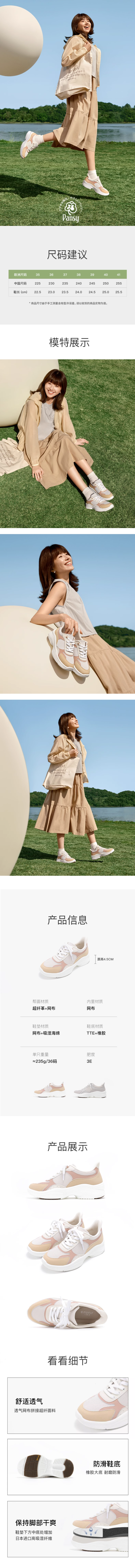 PANSY盼喜日本女鞋秒穿一脚蹬轻便舒适透气运动鞋2025春夏新款4236