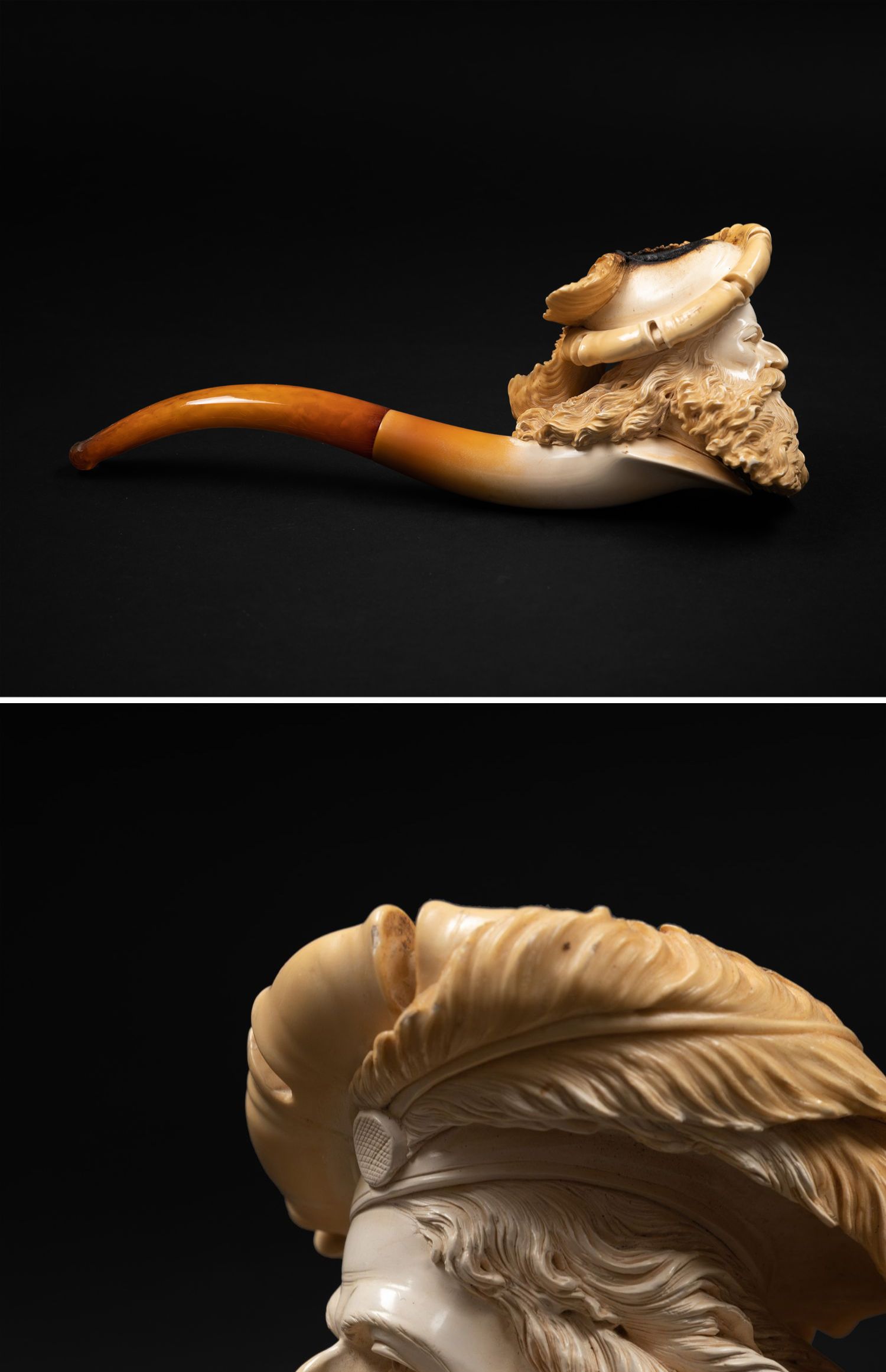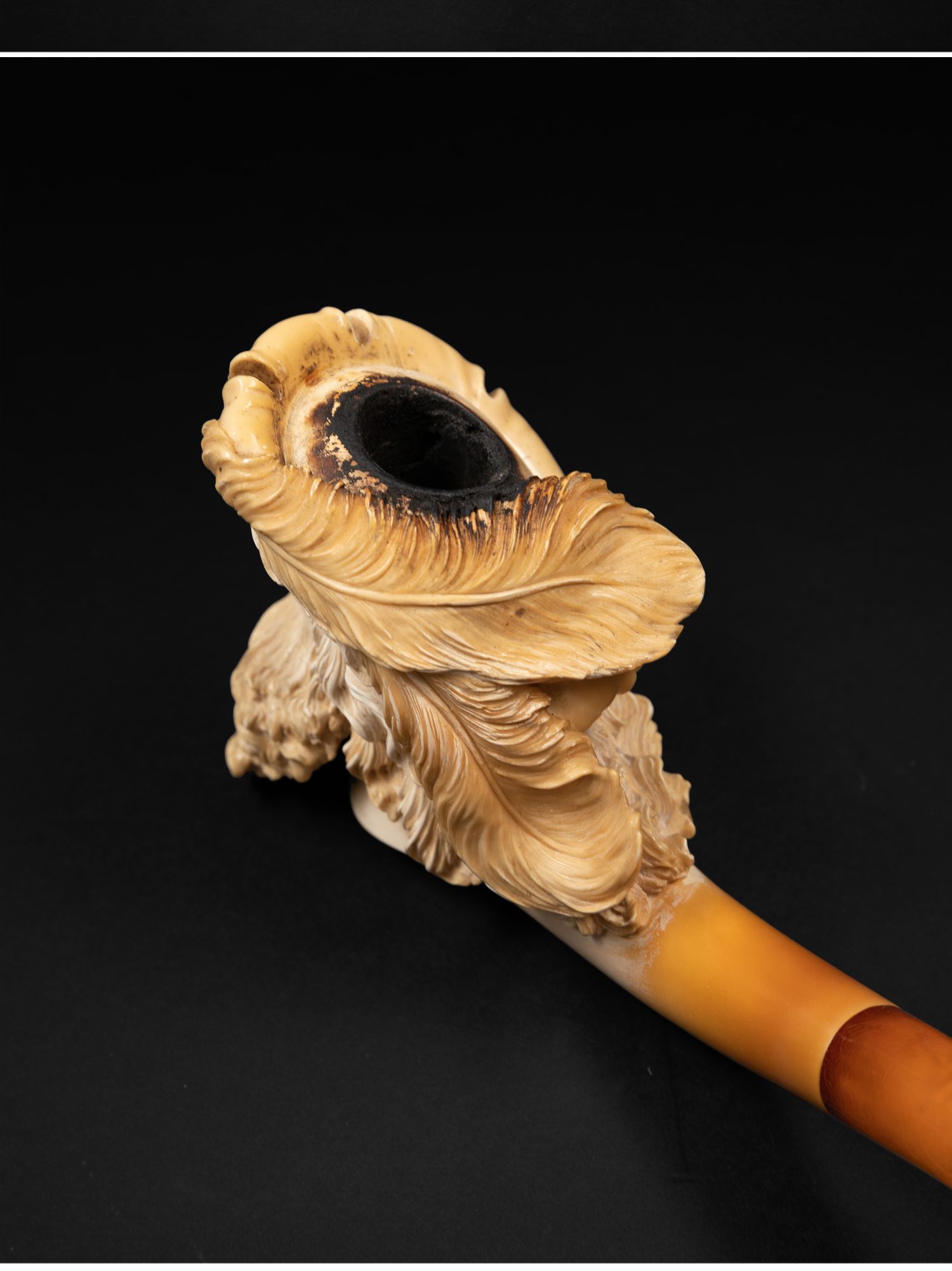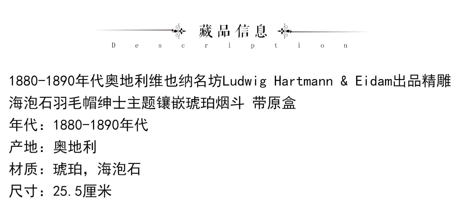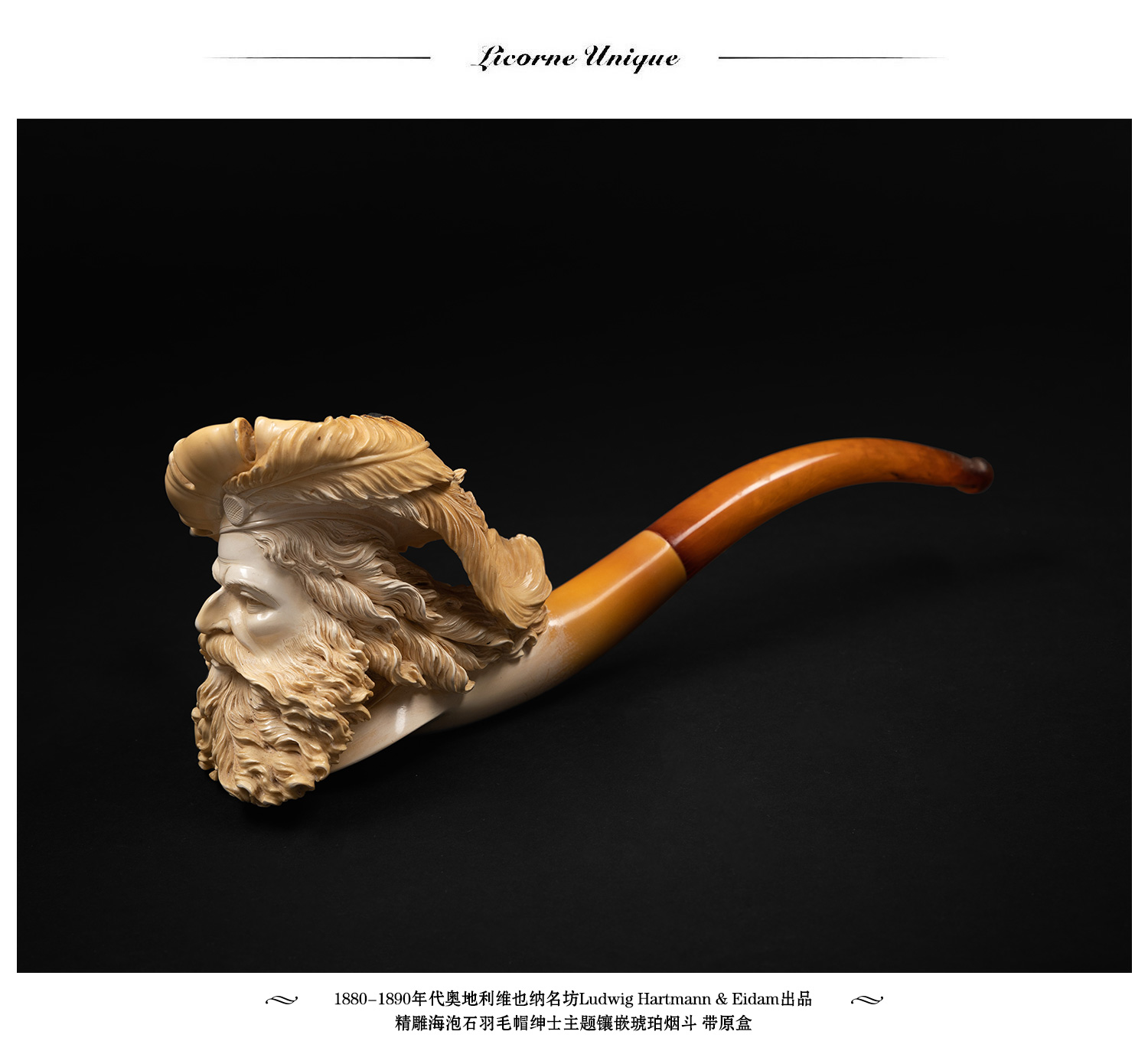 独角鹿西洋古董Ludwig Hartmann&Eidam海泡石羽毛帽绅士琥珀烟斗