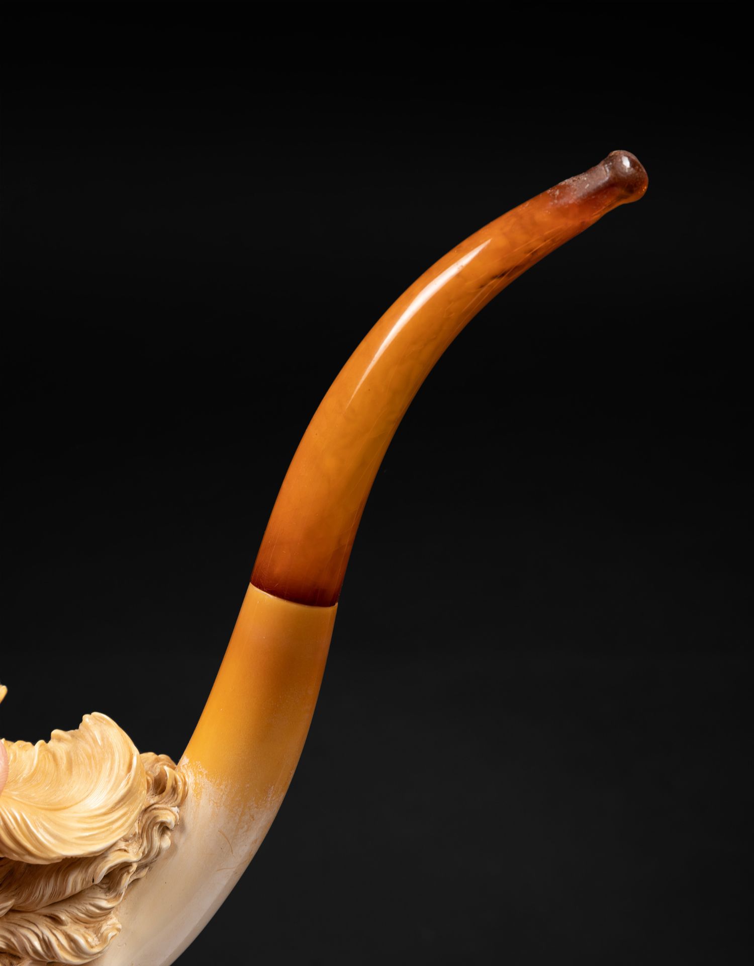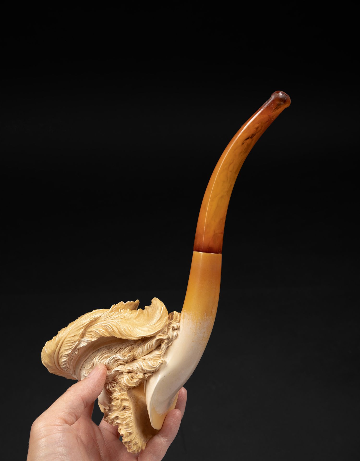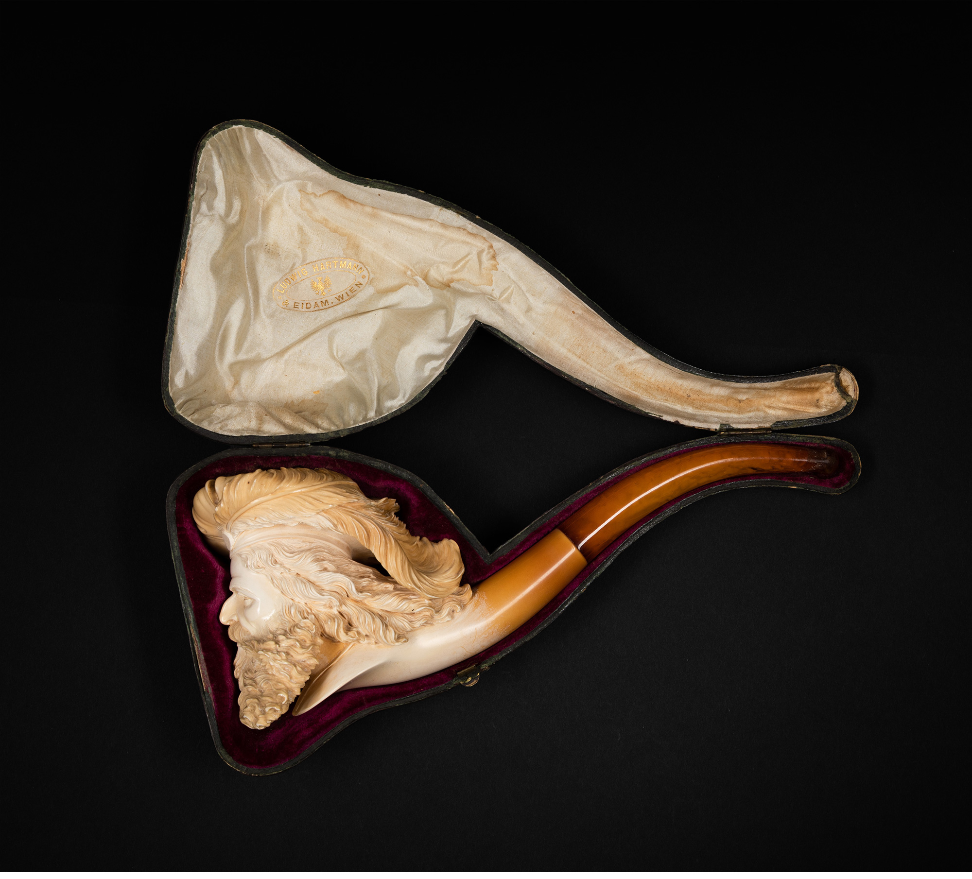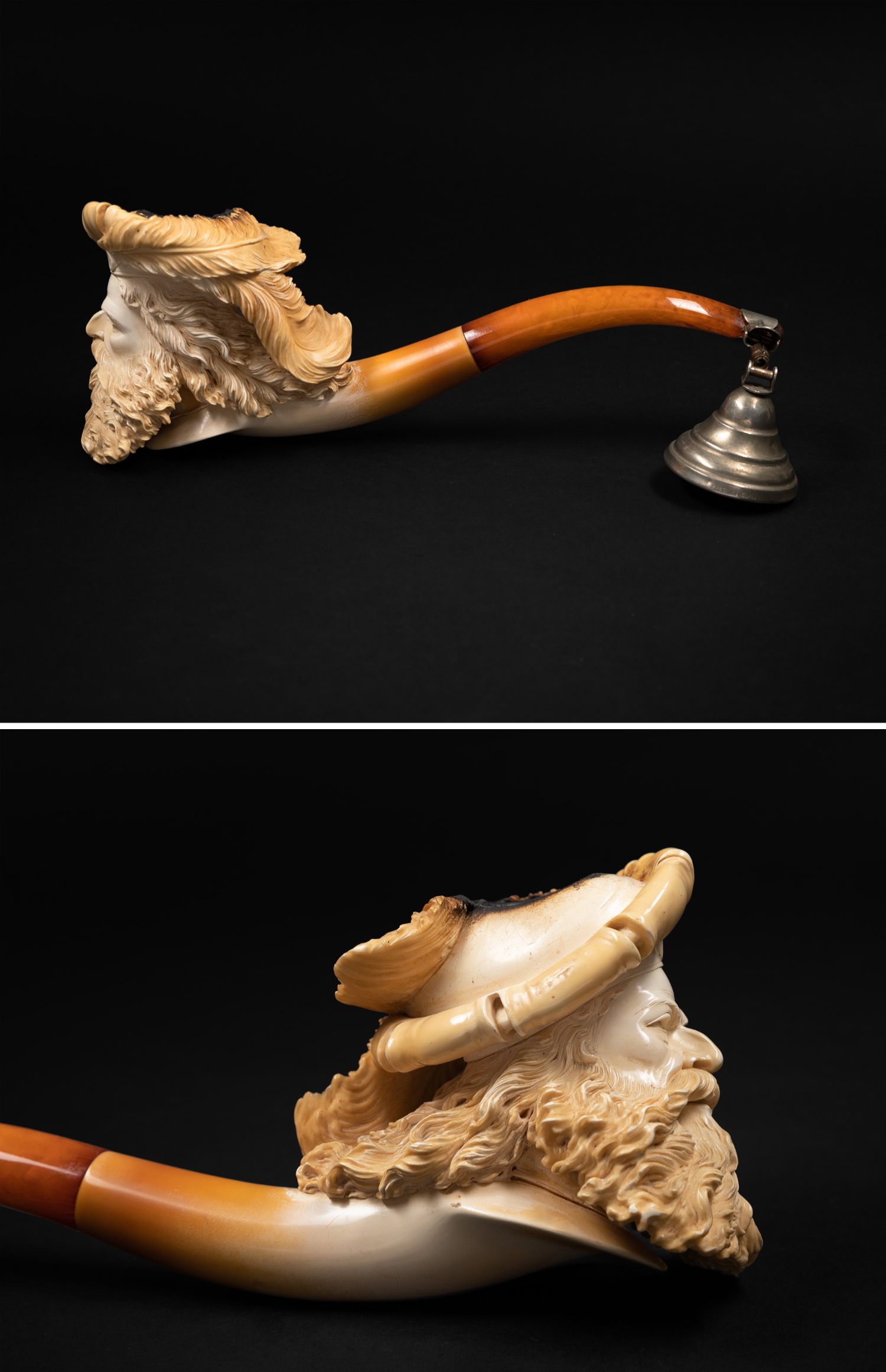 独角鹿西洋古董Ludwig Hartmann&Eidam海泡石羽毛帽绅士琥珀烟斗