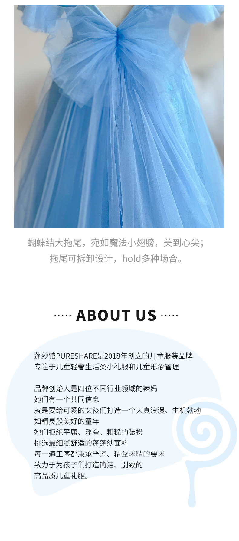 PureShare蓬纱馆,2018年创立的儿童服装品牌,专注于儿童轻奢生活类小礼服,主张“让孩子做最独特的自己”的品牌理念,为孩子们提供时尚简洁、优雅而又不失童真的生活类礼服。