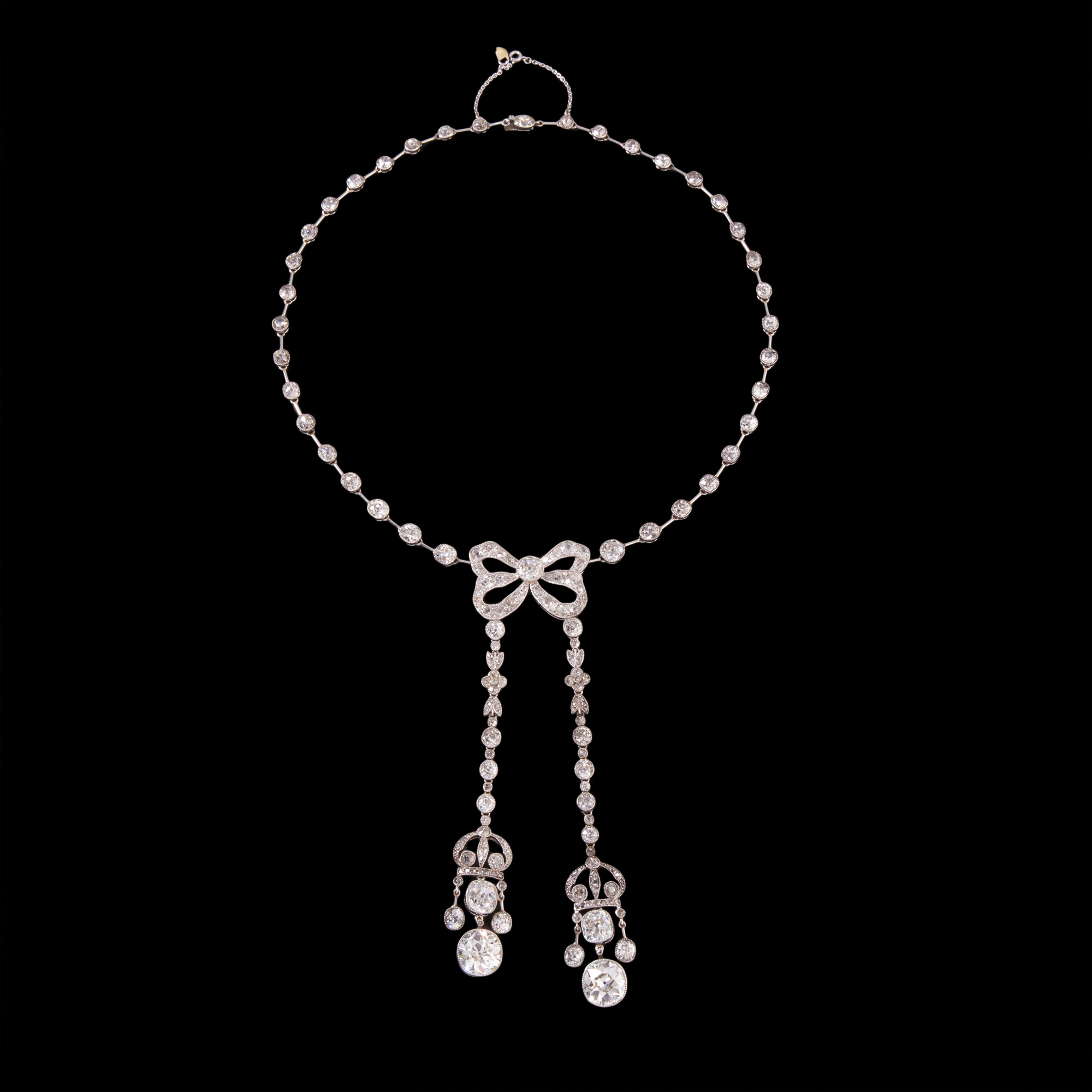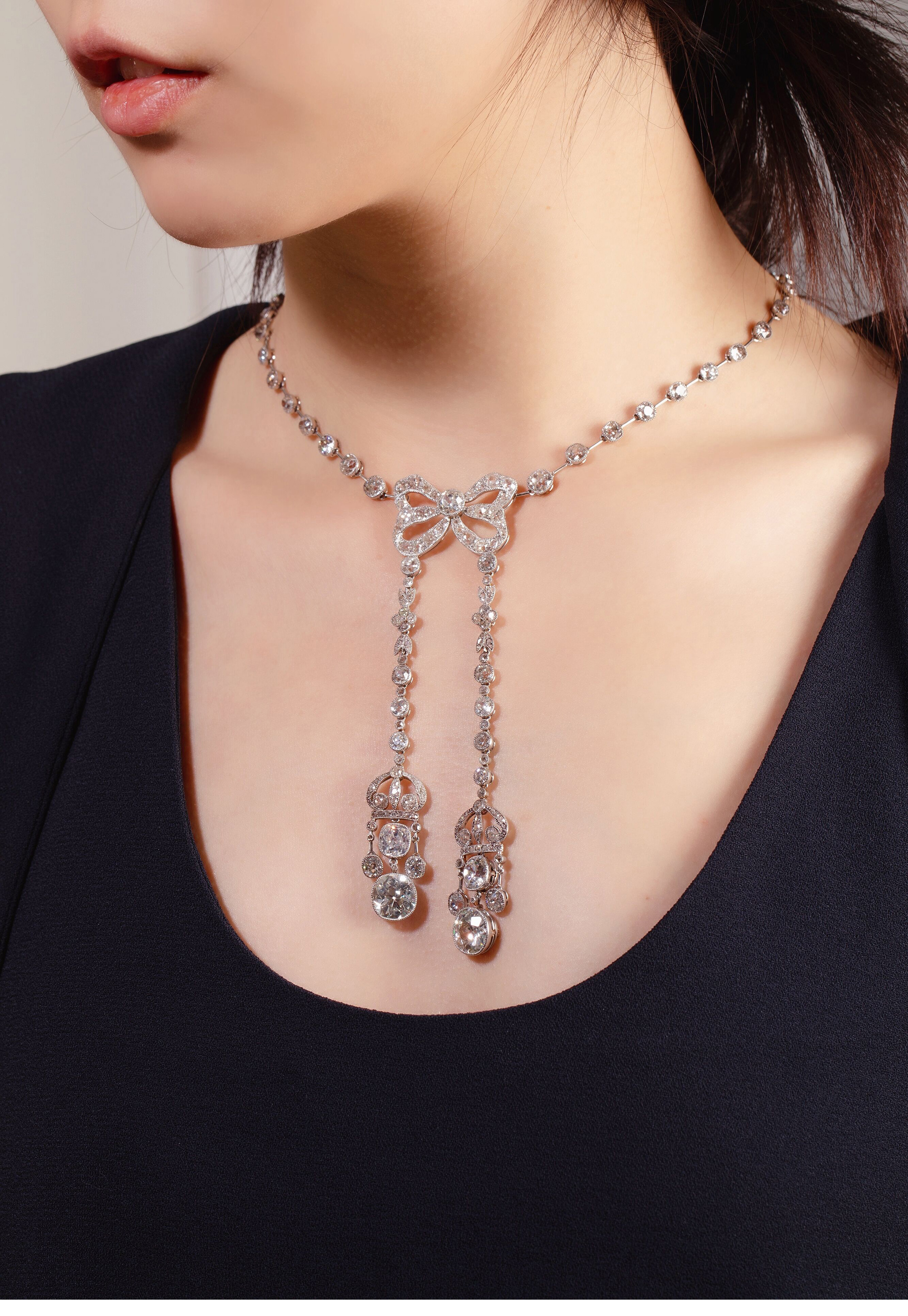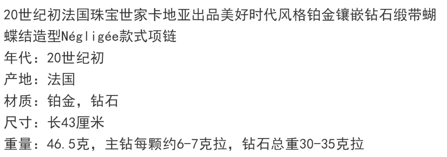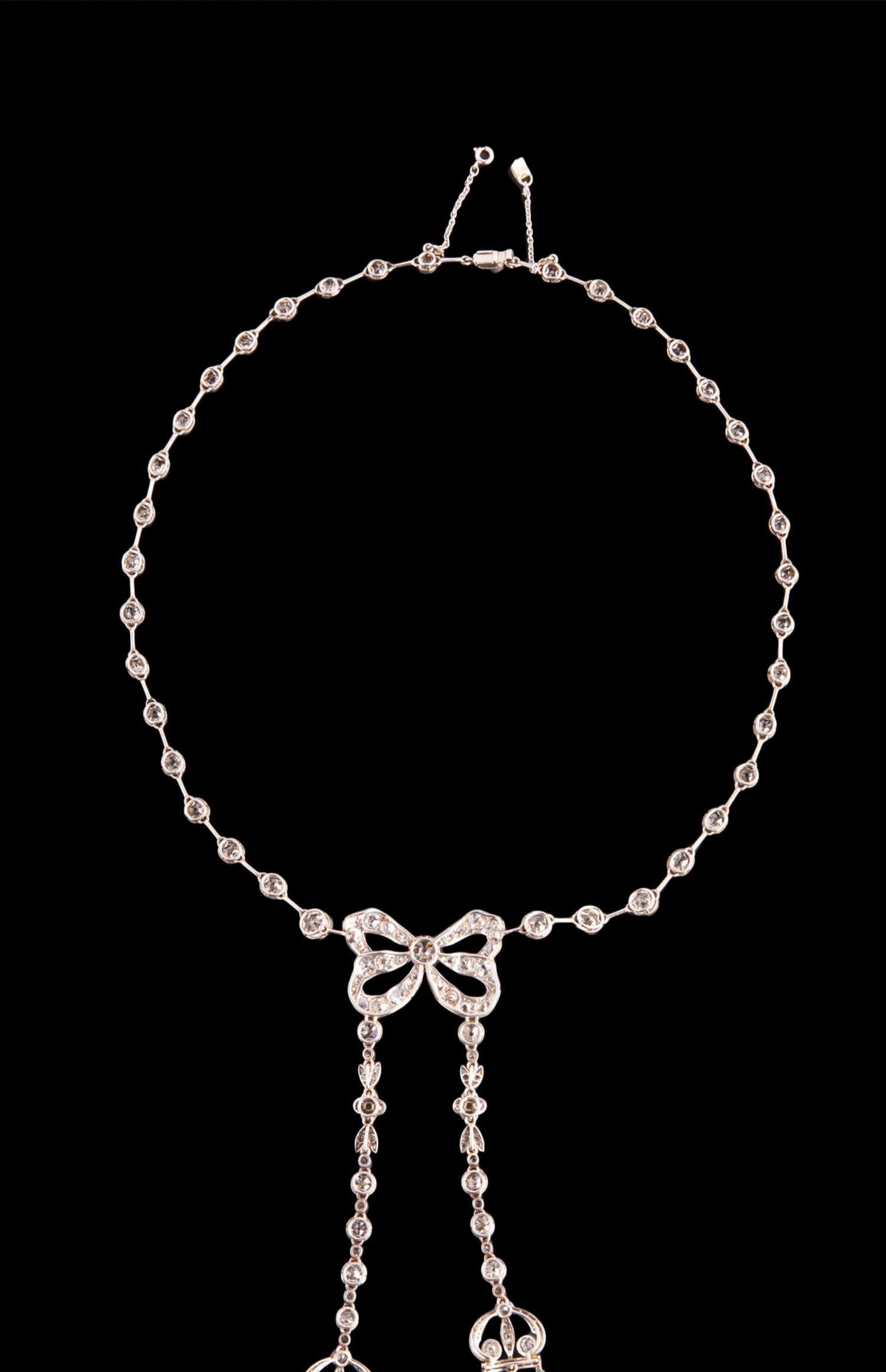 独角鹿西洋古董首饰美好时代铂金镶钻石缎带蝴蝶结Négligée项链