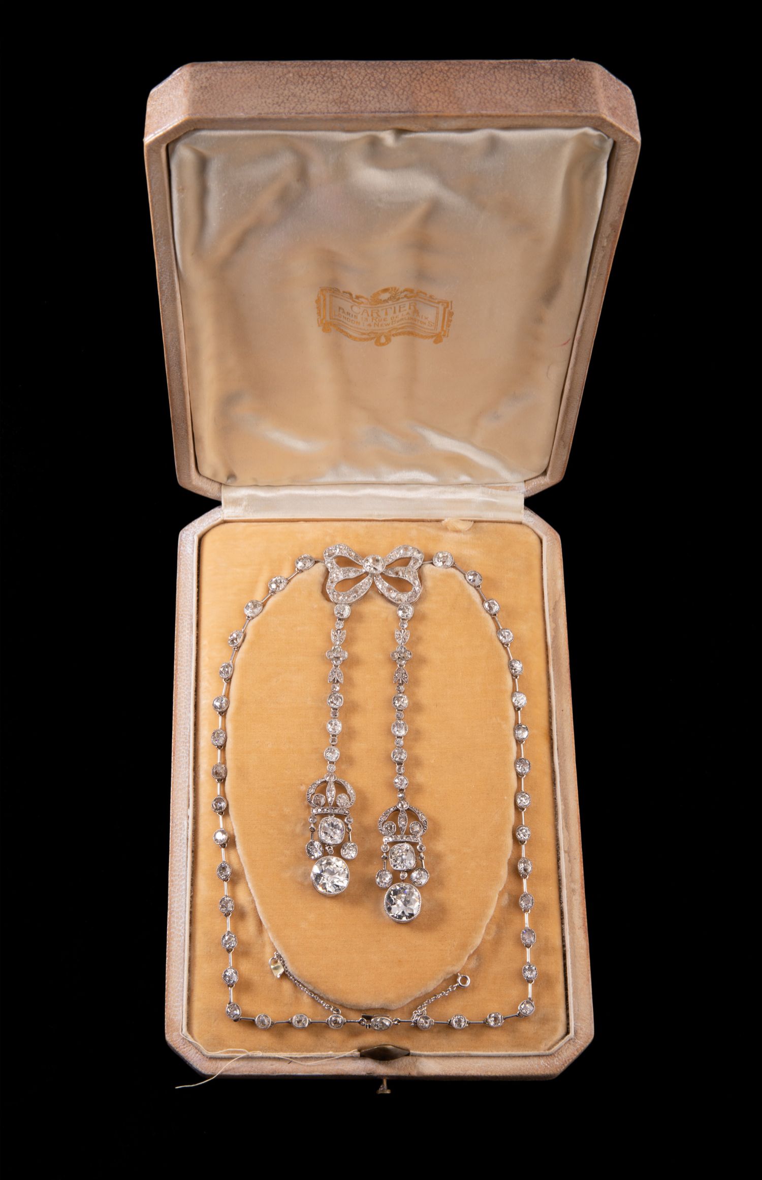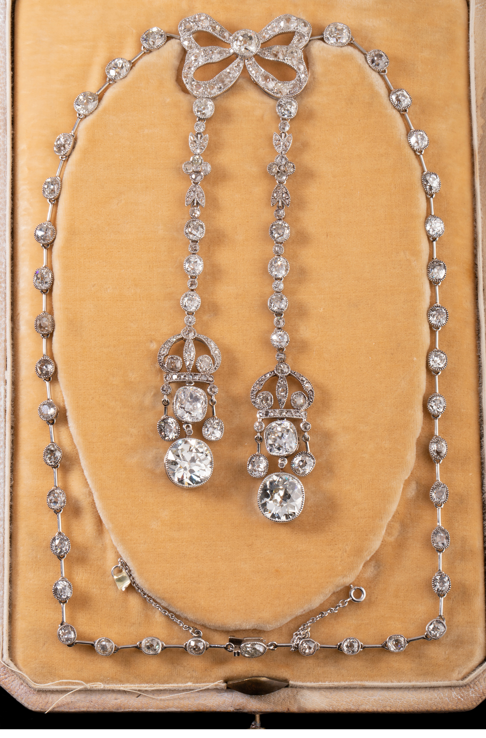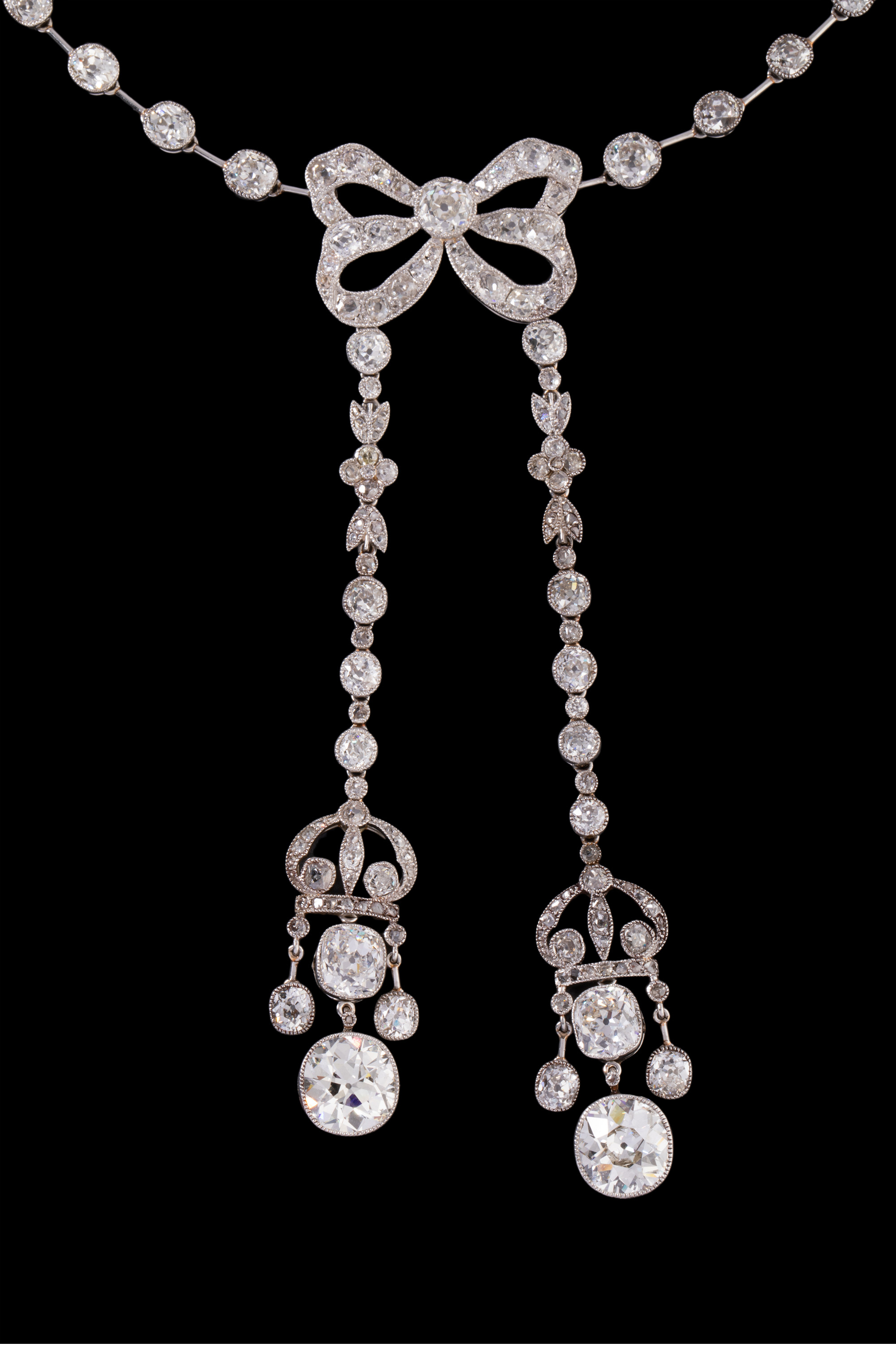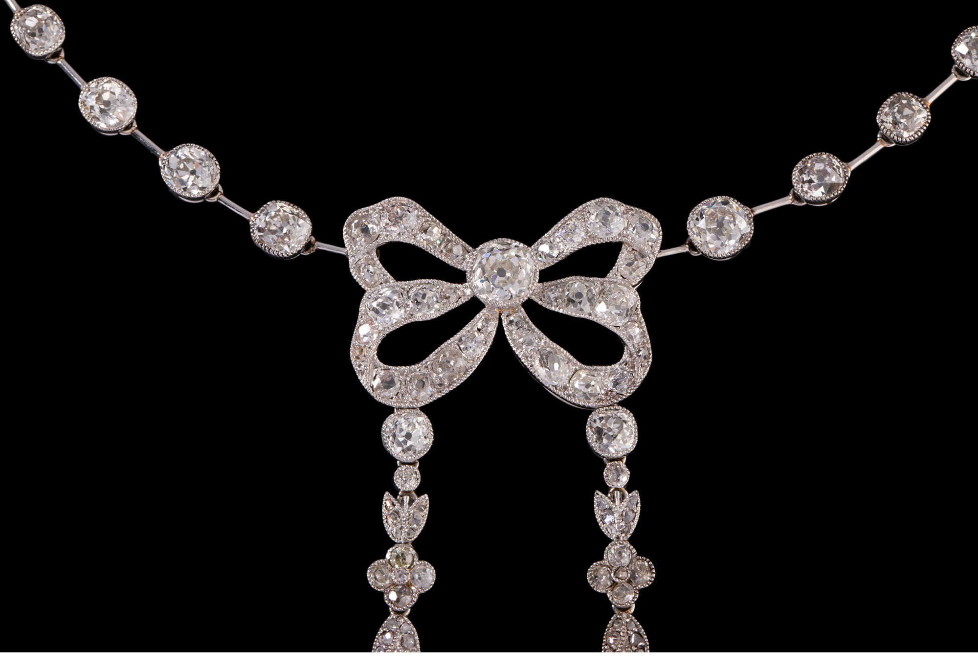 独角鹿西洋古董首饰美好时代铂金镶钻石缎带蝴蝶结Négligée项链