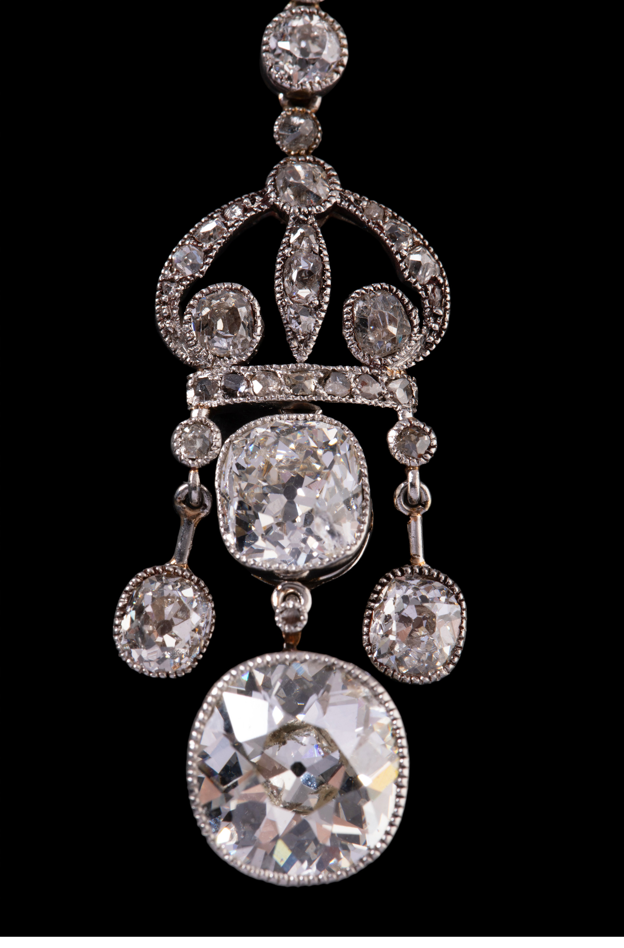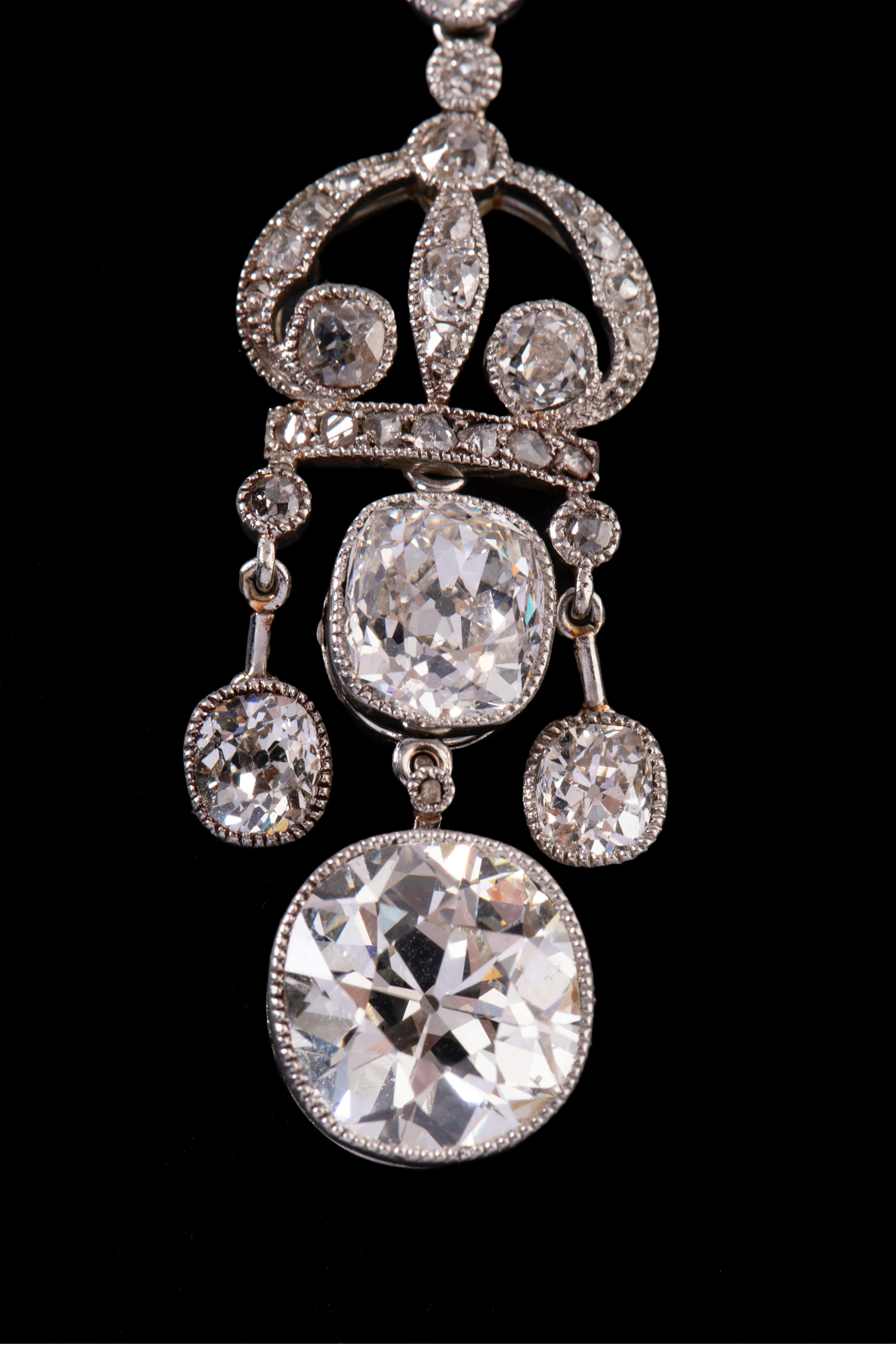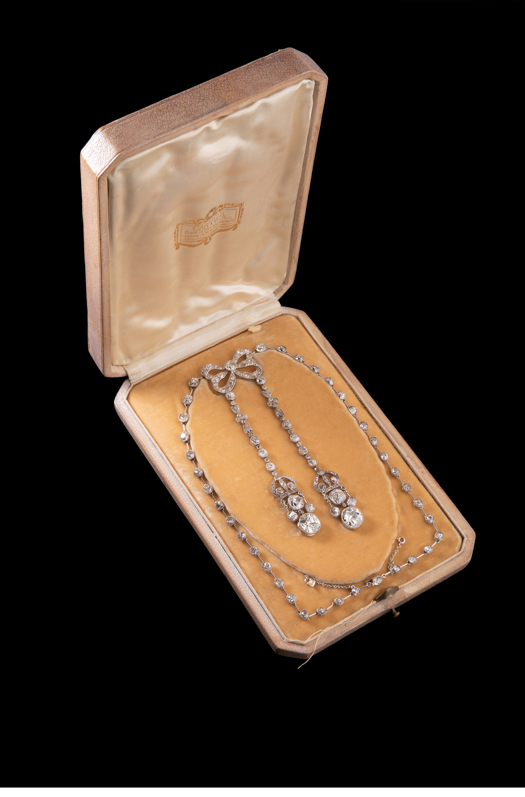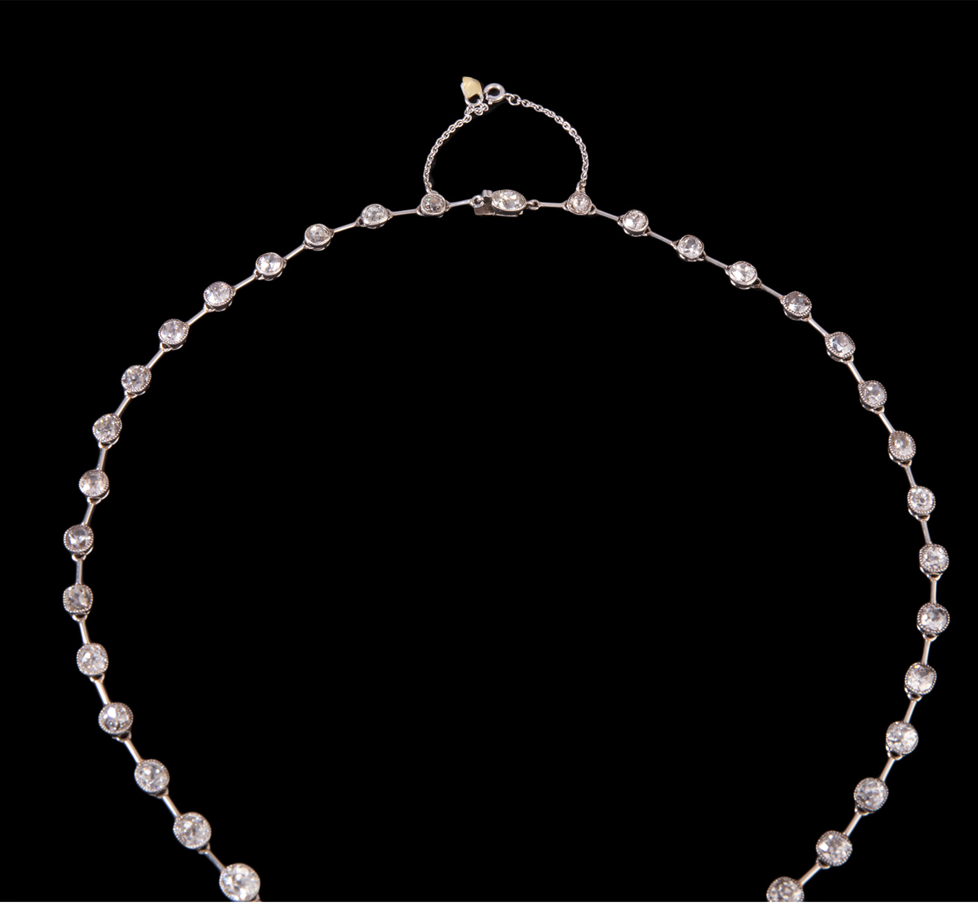 独角鹿西洋古董首饰美好时代铂金镶钻石缎带蝴蝶结Négligée项链