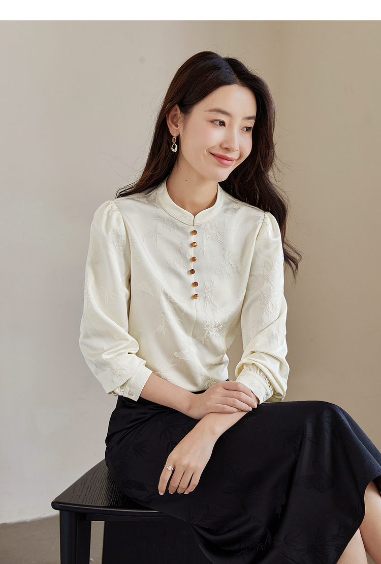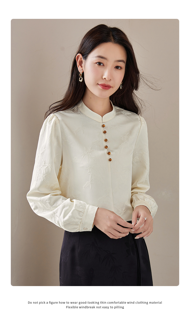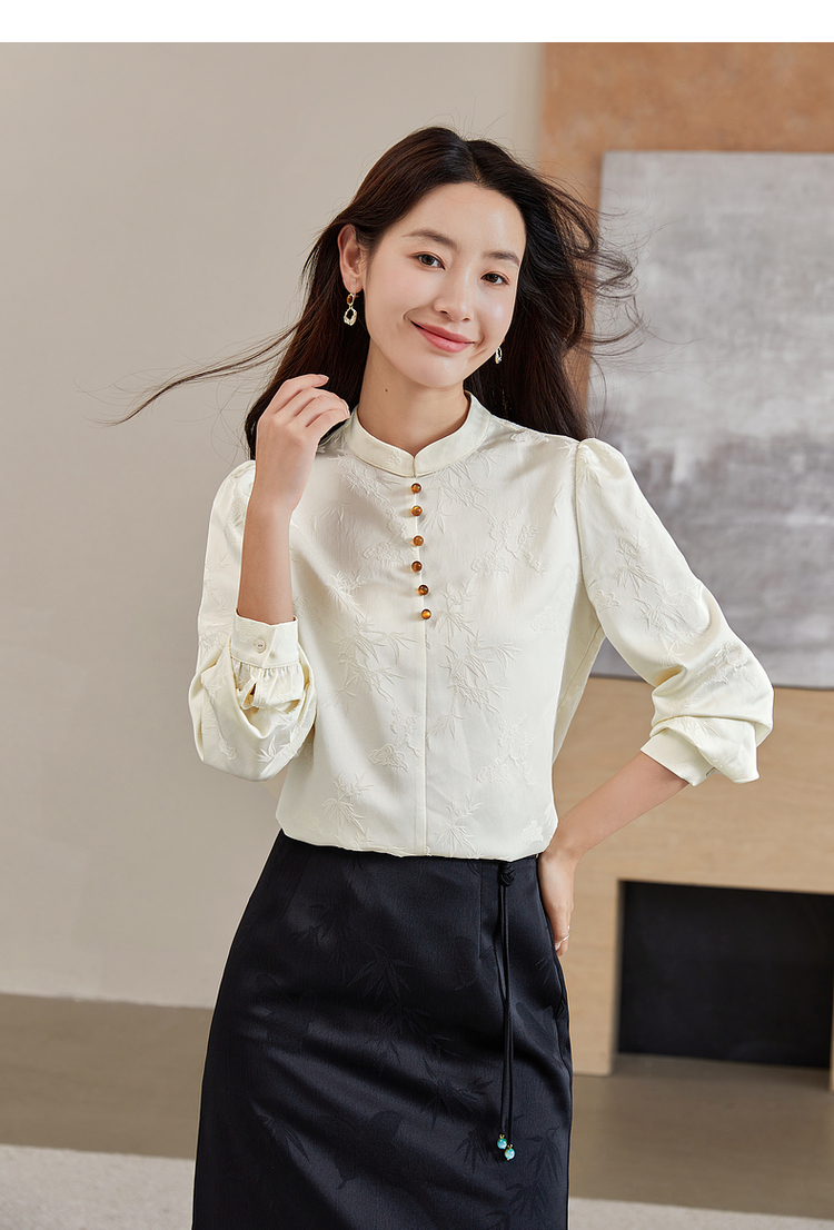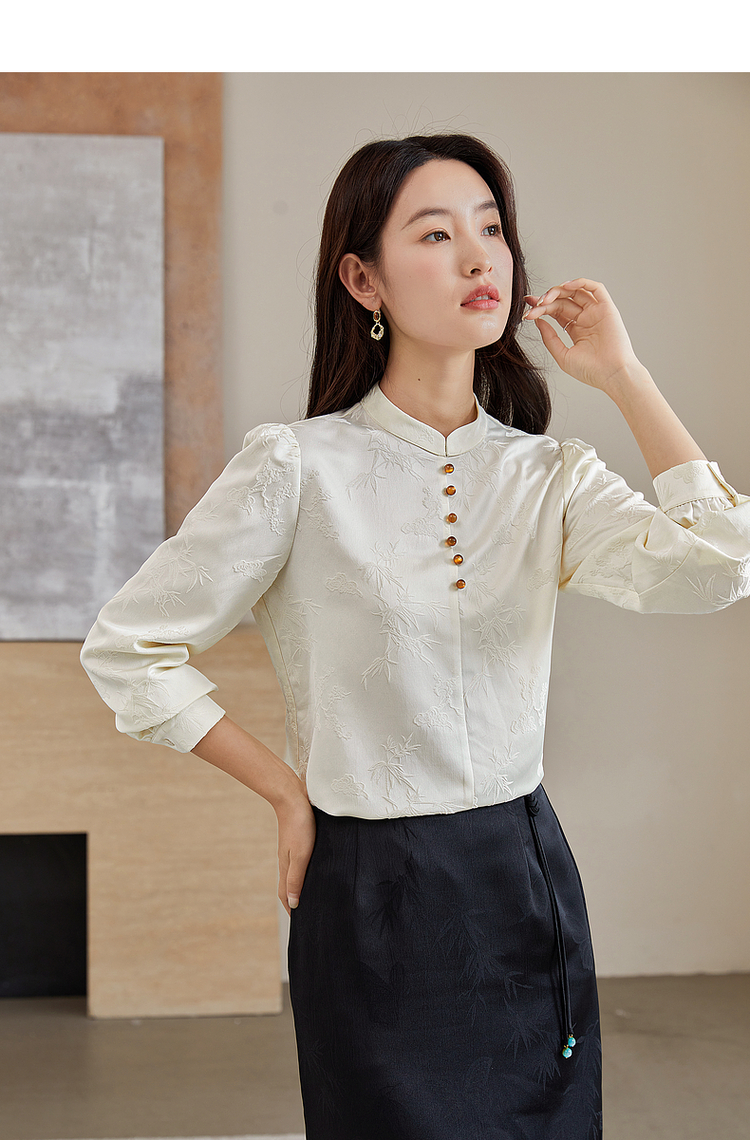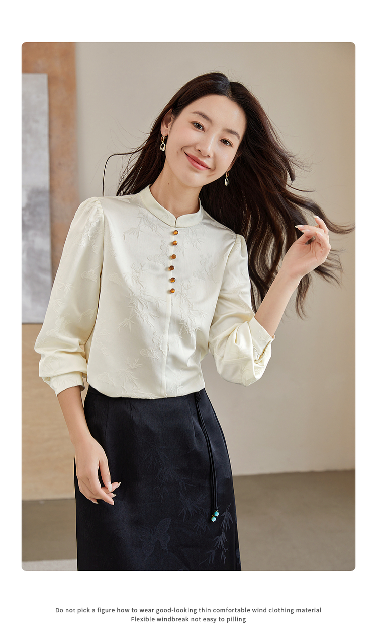 【年终特卖】熙世界竹梅暗纹提花新中式立领衬衫长袖春秋新款国风马面裙上衣
