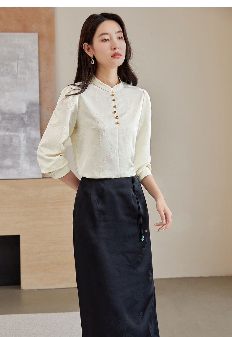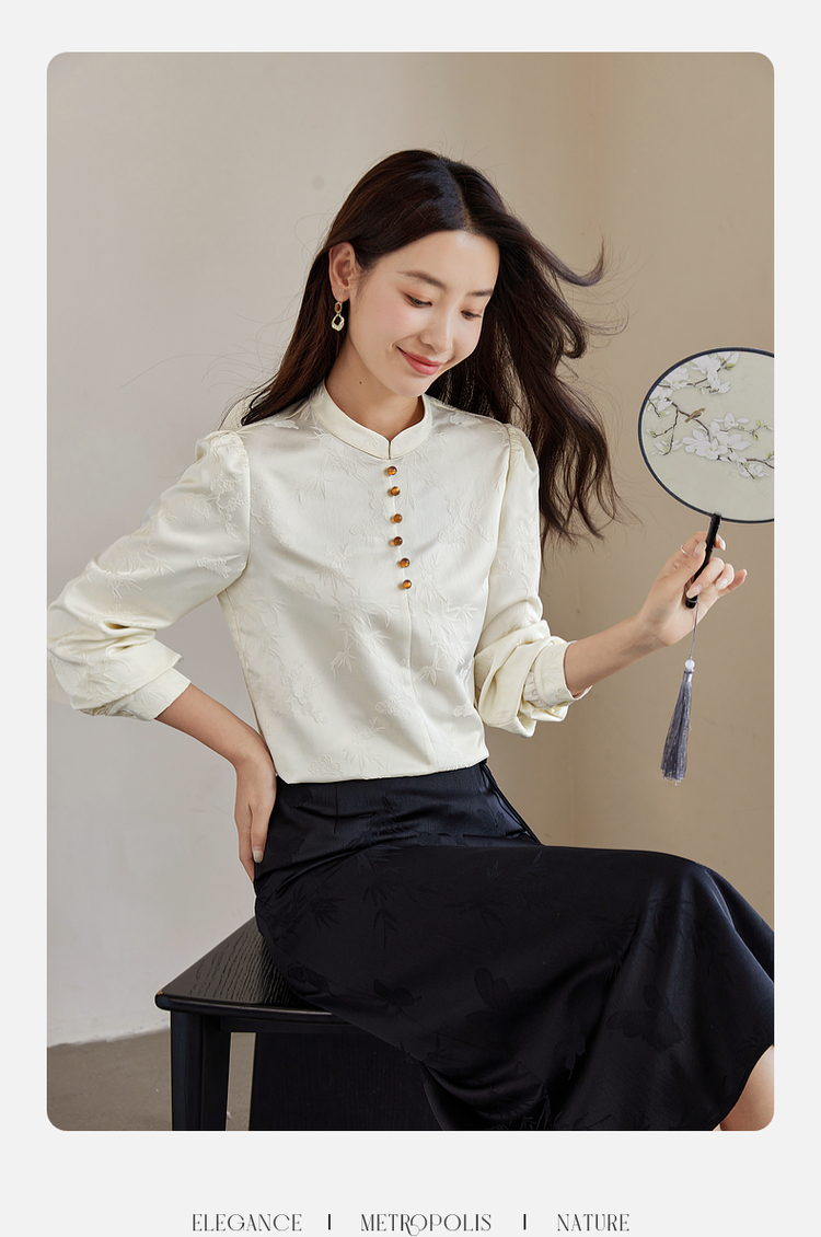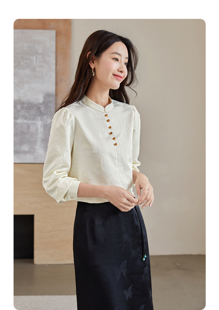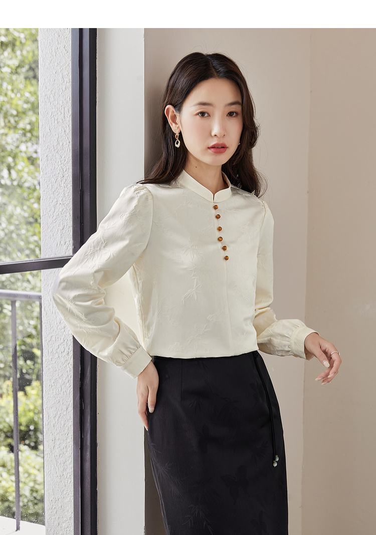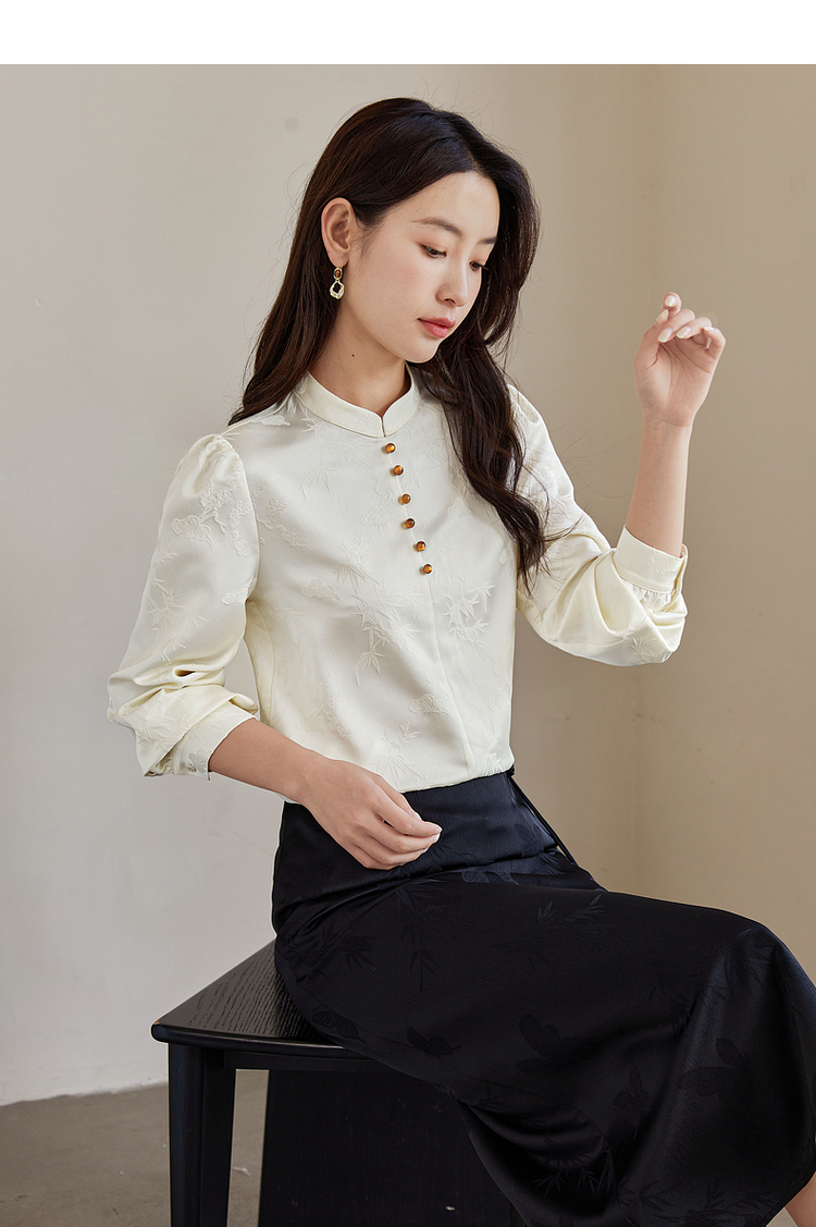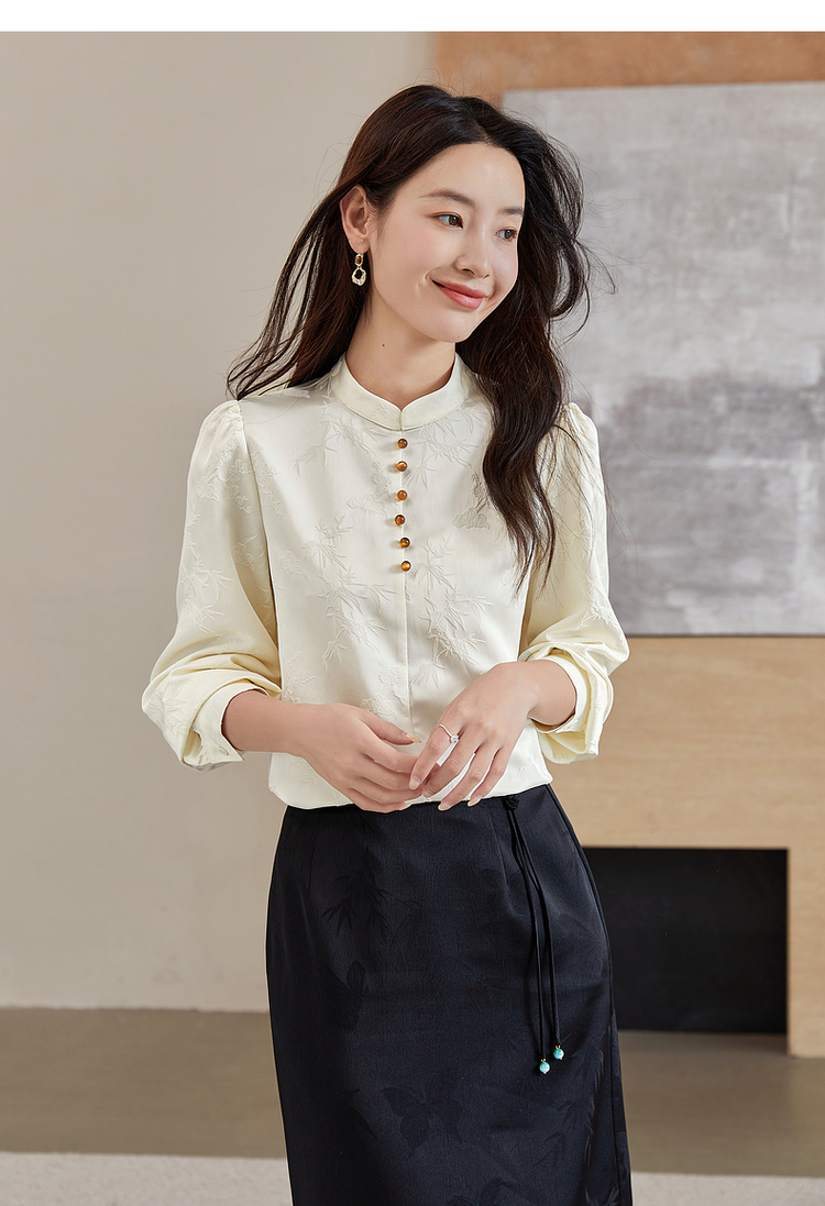 【年终特卖】熙世界竹梅暗纹提花新中式立领衬衫长袖春秋新款国风马面裙上衣