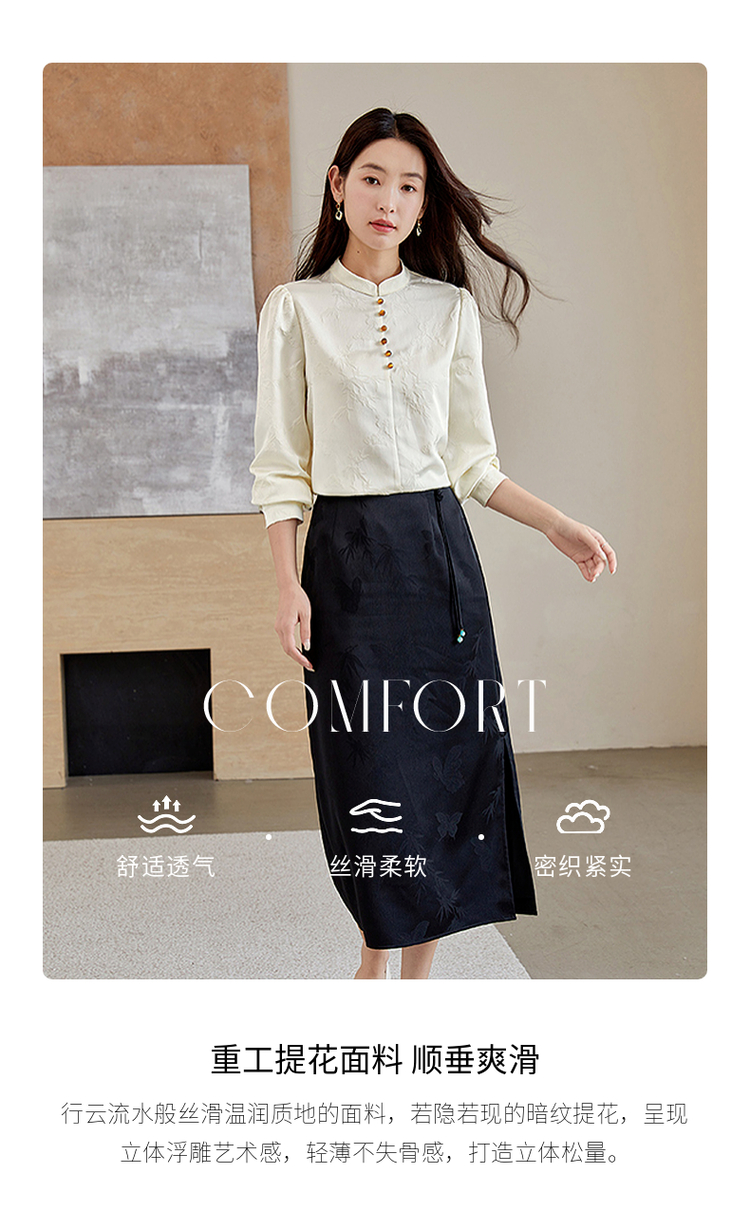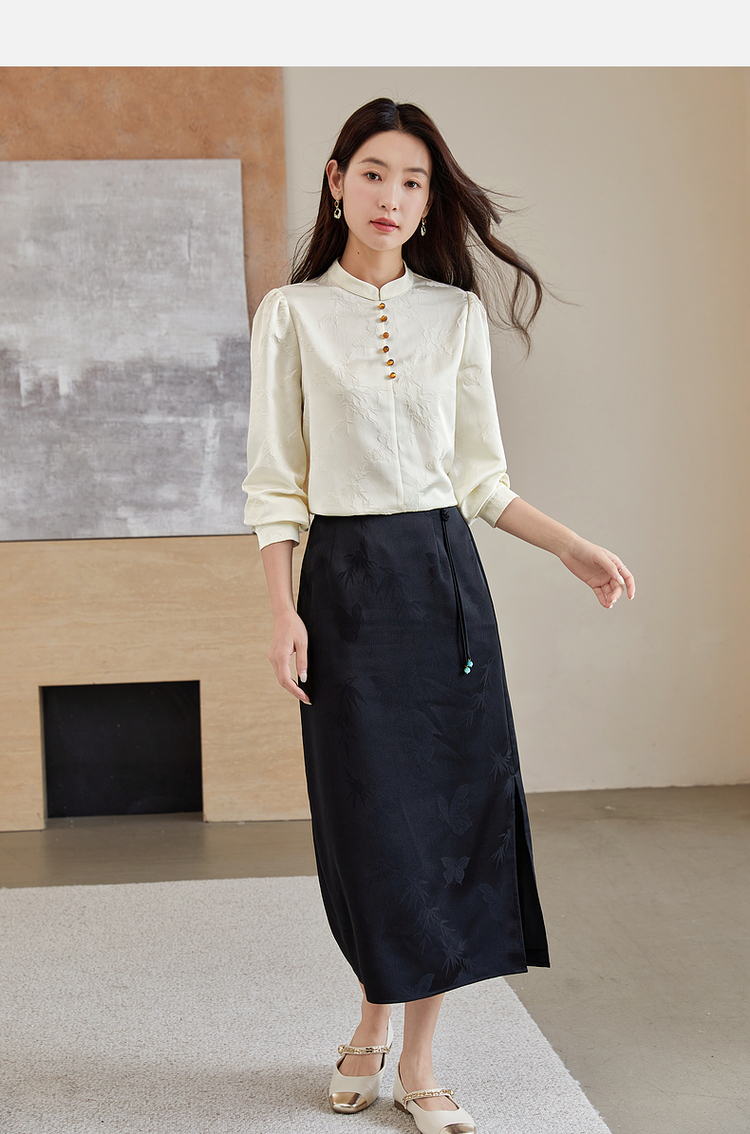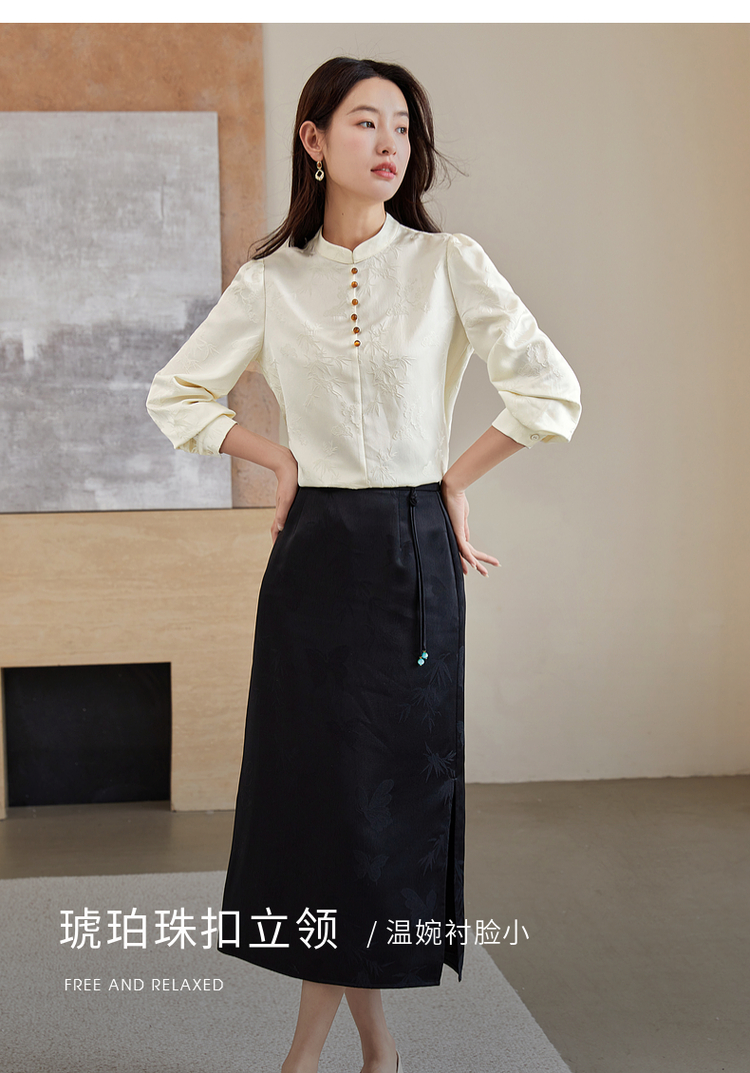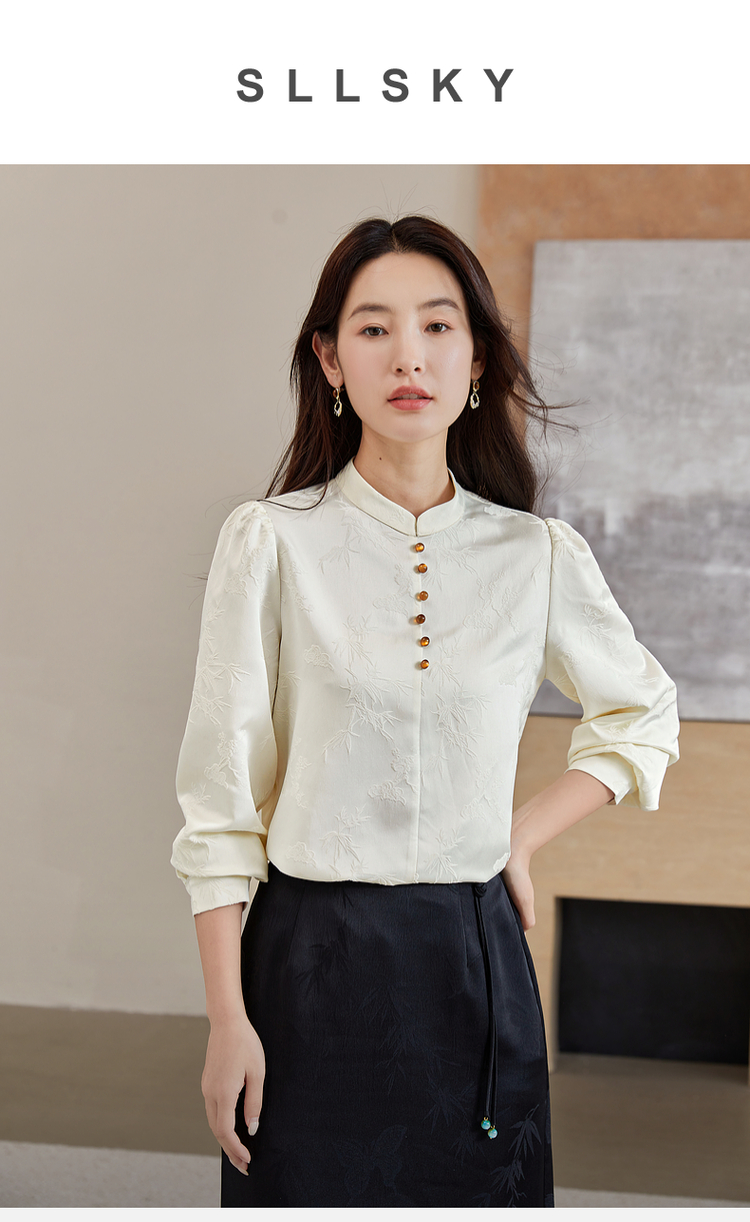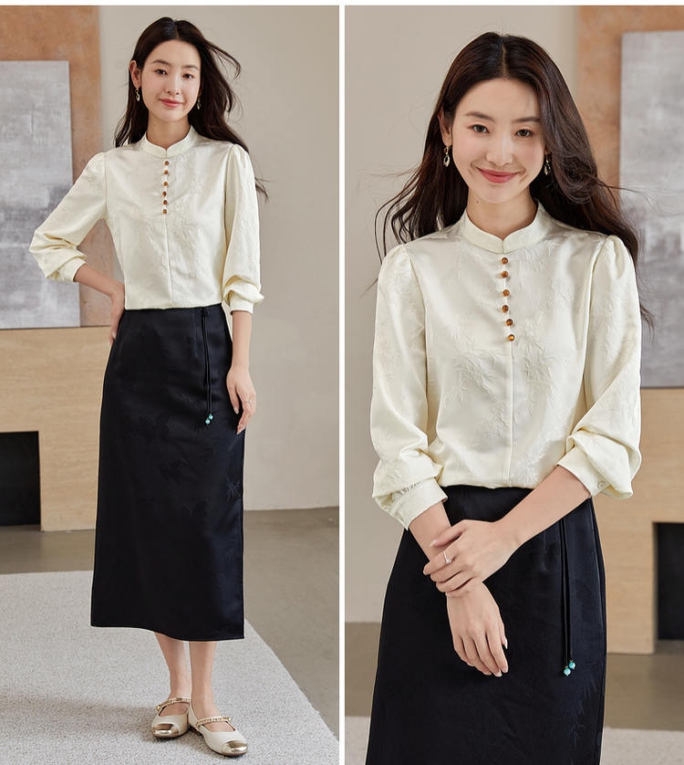 【年终特卖】熙世界竹梅暗纹提花新中式立领衬衫长袖春秋新款国风马面裙上衣