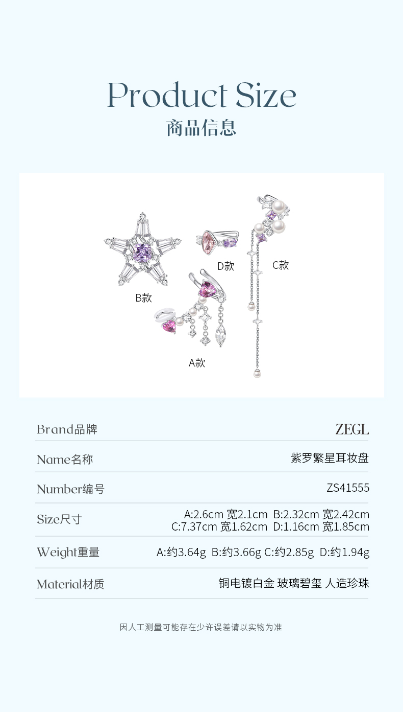 【zegl耳妆盘】紫罗繁星系列耳夹女小众高级感耳钉耳骨夹耳环耳饰