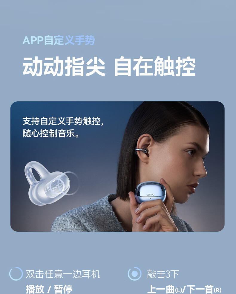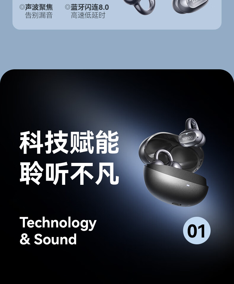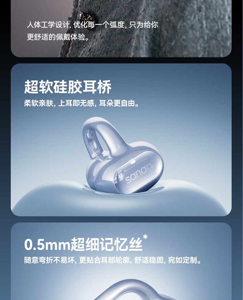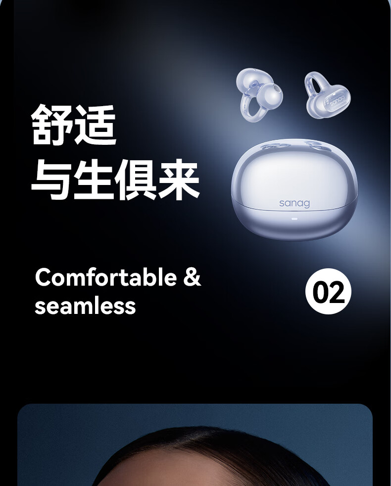 SANAG塞那S8S 蓝牙耳机骨传导概念耳夹式
