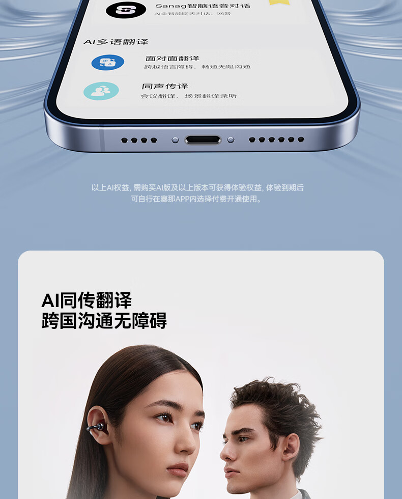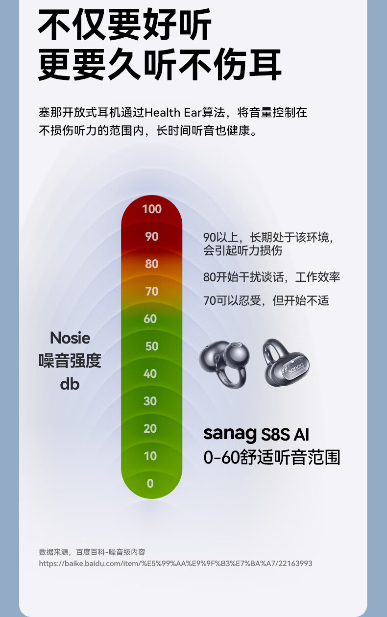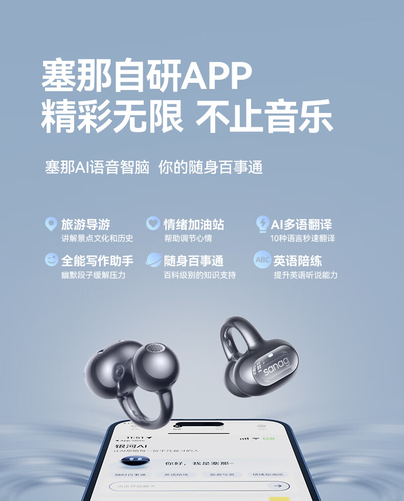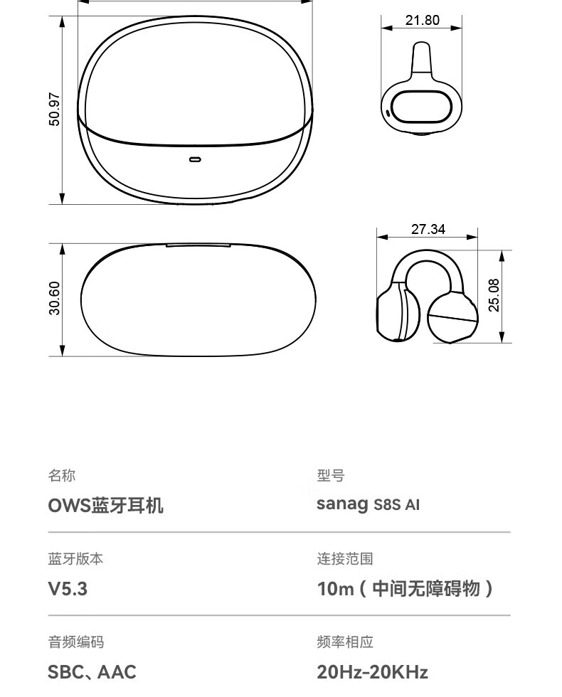 SANAG塞那S8S 蓝牙耳机骨传导概念耳夹式