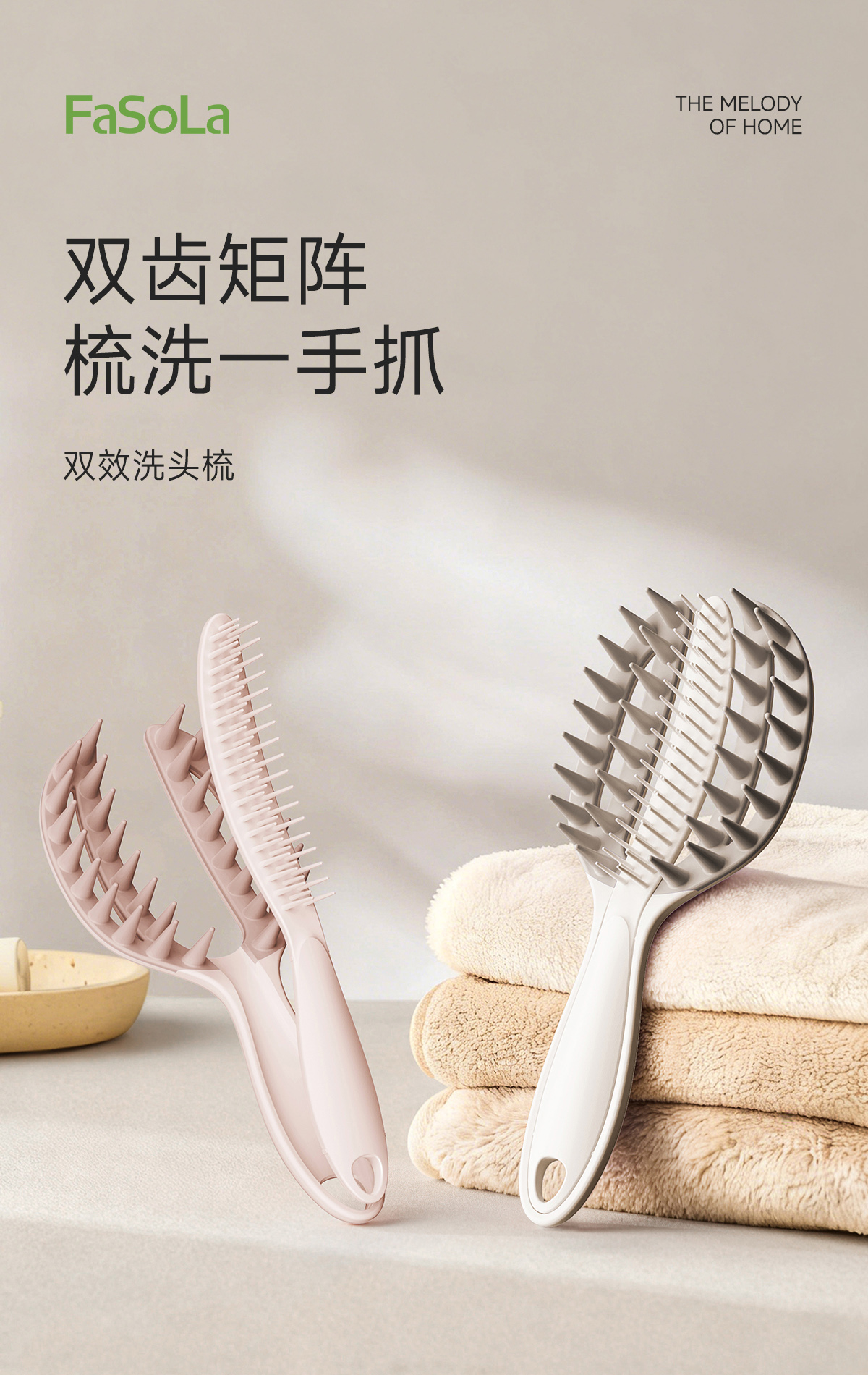 FaSoLa双齿洗头梳洗头神器硅胶洗发梳发二合一按摩梳头皮清洁梳子