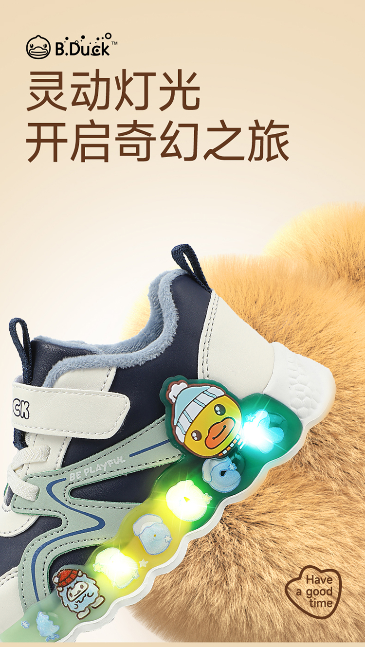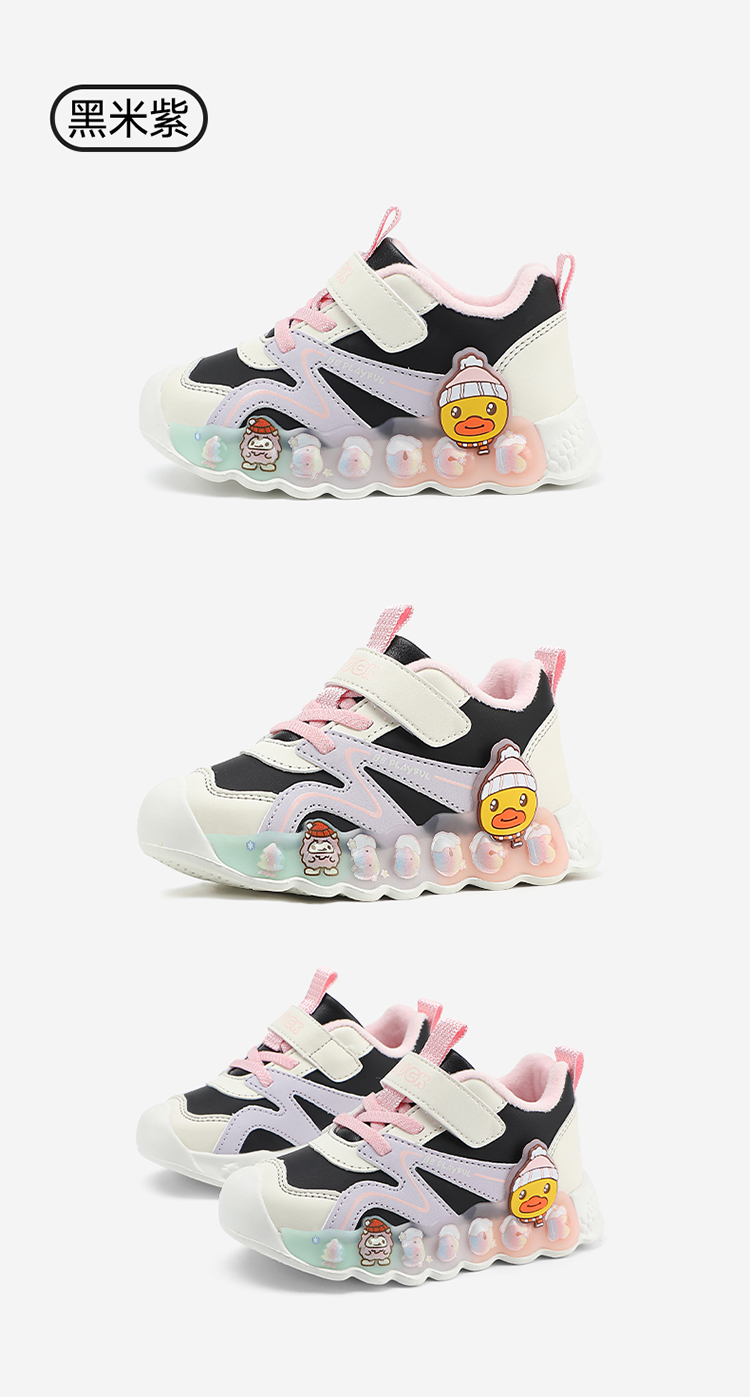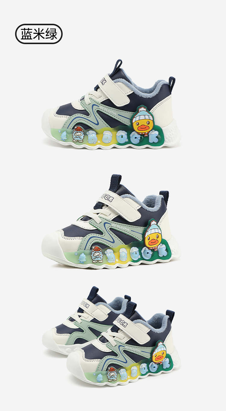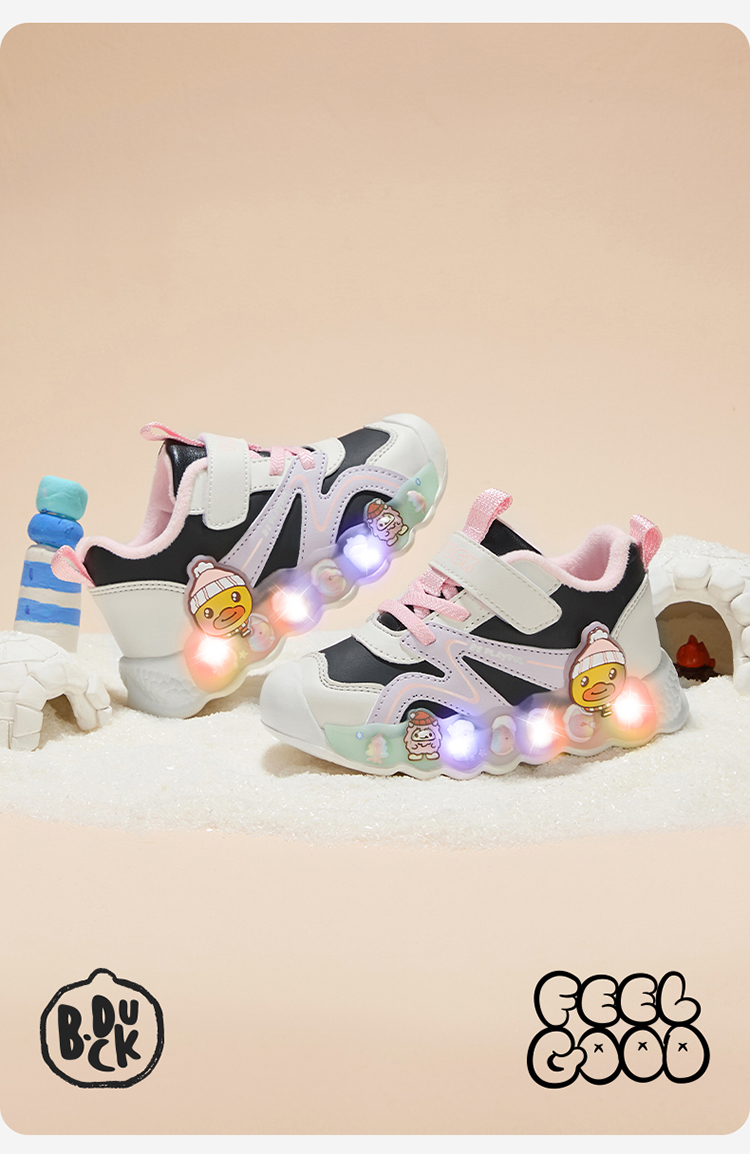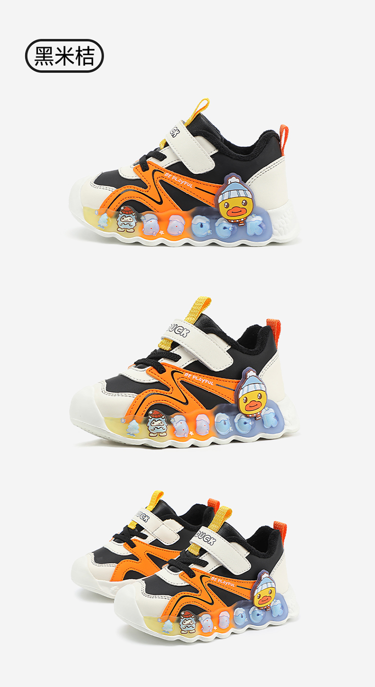 B.Duck小黄鸭童鞋冬季男女童防滑运动鞋保暖亮灯鞋24-30 B5586922