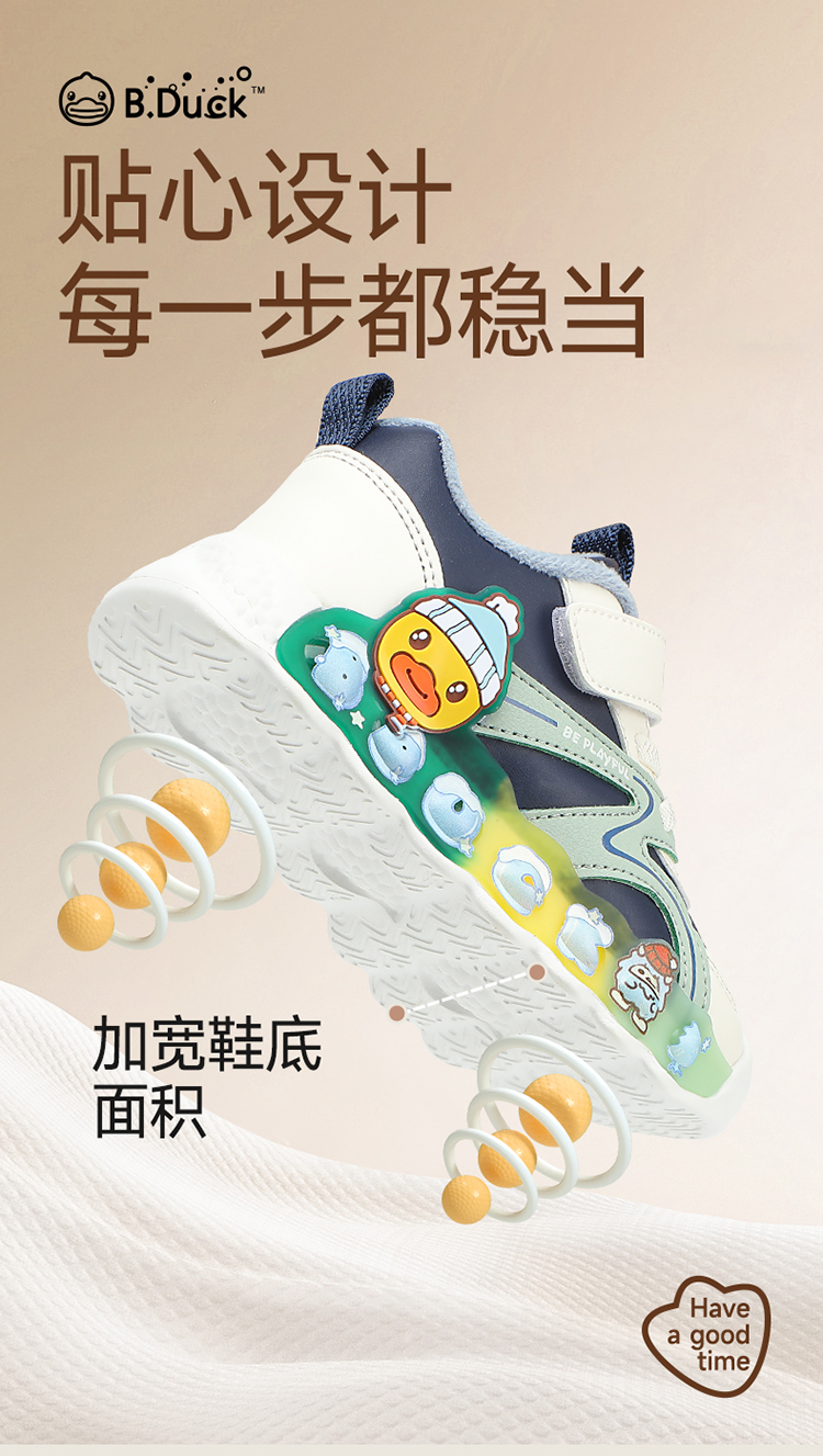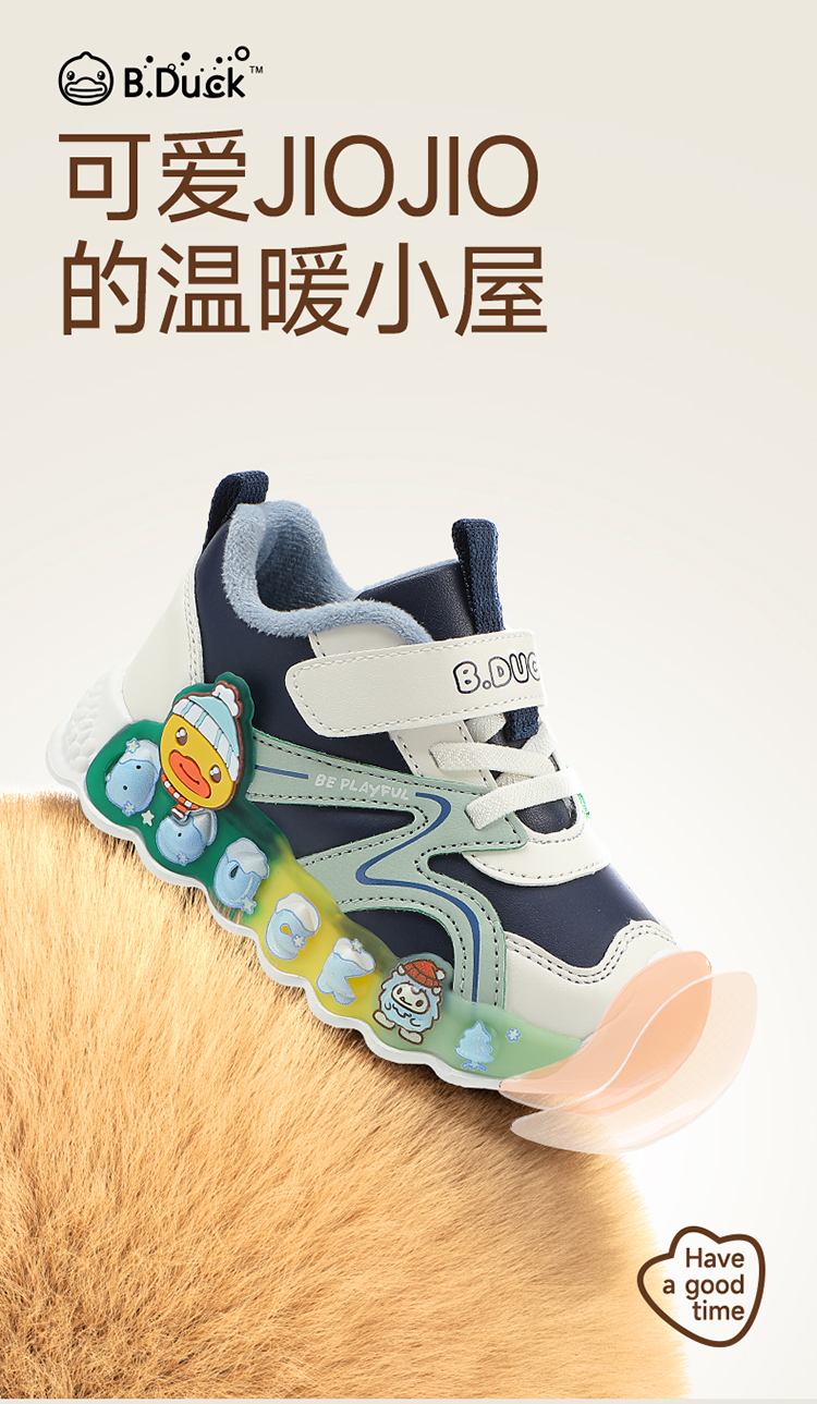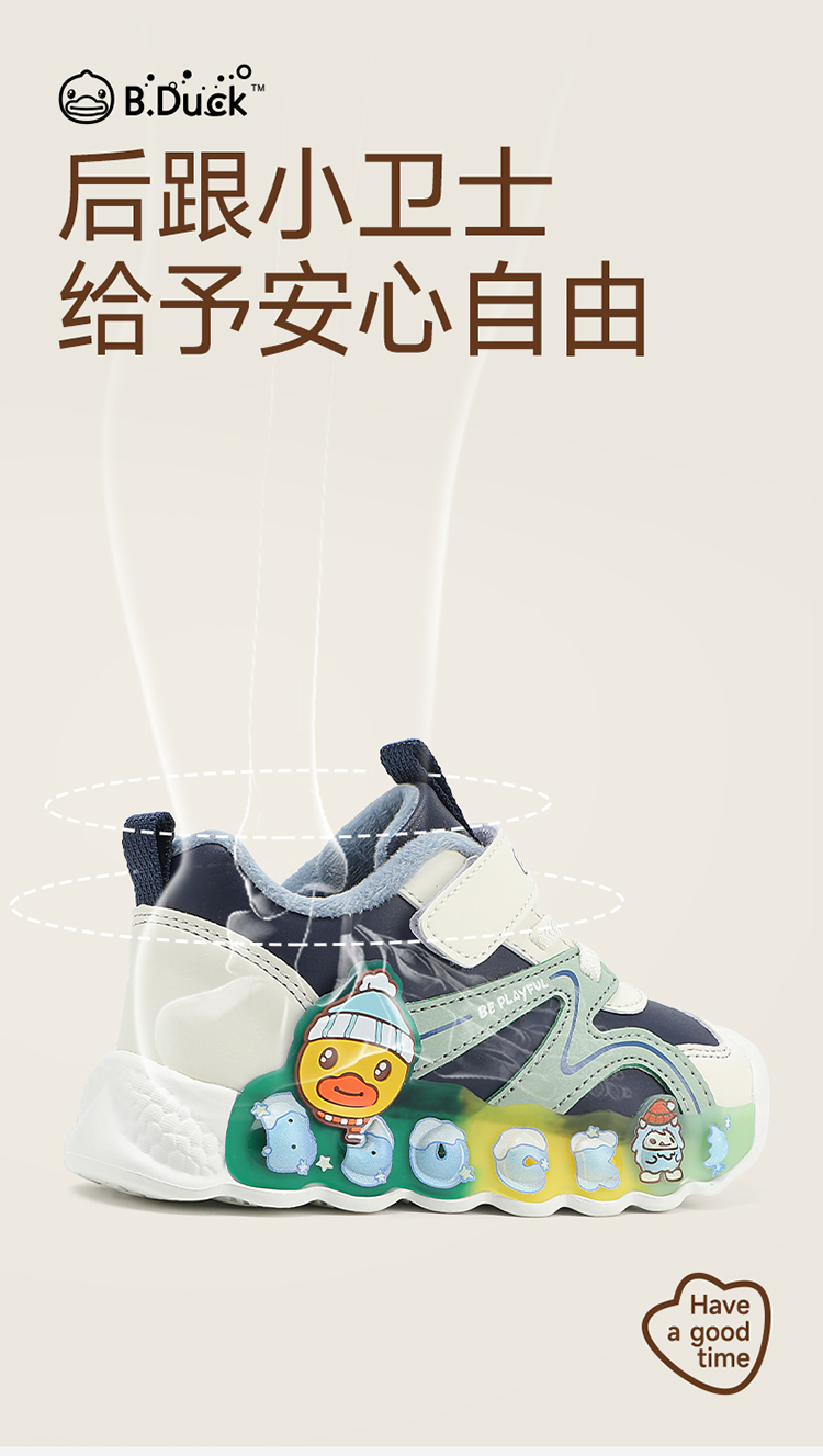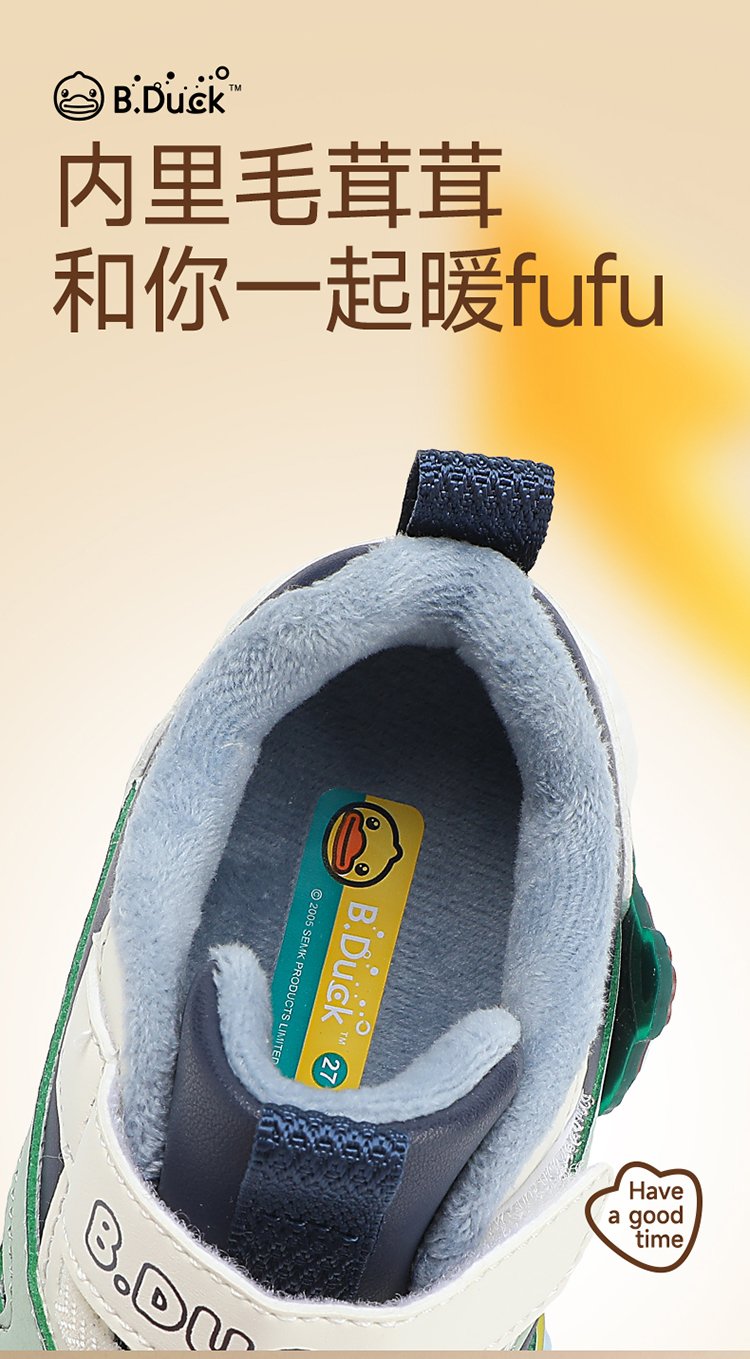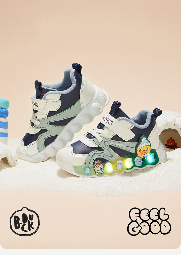 B.Duck小黄鸭童鞋冬季男女童防滑运动鞋保暖亮灯鞋24-30 B5586922