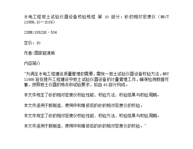 水电工程岩土试验仪器设备校验规程 第10部分:砂的相对密度仪(NB/T 11568.10—2024)