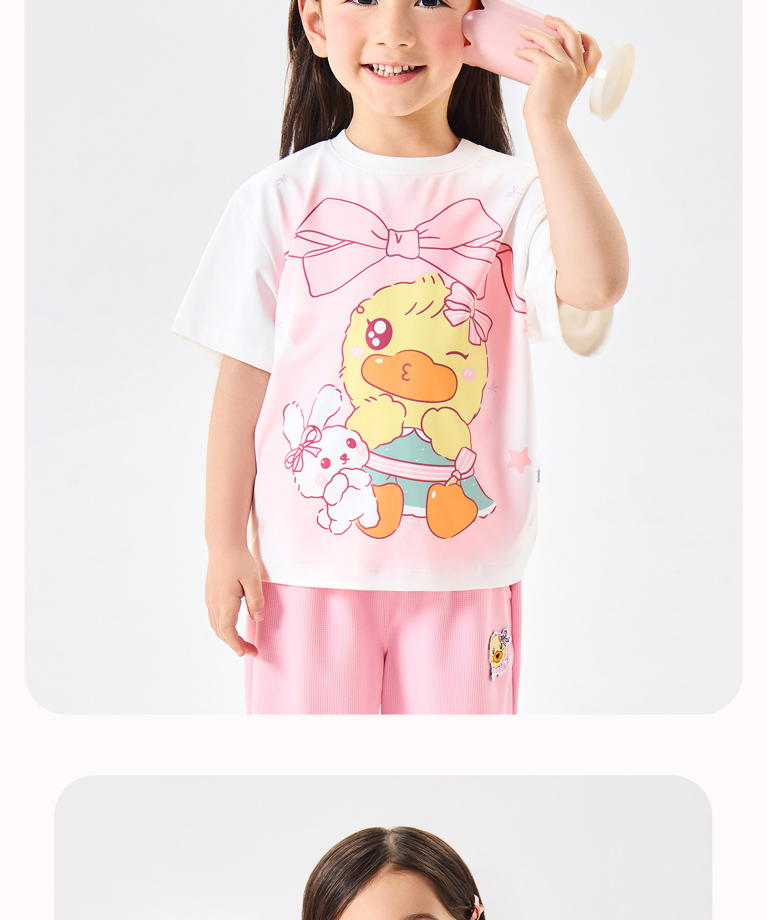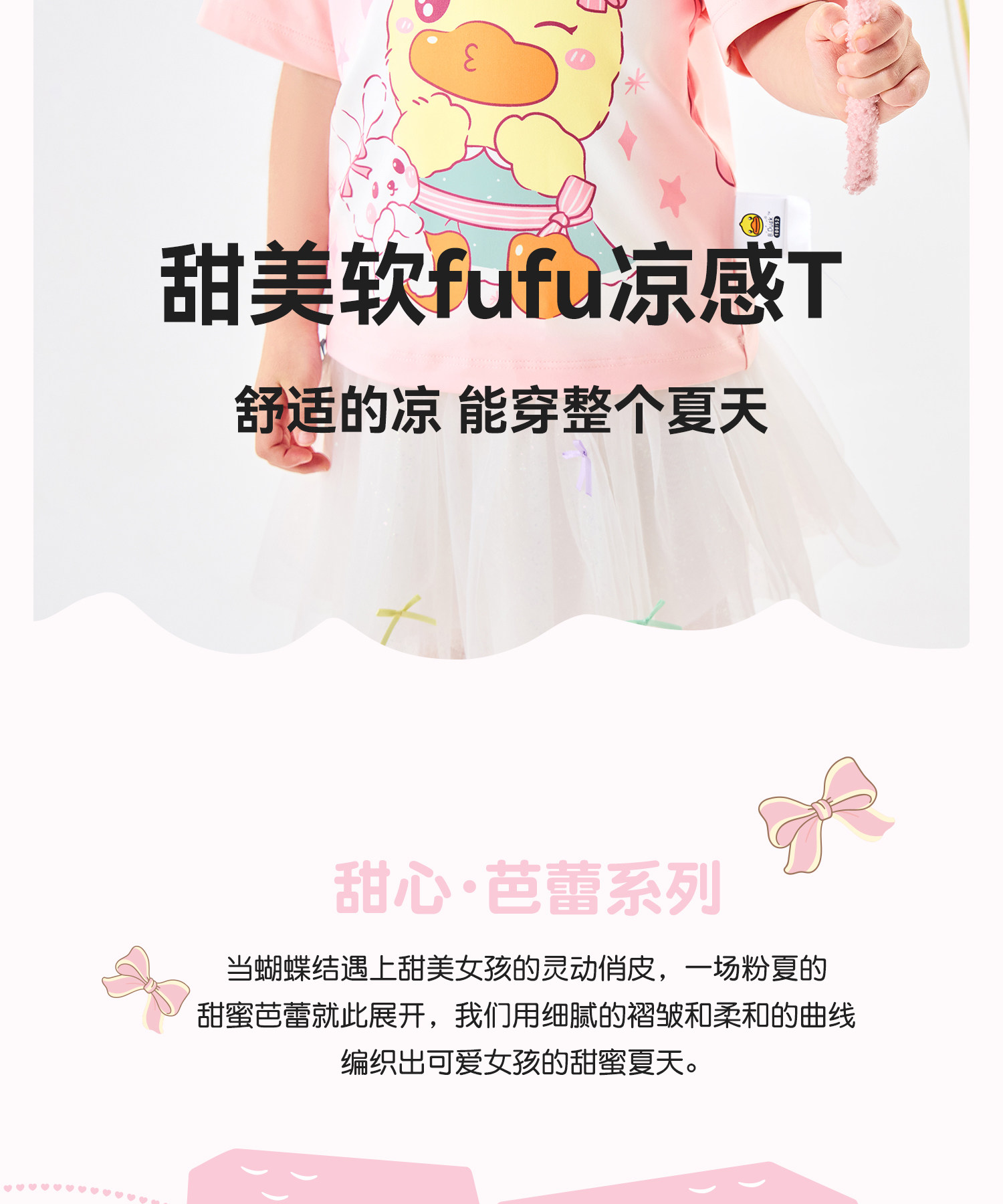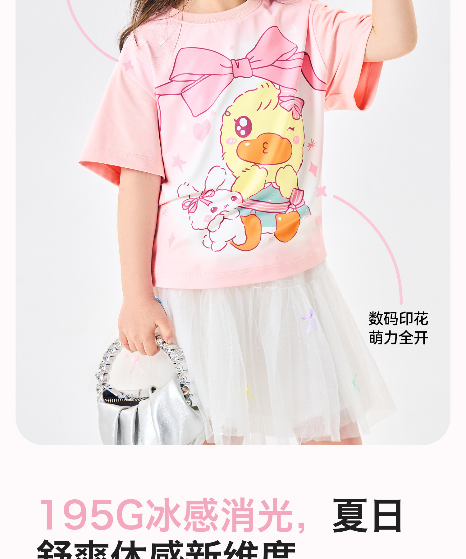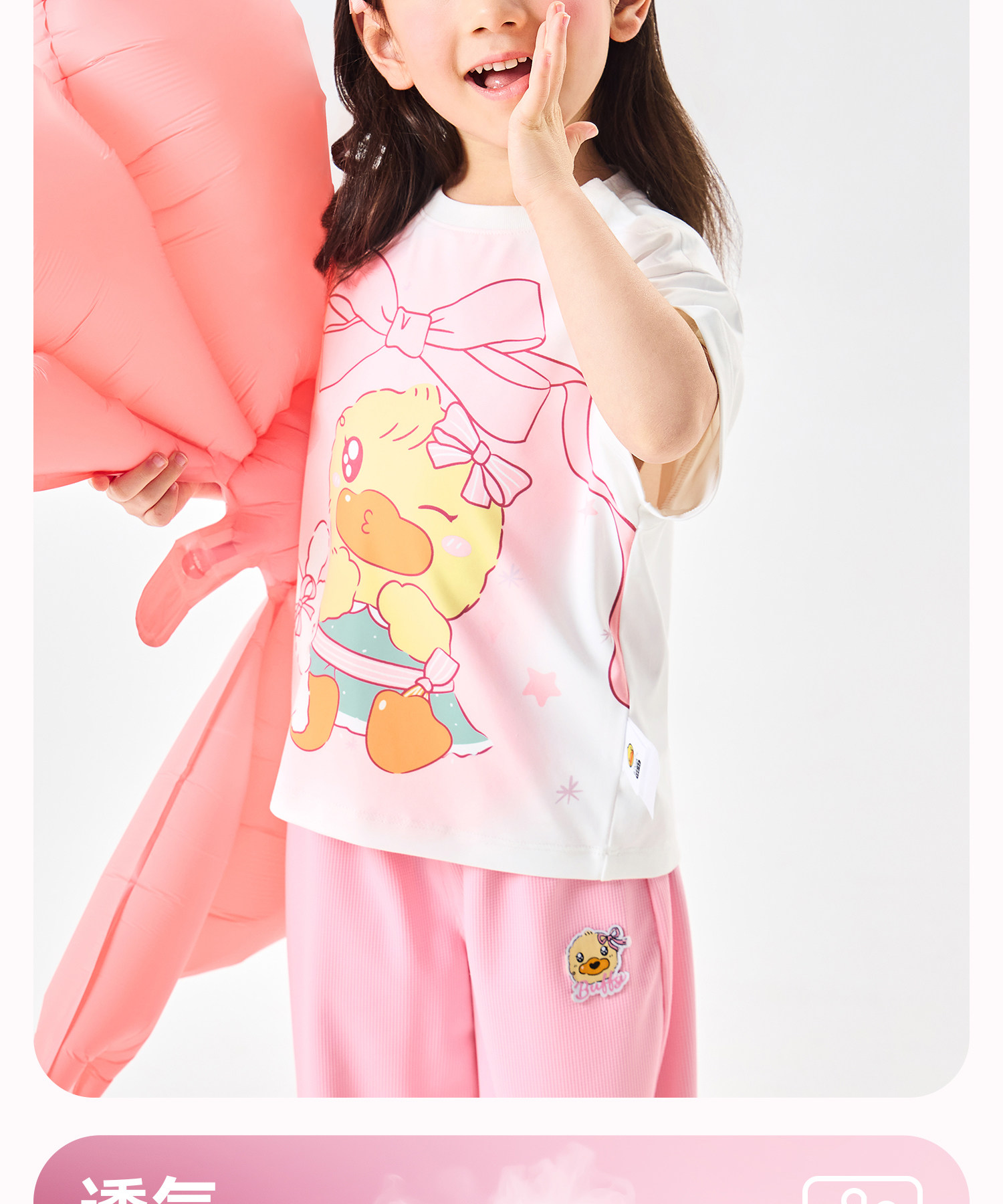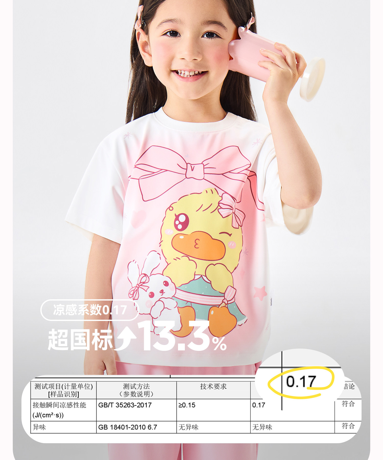 [冰感]bduck小黄鸭童装女童T恤儿童短袖夏装宝宝凉感上衣90-150 FF2701070
