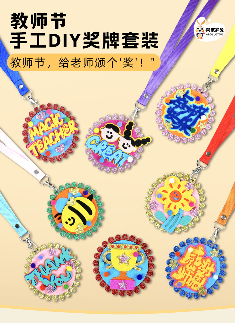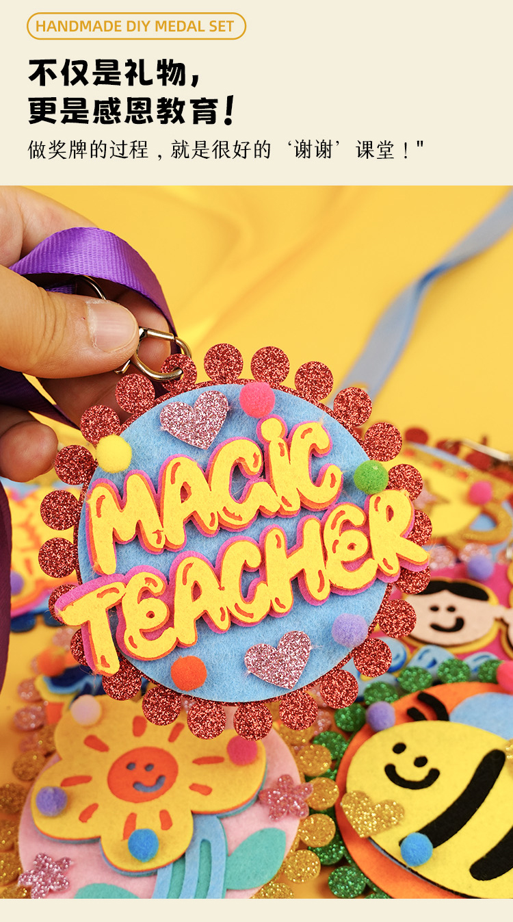 教师节礼物创意奖牌幼儿园奖杯小学生勋章手工diy材料包送女老师