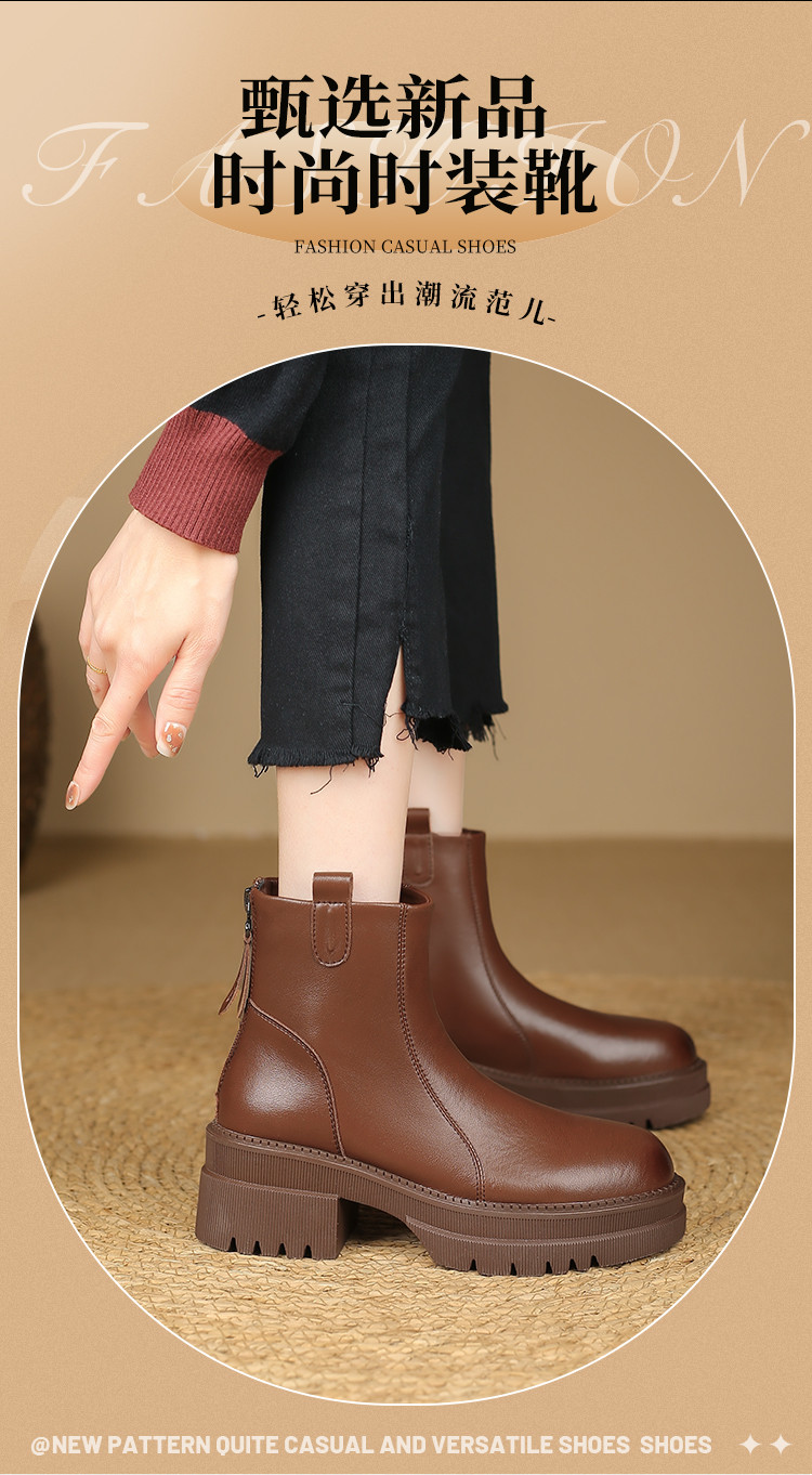 品质好货 | Safiya/索菲娅2024秋冬圆头复古休闲粗跟厚底短靴 SF44118717