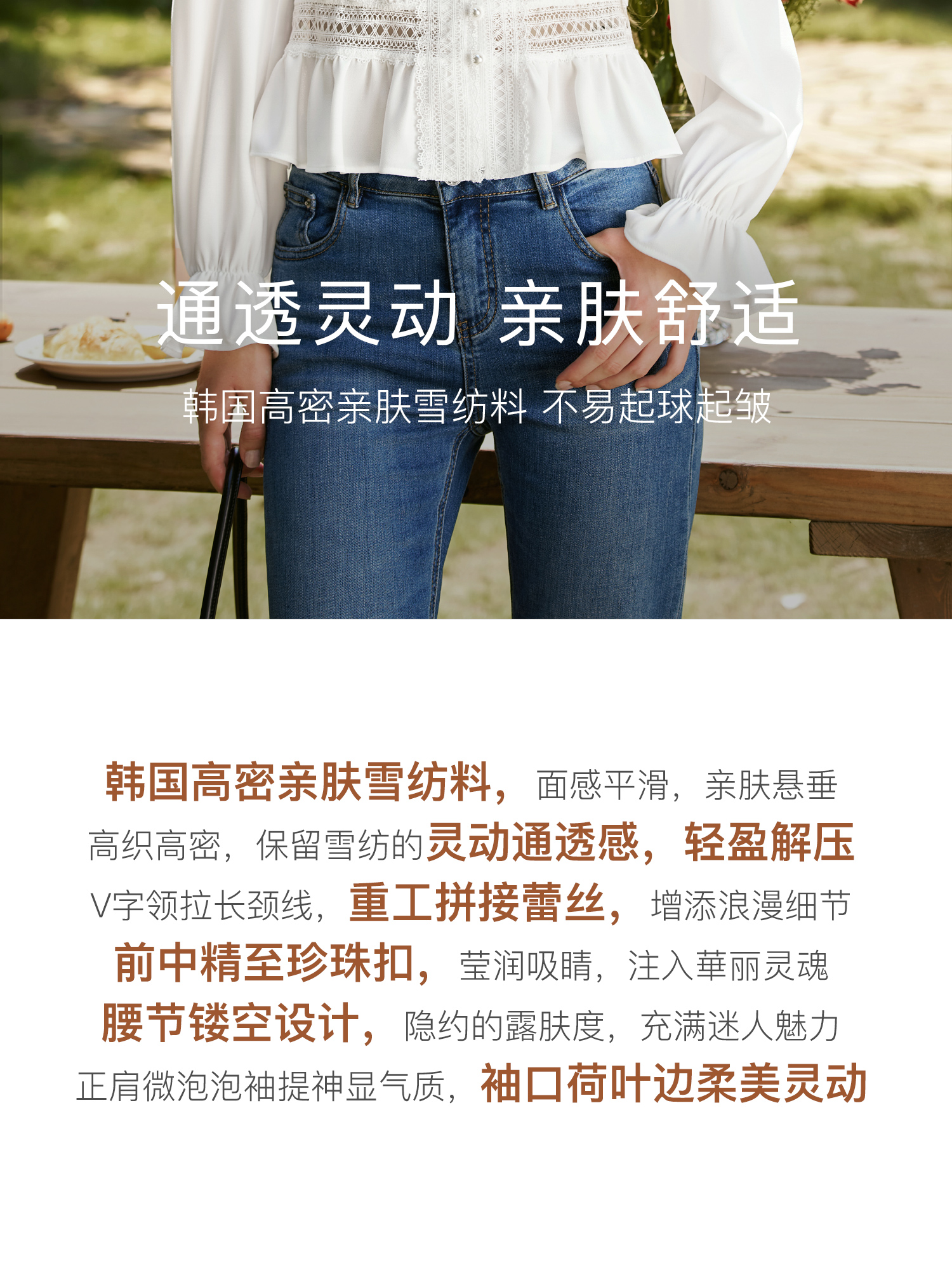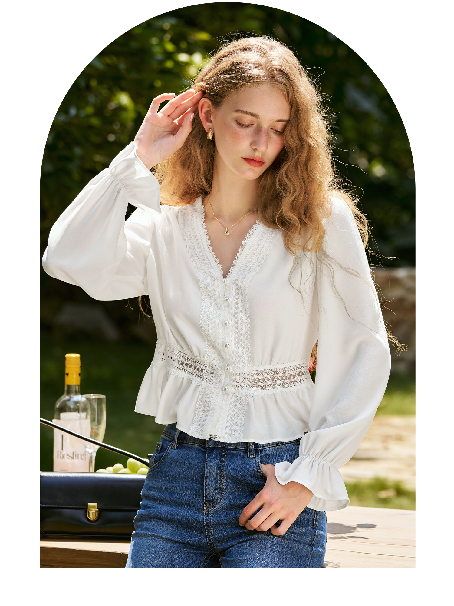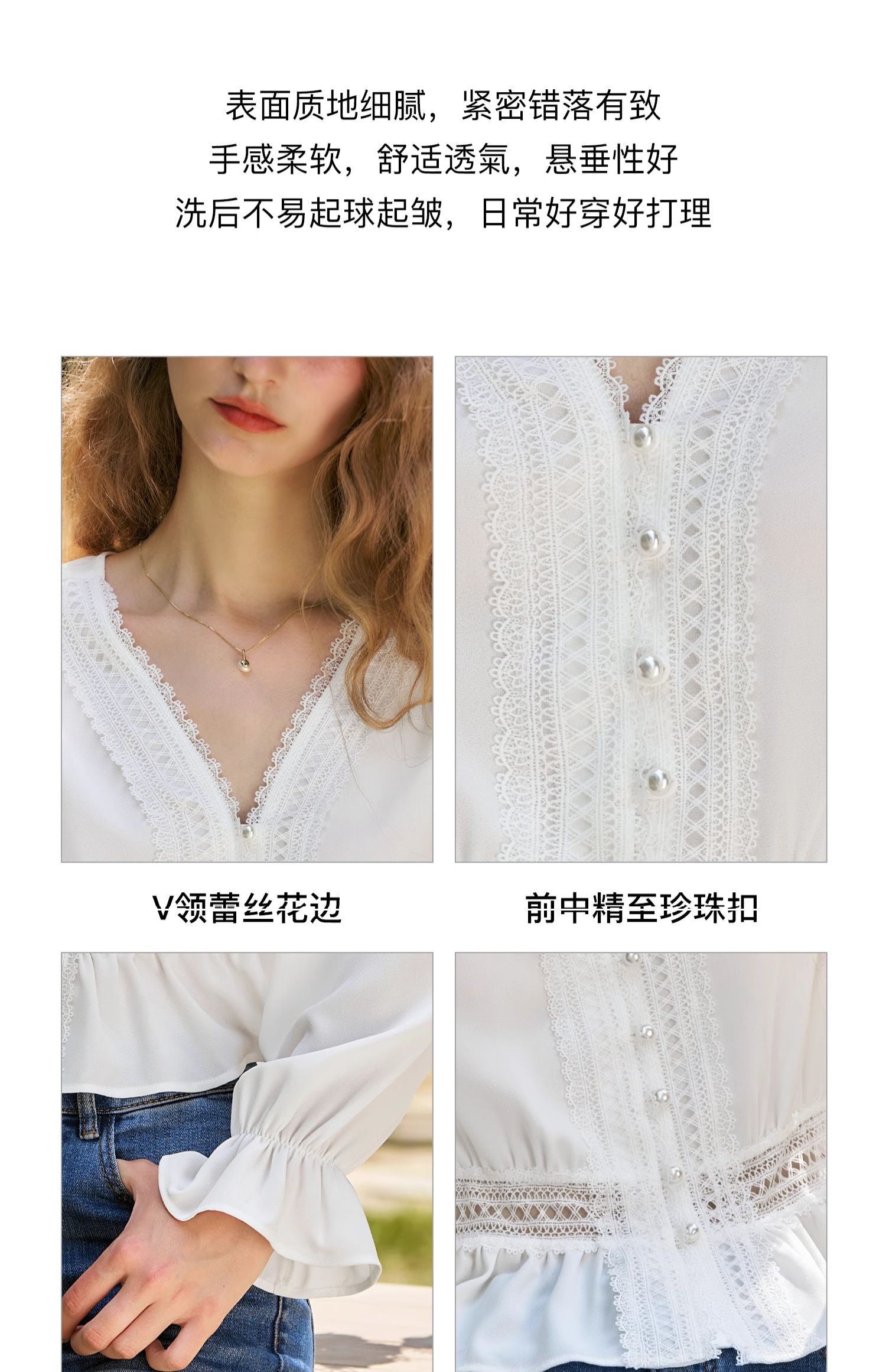 OLrain欧芮儿法式雪纺衫女秋季2024年新款气质v领长袖上衣衬衣