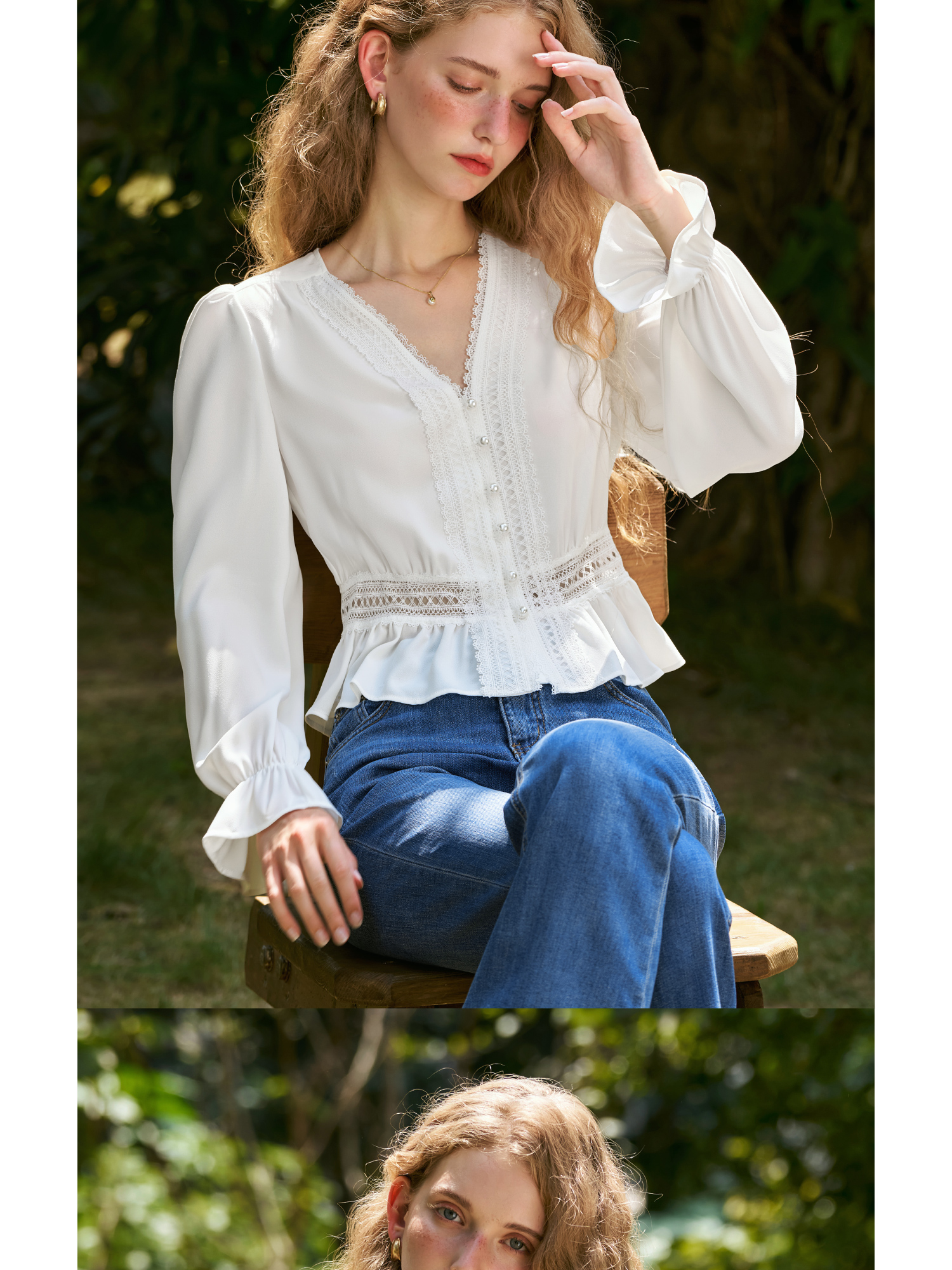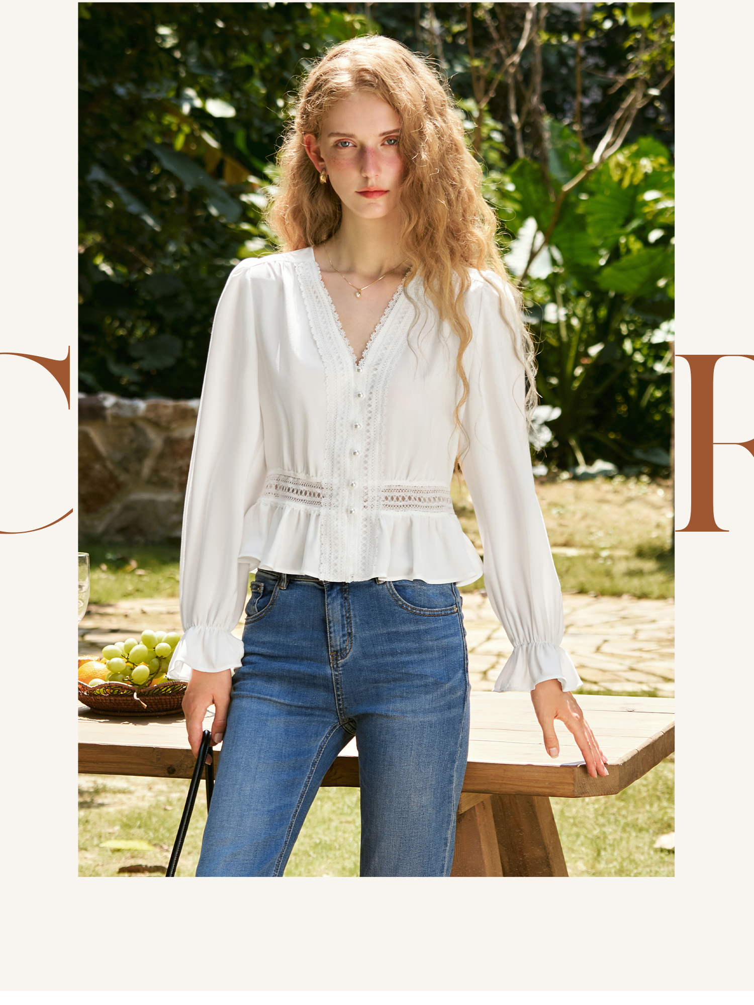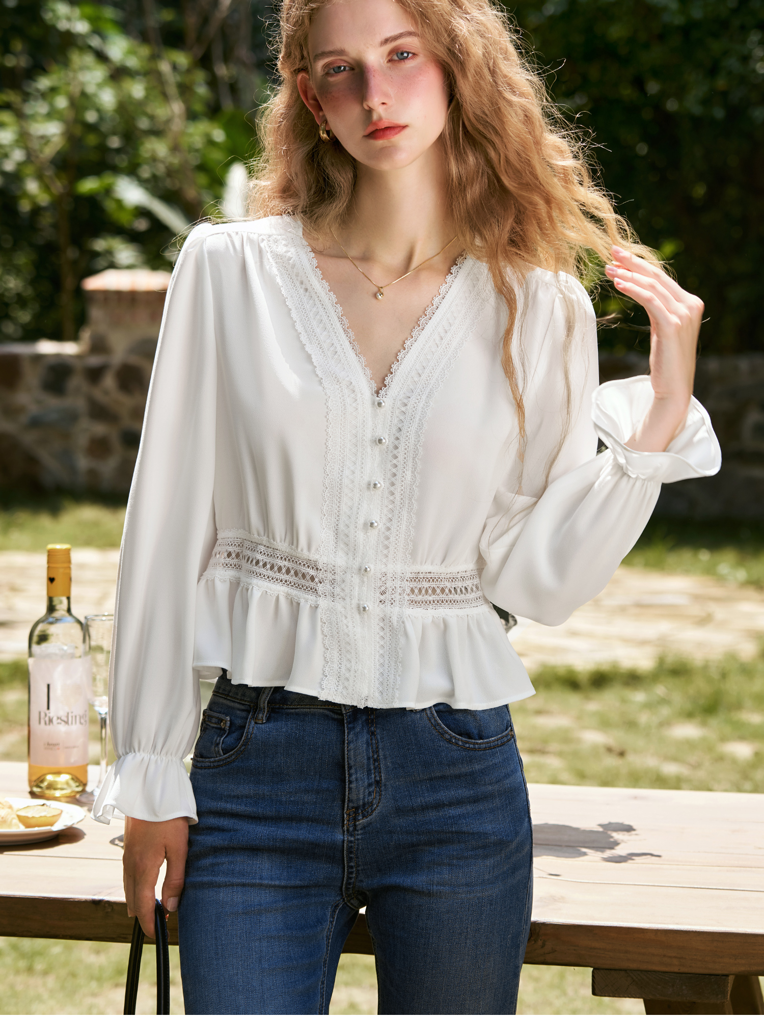 OLrain欧芮儿法式雪纺衫女秋季2024年新款气质v领长袖上衣衬衣