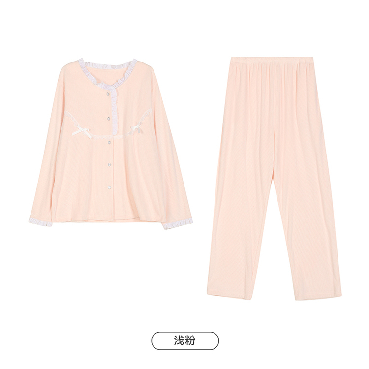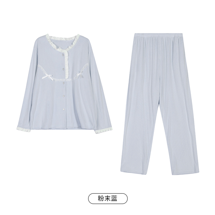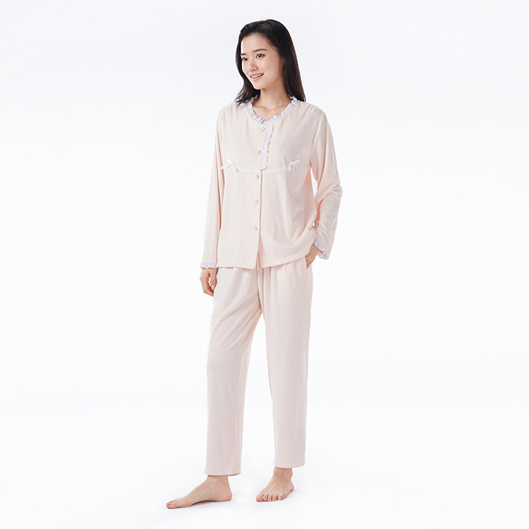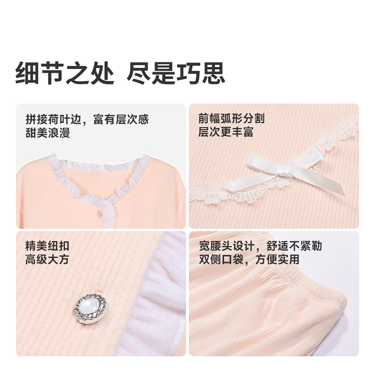 都市丽人睡衣海岛绒抽条睡衣女士家居服长袖长裤海岛绒套装LHH1K1