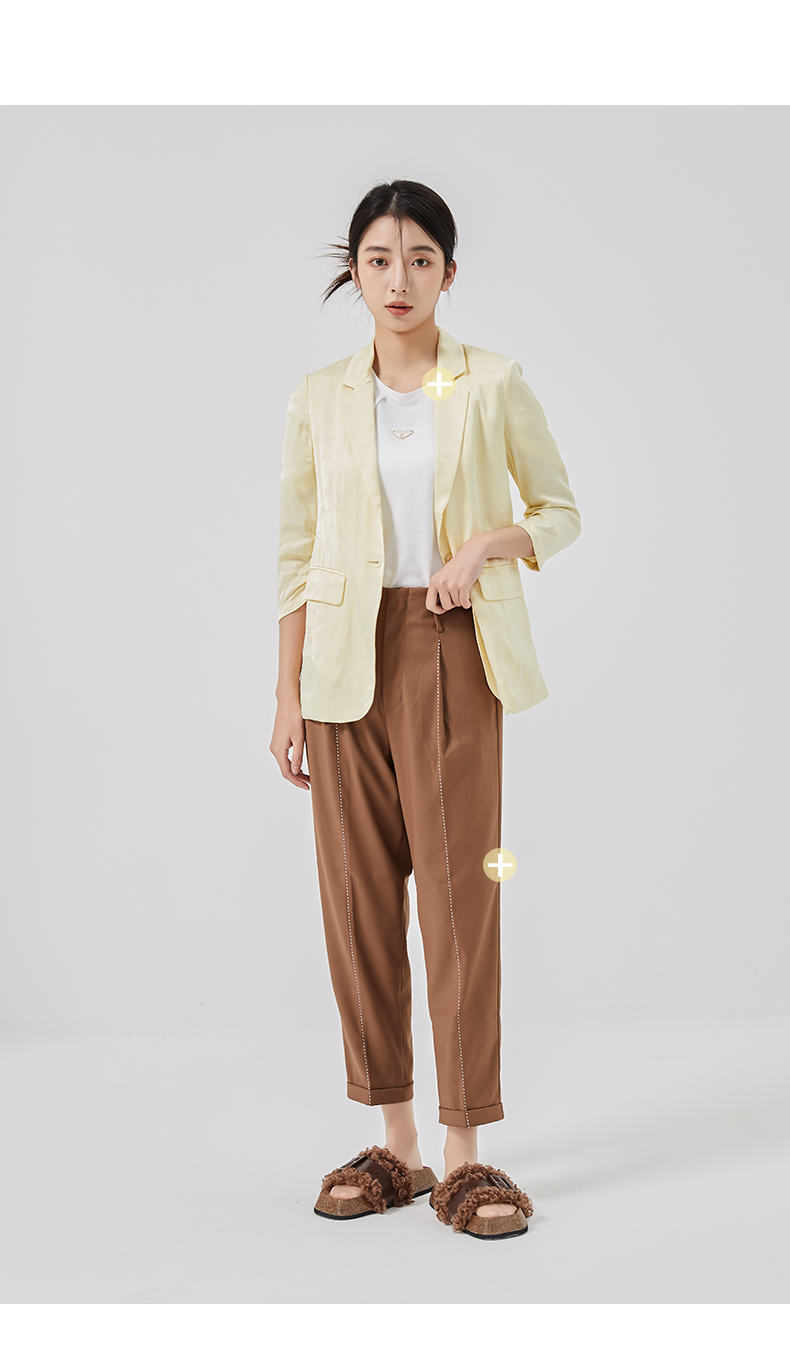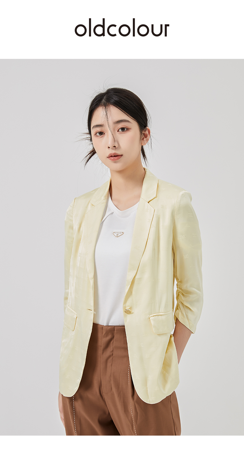 oldcolour2023春季新款黄色时尚气质直筒宽松西装外套女O13048351