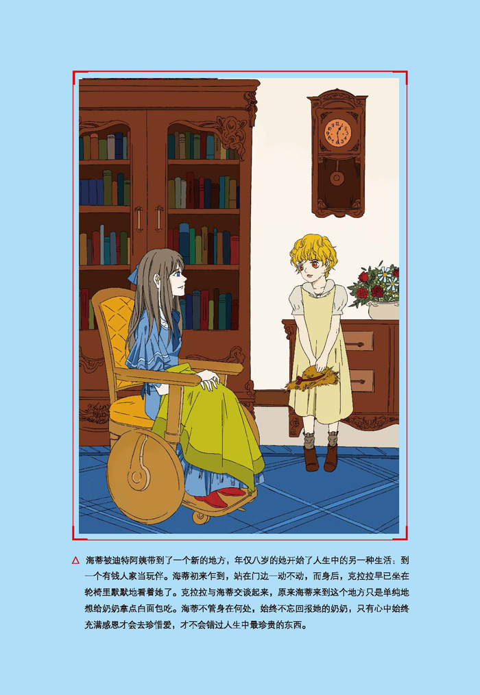 约翰娜·斯比丽(1827—1901),瑞士著名儿童文学作家。她出生于瑞士苏黎世南部的一个乡村,她的父亲是一名医生,母亲是一名诗人。她从小受到了良好的教育。孩童时期,她曾经在格劳宾登州的库尔一带度过了数个夏天,后来这里便成为她多部小说的写作背景。 1852年,25岁的斯比丽与律师约翰·伯恩哈德·施皮里步入了结婚的殿堂,并随丈夫搬到了苏黎世定居。婚后,她的丈夫整天忙于工作,并在苏黎世的政治圈中日益活跃了起来,于1868年担任了苏黎世市府的秘书长一职。从此丈夫的工作更加忙碌了,所以斯比丽的婚姻生活并不算幸福。在朋友的不断鼓励下,她便开始从事创作。1871年,约翰娜·斯比丽发表了生平第一部小说——《一片来自弗里尼坎的叶子》,广受欢迎。自1879年开始,她创作了多部以阿尔卑斯山为背景的儿童文学作品。其中,1880年发表的《海蒂的学习和漫游岁月》曾取得巨大成功。为此,1881年,她又写了续集《海蒂学以致用》一书。前后两部书组成了闻名世界的《海蒂》。