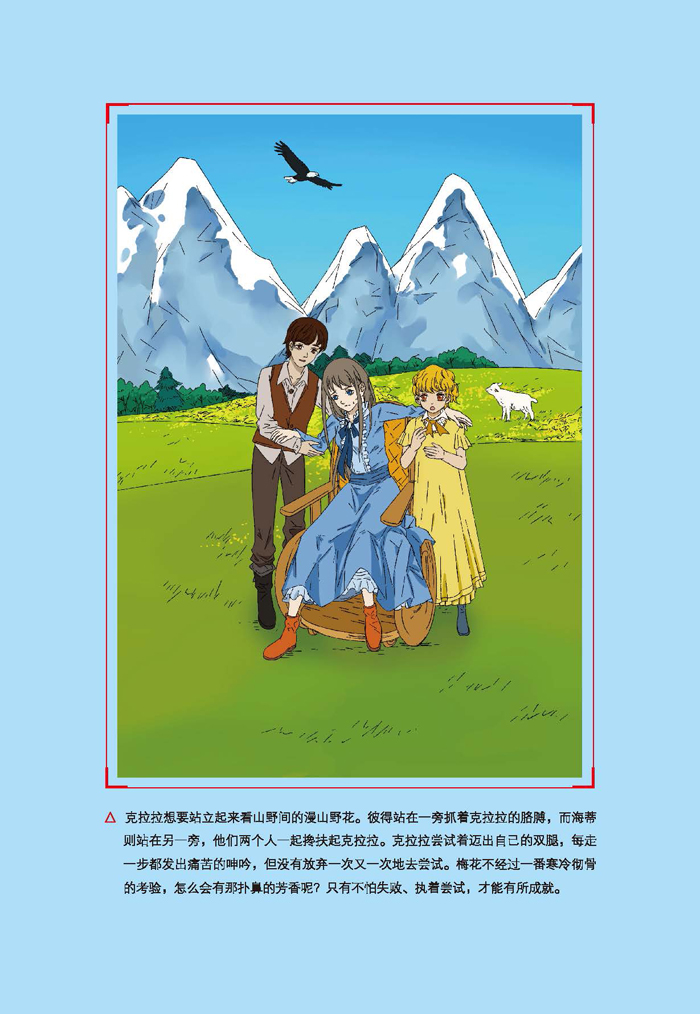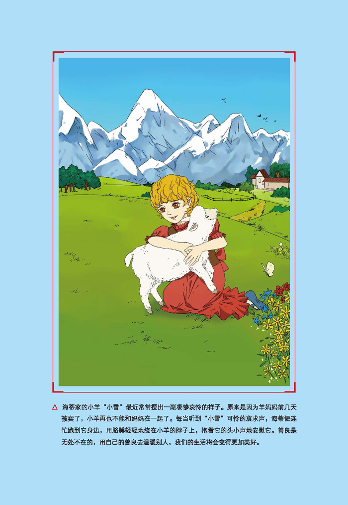 《海蒂》是一部以景物描写引人入胜的经典作品,作者通过细腻生动的描述、真实动人的生活情节,描绘了阿尔卑斯山区淳厚朴实的民风民情以及如诗如画的自然风光,使这部作品成为了阿尔卑斯山区风土人情的真实生动的写照。本书以19世纪阿尔卑斯山区生活为背景,叙述了一个瑞士小女孩海蒂的成长历程。 3个阅读要点 ◎通读全书,明确富有爱心的海蒂分别给谁的生活增添了快乐。 ◎本书中,作者细腻生动地描述了阿尔卑斯山区引人入胜的迷人风光,以及淳朴善良的民风民情。阅读时,认真体会一下。 ◎读完本书后,总结一下,海蒂身上有哪些值得我们学习的品质? 2个知识要点 ◎作者在这部作品中运用了多种写作手法,如比喻、拟人、排比等。把相关句子找出来,仔细品读,并各写出一个仿句,以此提高自己的综合能力。 ◎本书中运用了大量好词,收集起来并运用到平时的写作中去。 1个成长要点 ◎这本书向我们展现了一个天真活泼、纯真善良、富有爱心的小女孩形象。生活总不会是一帆风顺的,但绝不能让生活的曲折影响我们做人的品格。我们要像海蒂一样去做一个以助人为乐、以付出为乐的孩子,我们要像她一样热爱大自然、热爱生活,更要用爱心去关爱、去感染身边所有的人。