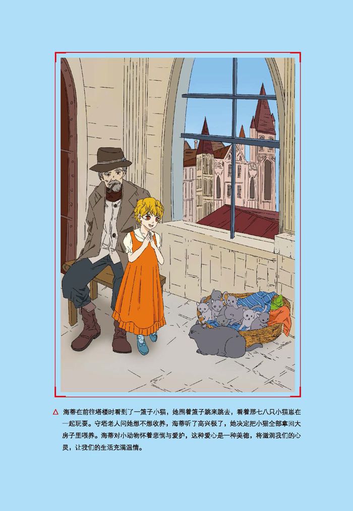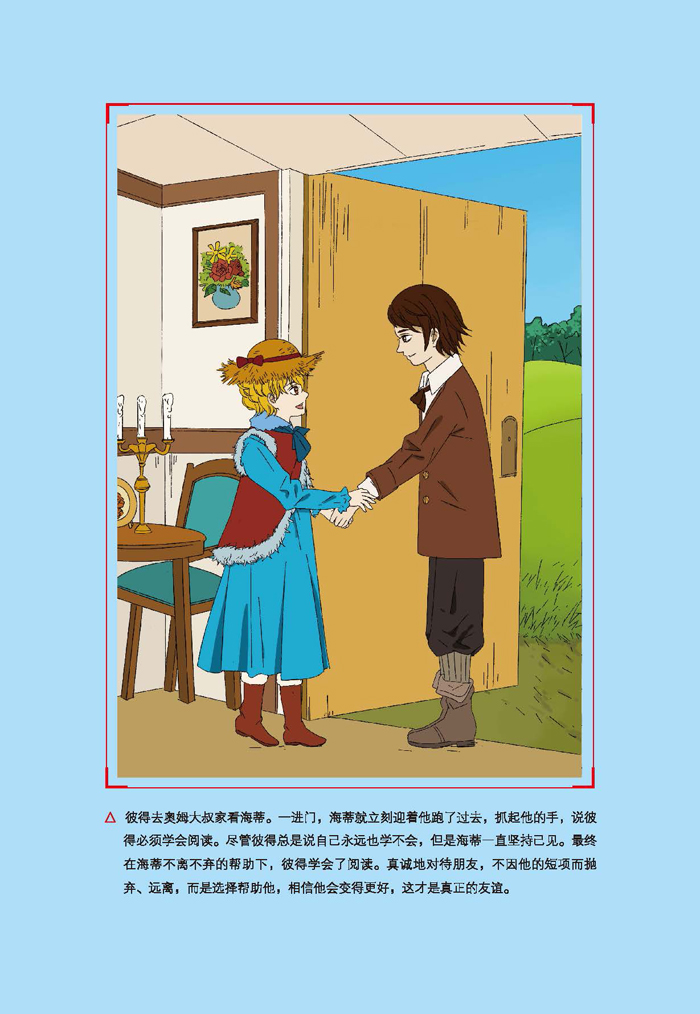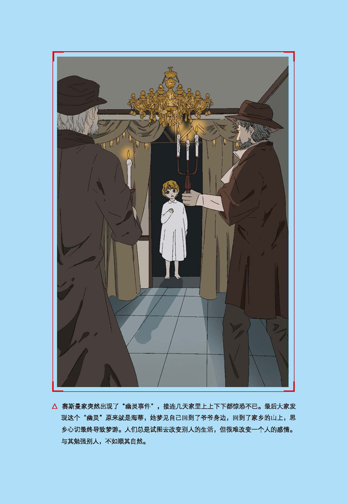 第一章到奥姆大叔身边去 两人就这样磨磨蹭蹭地从山谷往山上走了大约一个小时,才来到半山腰一个叫作“德夫里”的小村子。刚一进村,有些人就从窗口或家门口向她们问好,还有些人在路上跟她们寒暄(xuān),几乎所有的村民都跟她们打招呼。原来这里就是那位村姑的家乡。但是,她似乎并没有在路上停留片刻,她一边脚步不停地向前走着,一边回答着熟人们提出的各种问题。很快,她们来到村子的尽头,这里零星地住着几户人家,这时从一家房门口传来一个声音。 “迪特,等一下,你是不是还要往上走?我也跟你同道,咱们一块去吧!” 听到了打招呼的声音,迪特停下了脚步。小女孩连忙挣脱开了她的手,一屁股蹲坐到地上。 “你很累吧,海蒂?”迪特问道。 “不是很累,就是热得要命。”小女孩回答道。 “我们很快就要到山顶了。你还得再坚持一会儿,走快一点儿好吗?大概一个钟头我们就能到了!”迪特只好鼓励着小女孩。 话音刚落,一个看上去挺慈祥的胖妇女从屋里走了出来,然后跟着她们两人结伴同行。两个熟识的大人走在前面,小女孩紧随其后。这两个人相见如故,很快就谈论起德夫里村里和附近村民的情况。 “迪特,你这是要把孩子带到哪里去?”路上一个刚加入进来的新伙伴问,“我看她很像你姐姐,是她留下的孩子吧?” “是啊,”迪特回答道,“我要把她领到大叔那儿去,让她留在那里。” “什么?你要把孩子留给奥姆大叔?你没搞错吧,迪特!你怎么能这样做呢!你和那个老头儿一说,他肯定会把你们撵(niǎn)回来的!” “他可是孩子的爷爷,他不可以这样做。这是他必须为这个孩子尽的义务。我可是把她从小照顾到现在。芭贝尔,跟你说实话,这次我是找到活儿干了,我实在不想因为这个孩子而失去这么好的机会。所以,也该轮到她爷爷尽尽义务照顾她了。” “是啊,要是他是个正常人,就没什么可担心的了。”好心的胖芭贝尔一本正经地说,“但是,他是什么人你应该知道呀!他怎么可能懂得如何照顾小孩子,而且她还是个那么小的孩子!这孩子怎么跟他在一起生活?还有,你究竟要去哪儿干活儿呢?” “去法兰克福,我在那儿找到了一份很好的工作。”迪特解释说,“去年夏天,那户人家来山下的温泉时,我正好负责打扫他们的房间。那时他们就希望我去他们那儿干活儿,可是当时我没去成。现在他们又来了,还希望我能过去干活儿,这回我可一定要去。我说的这些都是真的,我想你能理解吧!” “唉,幸好我不是那个小女孩!”芭贝尔摆出一副无可奈何的样子叫嚷道,“谁都不知道山上那老头儿到底是怎么生活的!他跟谁也不来往,一年到头他一次也没去过教堂。偶尔见他拄着大粗棍子从山上下来那么一次,人们也会赶紧躲开他。远远地就能看到他那颜色花白的大粗眉毛,尤其是那吓人的大胡子,是人见人怕。他看起来简直就是那异教徒老头儿,和印第安人差不多,人人都不想在路上撞见他。” “唉,那有什么啊?”迪特固执地说,“他到底是这孩子的爷爷,照顾她是理所应当的。他应该不会错待孩子,要是真有什么事,也该由他来负责,跟我没什么关系。” “我很想知道,”芭贝尔继续打听道,“那个老头儿怎么会变成今天这样?他到底在良心上受了什么罪?像个修道士似的一个人住在山上,离群索居,几乎很少有人见到他。关于他的说法,真是无奇不有。不过,迪特,你应该从你姐姐那儿多少听说了一些,对吗?” “你猜得对,我确实知道一点点,但是我现在什么都不能说,要是传到他的耳朵里,那我的麻烦就大了。” 但是,芭贝尔一直都想探听奥姆大叔的事,她很想知道他为什么对世人这么厌恶,一直坚持一个人居住,还有人们为什么一谈起他来就吞吞吐吐的,仿佛都害怕说出什么有损他的话,但对他又不愿意奉承。而且芭贝尔也搞不懂,为什么德夫里村的人都叫他“奥姆大叔”,他根本不可能是这里任何一个人的大叔。 因为不久前芭贝尔才嫁到德夫里村,所以她也只好入乡随俗跟着其他人称呼他为大叔。芭贝尔结婚之前一直住在山下的普来蒂高,所以她对住在德夫里及其附近地方的人是不大了解的,也不大了解那里发生过的事情。相反,迪特是从小在德夫里长大的,直到一年前她母亲去世了,她才离开村子去拉格兹温泉的。她在那儿的一家大旅馆找了一份女服务员工作,是负责打扫的。今天早上,她是从拉格兹一路领着孩子过来的,路上碰到熟人正赶着拉干草的马车,于是她们就搭着便车来到了梅恩菲尔德。 为了满足自己的好奇心,芭贝尔打定主意,一定不能错失今天这个千载难逢的好机会。于是,她亲密地挽着迪特的手臂说:“我想你肯定知道村里流传的那些传说是真是假,你也一定知道事情的来龙去脉。你告诉我,好吗?那个老头儿到底发生了什么事?他以前就是这么孤僻吗?也是特别讨厌其他人吗?” “我也不太清楚他是不是一直都是这个样子,你想我现在也才二十六岁,而他现在至少有七十岁了,我也不可能知道他年轻时的样子。不过,你要是能保证我的这些话不会被传得沸沸扬扬,不会被整个普来蒂高人人都知道,那我就可以把关于他的事情全告诉你。因为我妈妈是出生在多姆莱斯克的,那个老头儿也是。” “全是废话嘛,迪特,你说什么呢?”芭贝尔有些不耐烦地回敬道,“在普来蒂高哪有那么多爱嚼舌根的人呀!再说了,就算真有什么,我也会永远把话烂在肚子里。” “好吧,那我