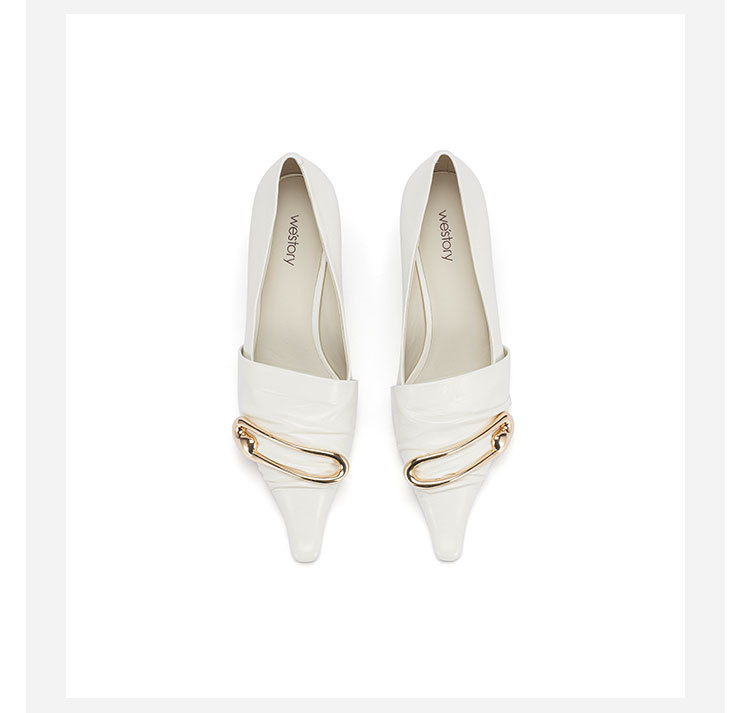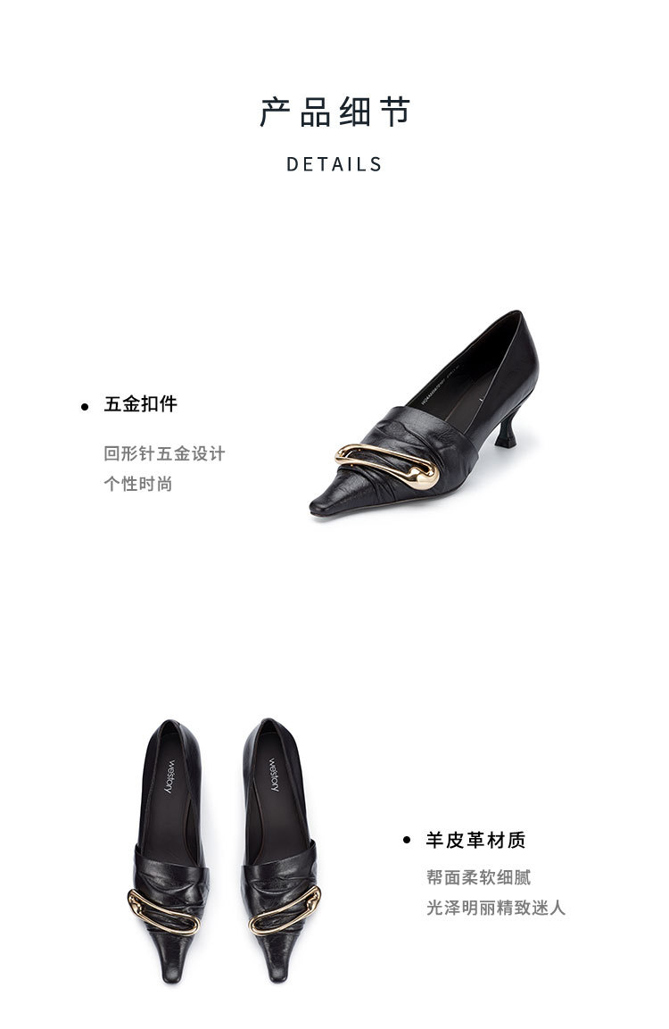 westory2024春季新款细中跟尖头钻饰时尚百搭小皮鞋W24AM56701