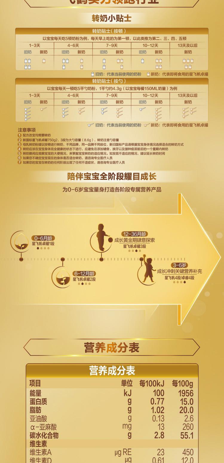 飞鹤星飞帆卓耀3段幼儿配方奶粉听装750g
