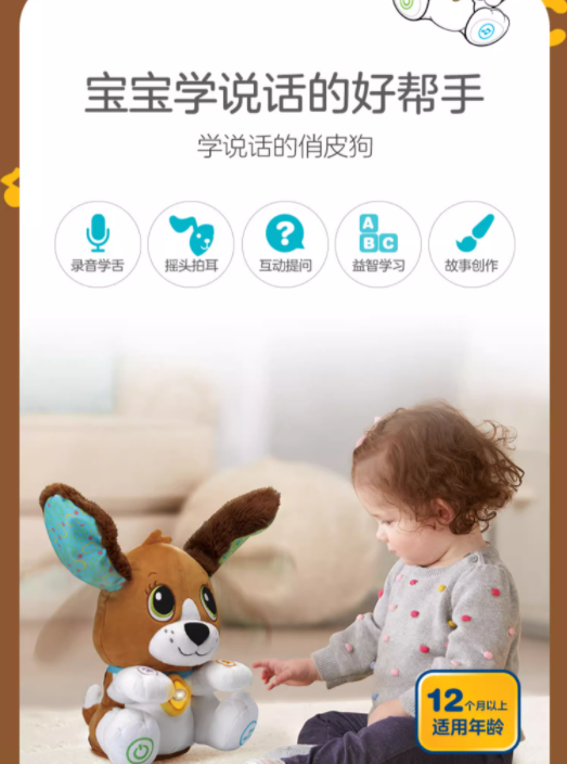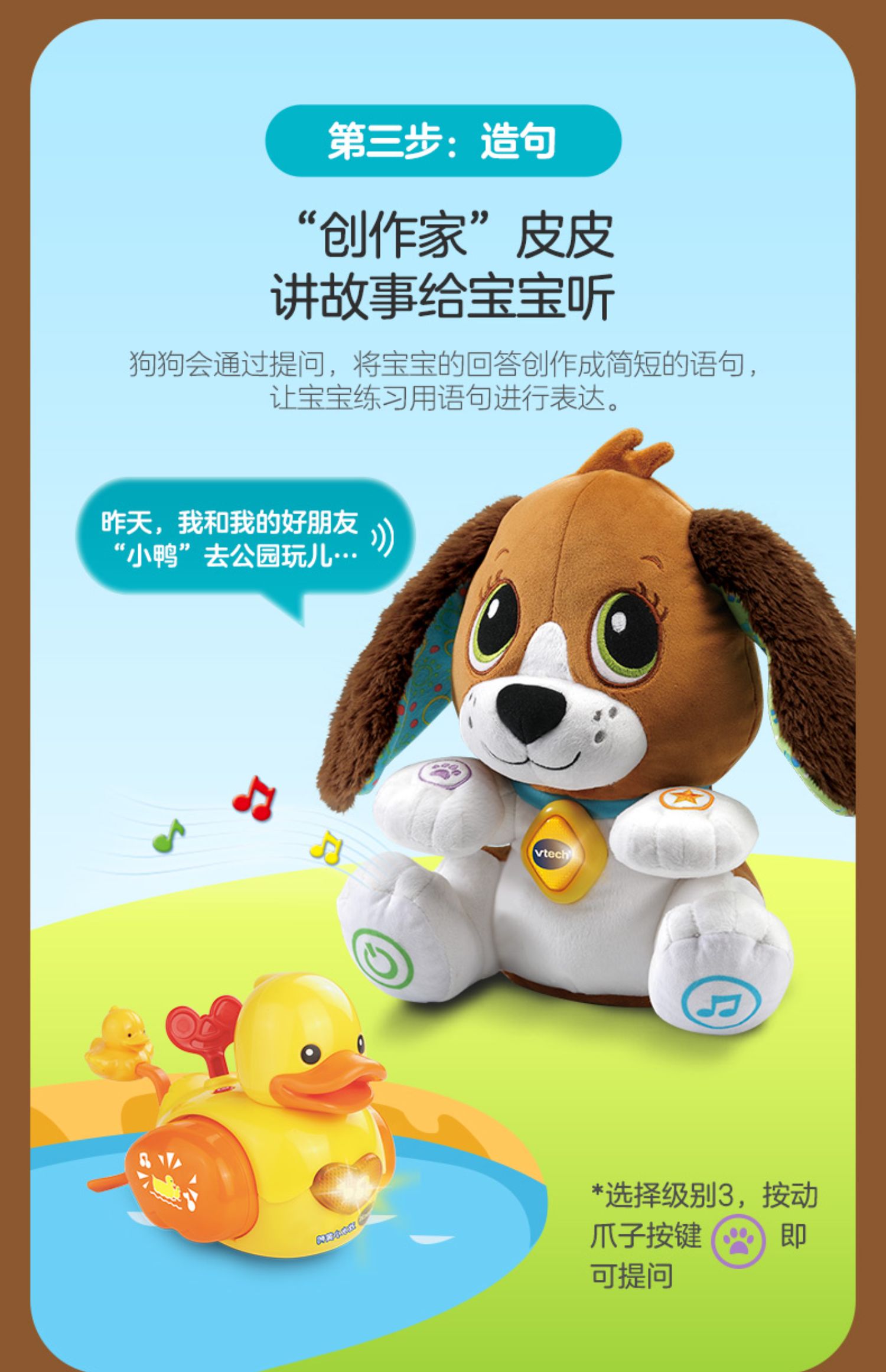1岁+ | VTech伟易达 学说话的俏皮狗 婴儿玩具复读鸭玩偶网红会说话电动毛绒公仔