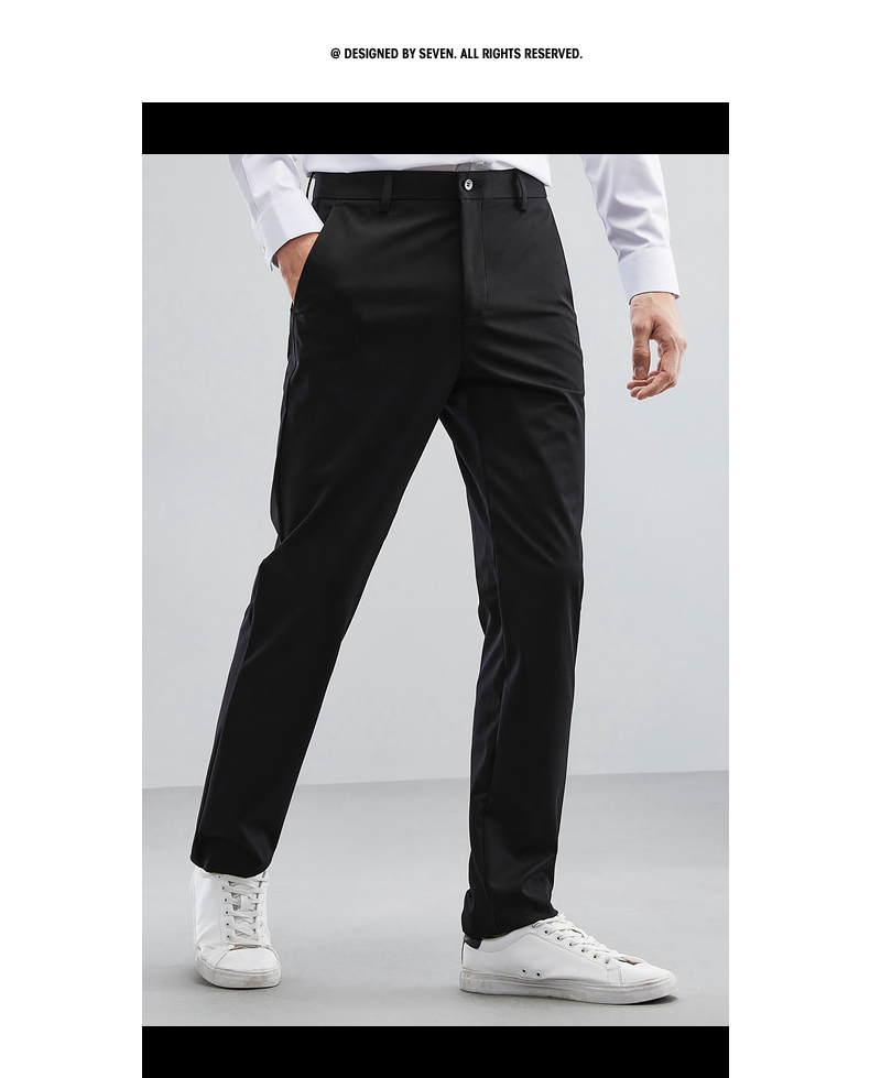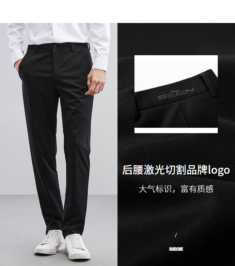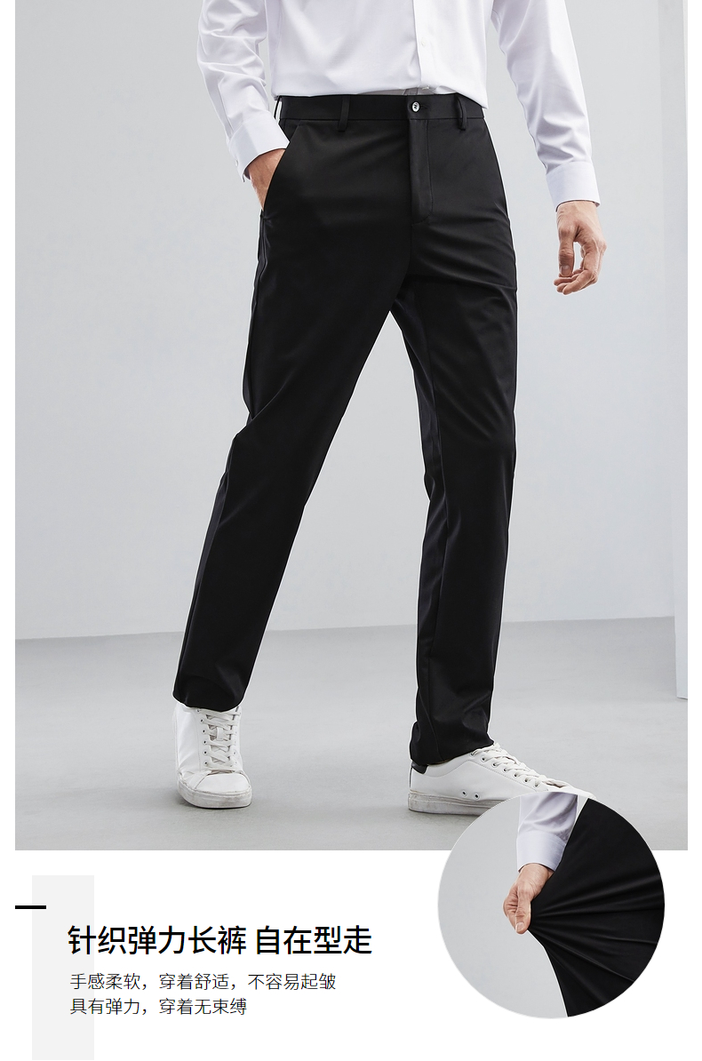 柒牌休闲长裤男春夏新款商务通勤中青年弹力针织中腰直筒男裤 124H70060