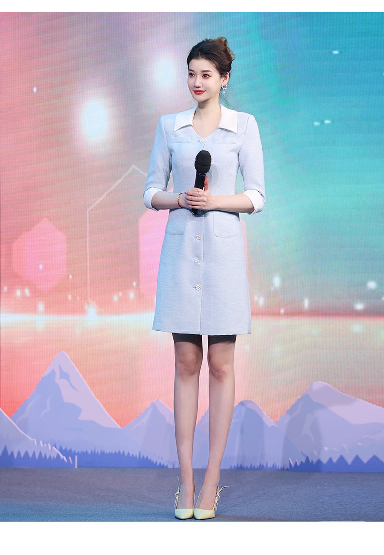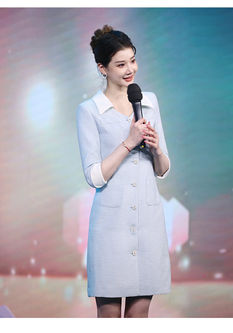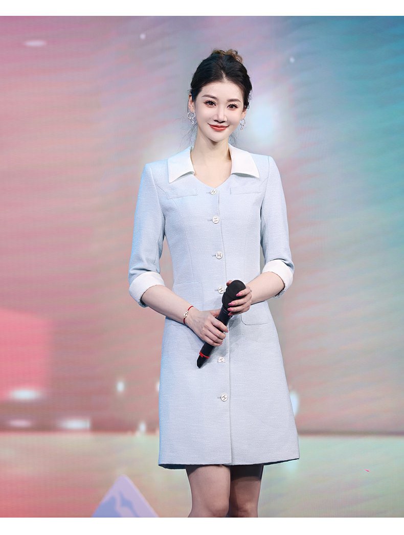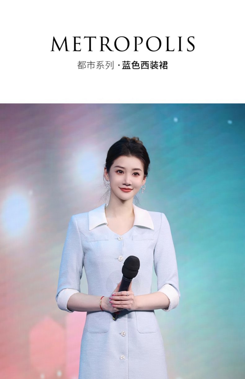 IWY/气质蓝色名媛西装连衣裙女播音主持人正装演讲比赛职业裙Q1068