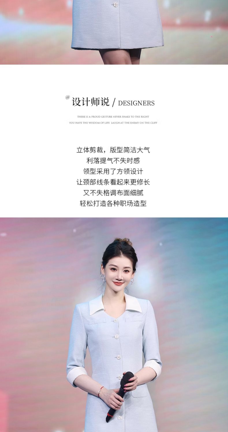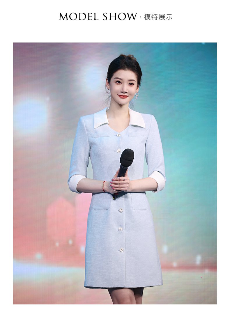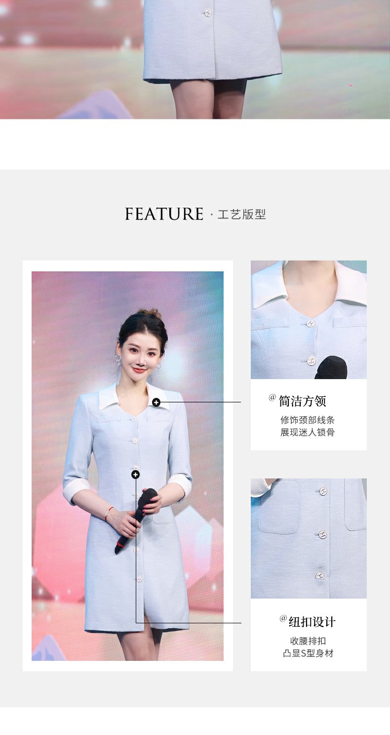 IWY/气质蓝色名媛西装连衣裙女播音主持人正装演讲比赛职业裙Q1068