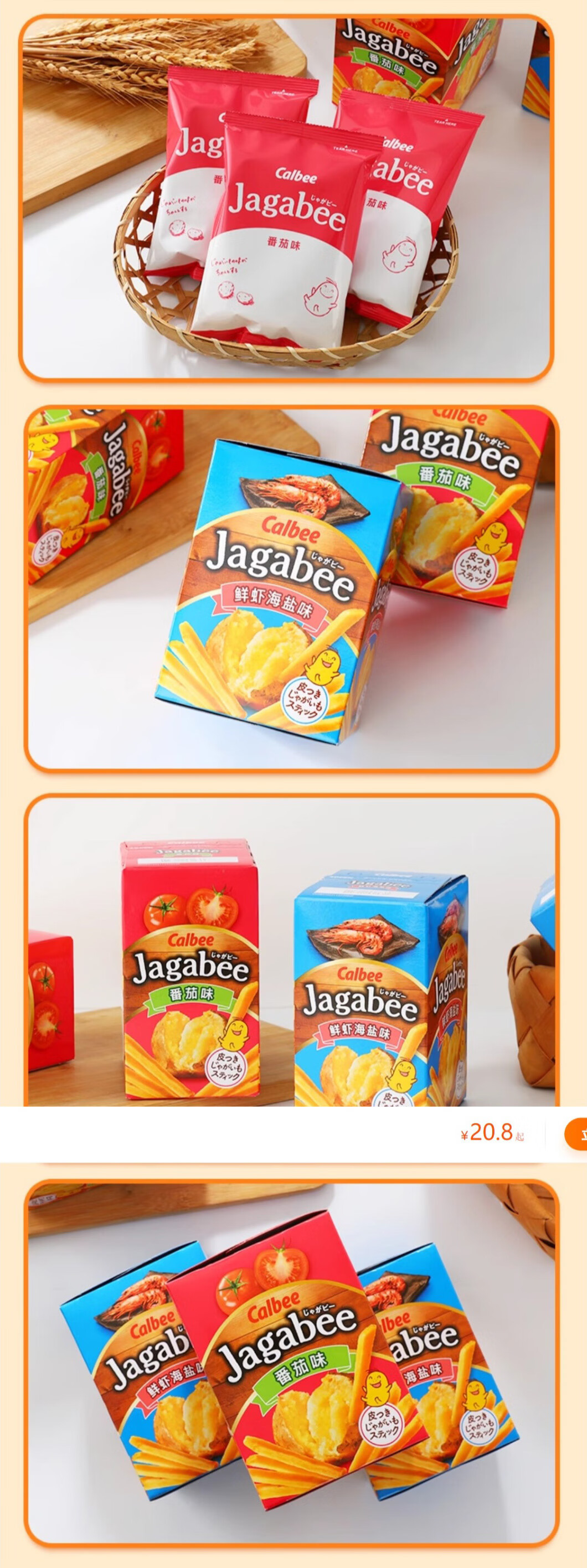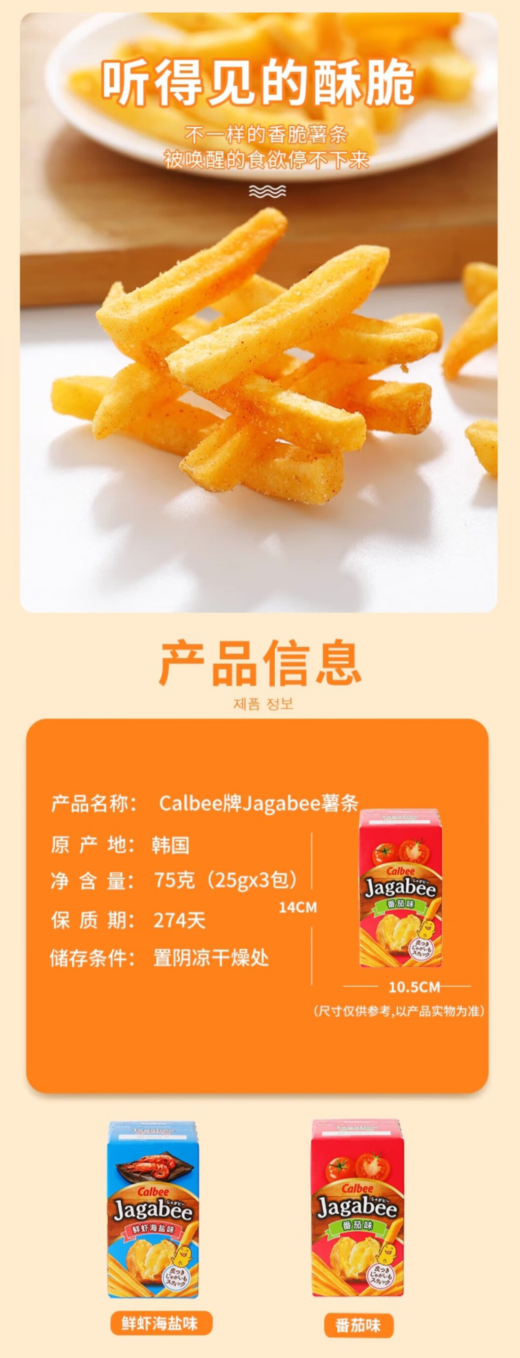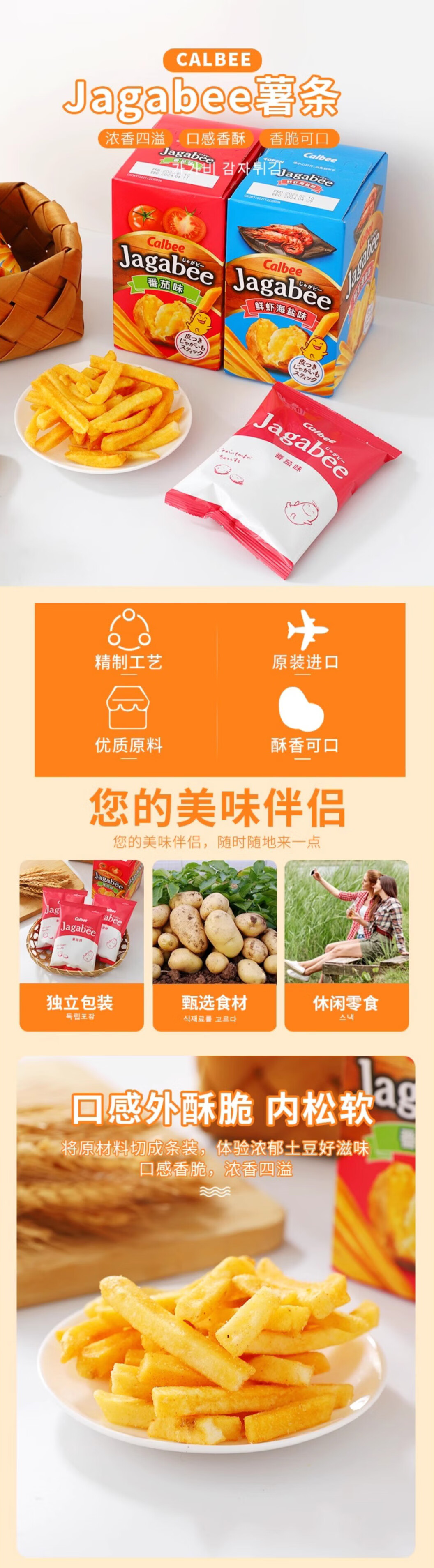 Calbee牌Jagabee鲜虾海盐味/番茄味薯条75g 闲暇时光薯味陪伴外脆里酥 152534/152535