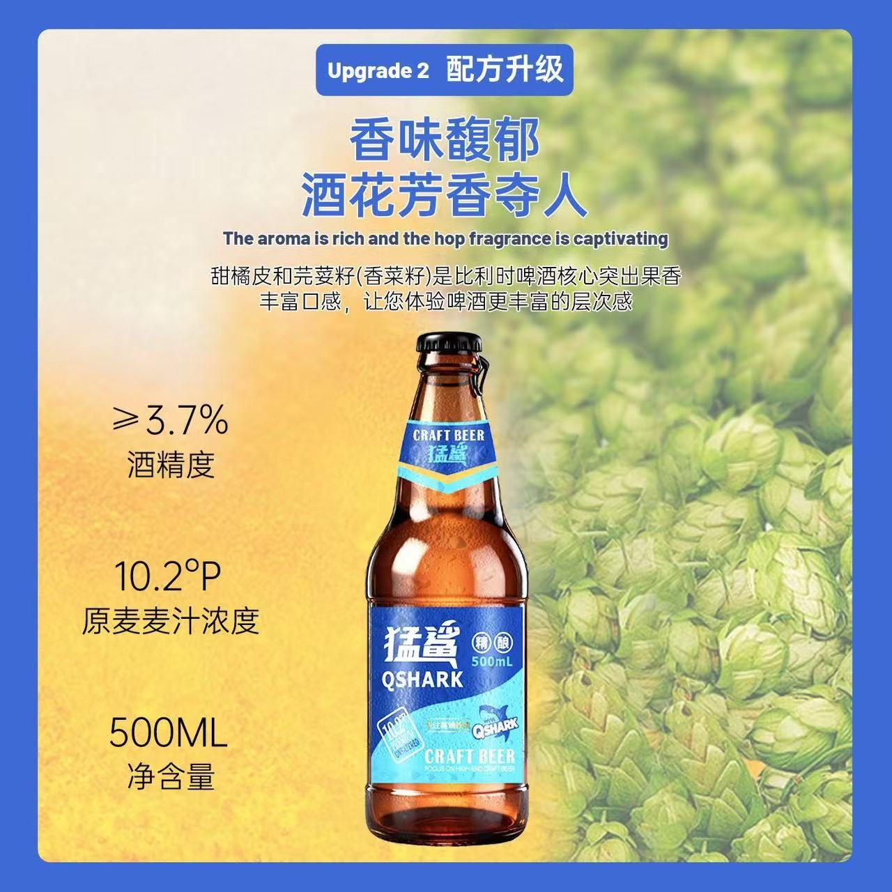 猛鲨比利时风味精酿啤酒 酒精度:3.7° 麦芽度:10.2°