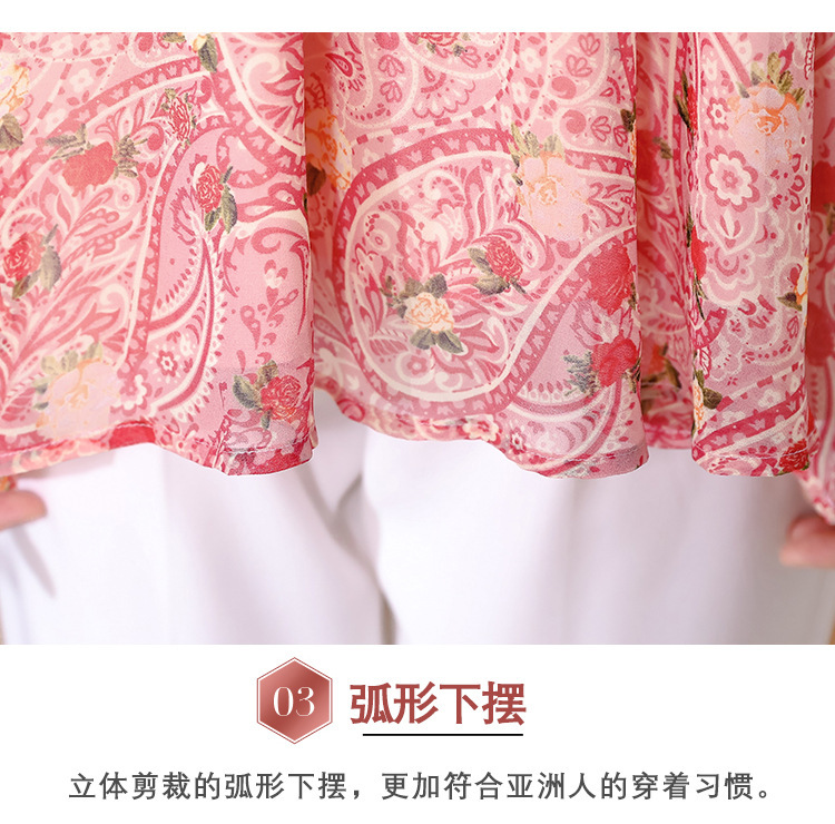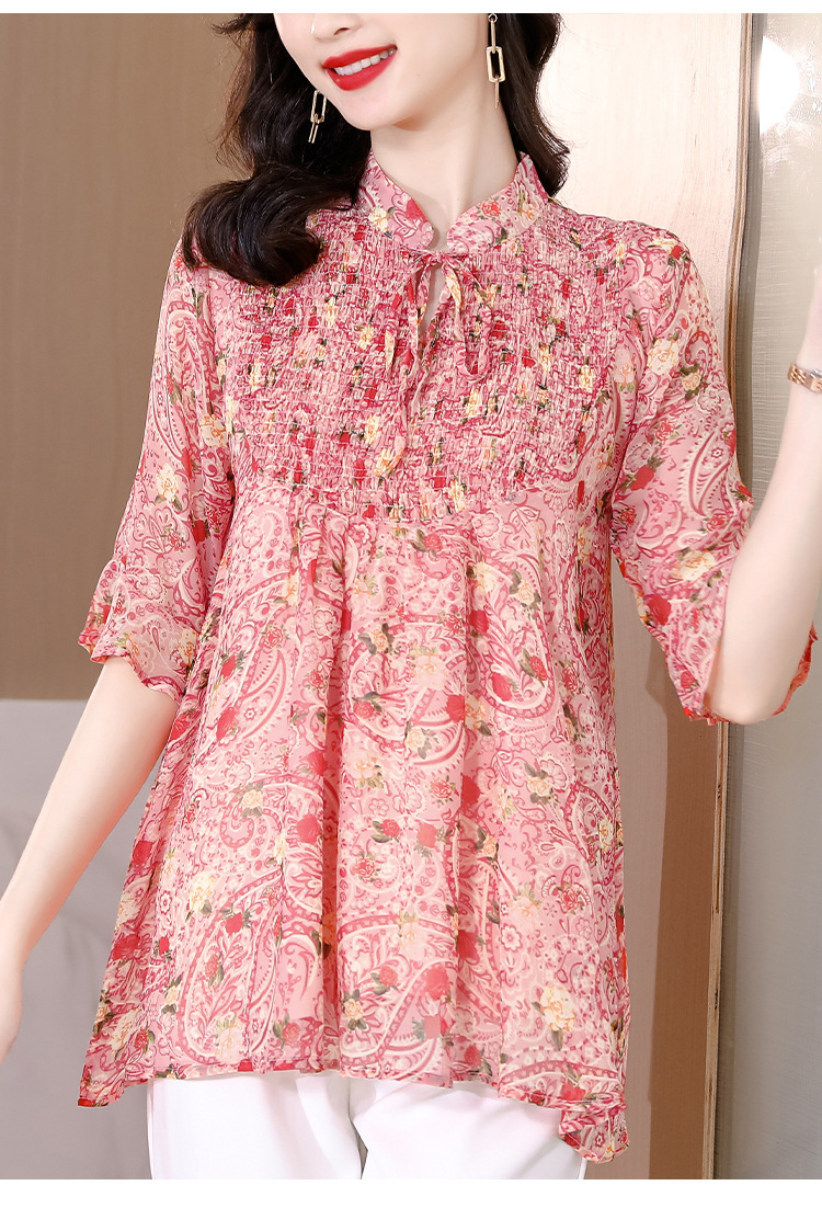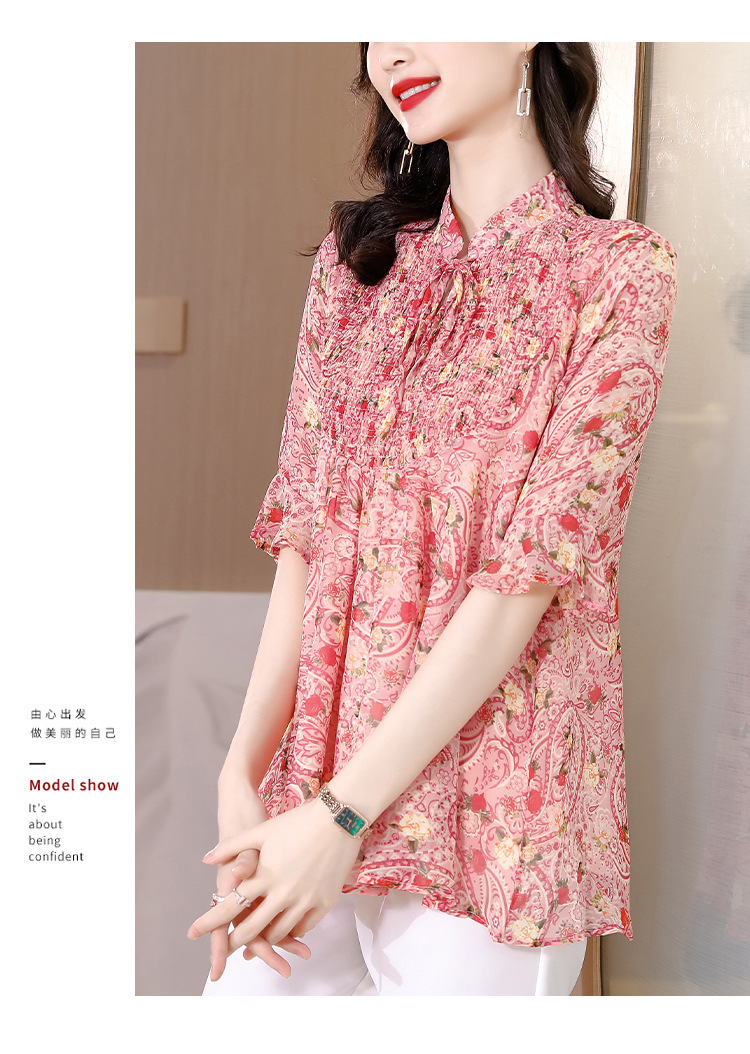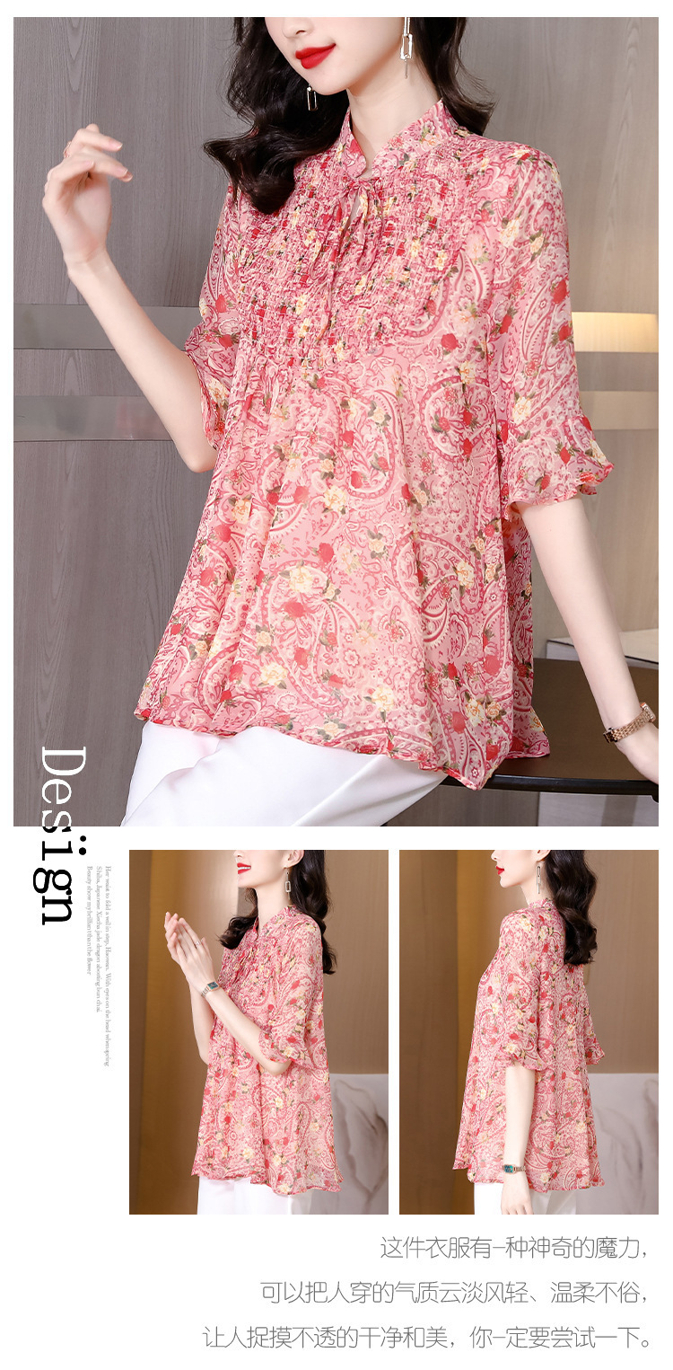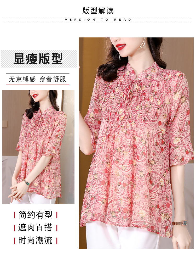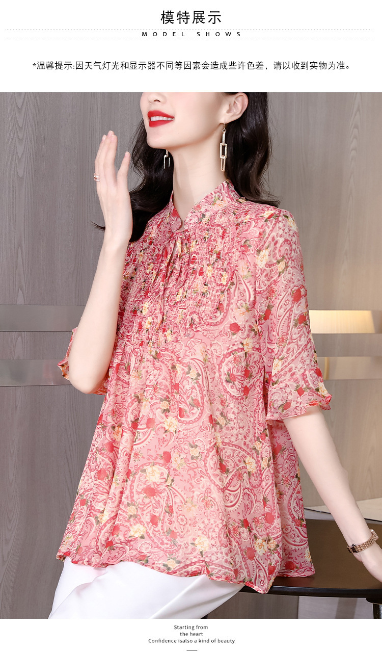漂亮雪纺衫碎花中袖a字裙摆遮肚减龄漂亮小衫KQL-A51N3337