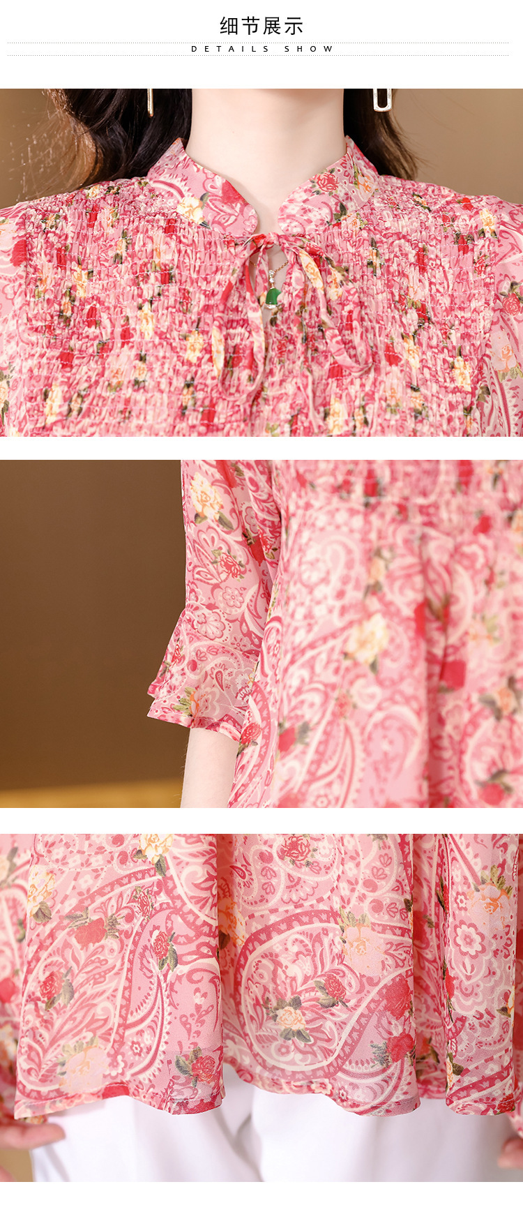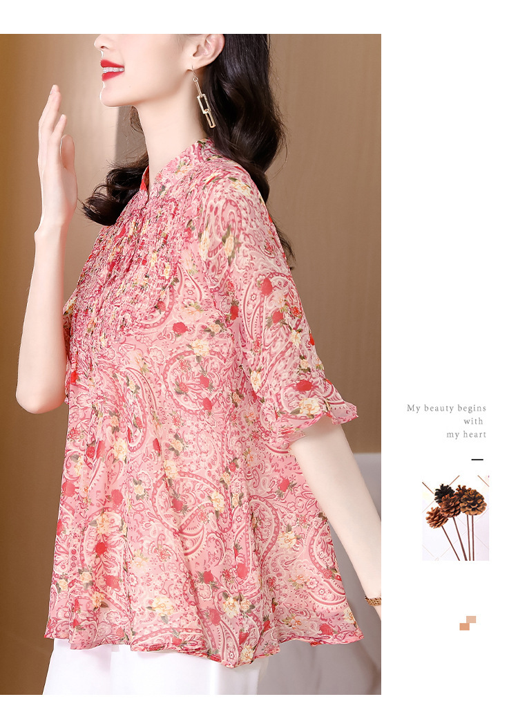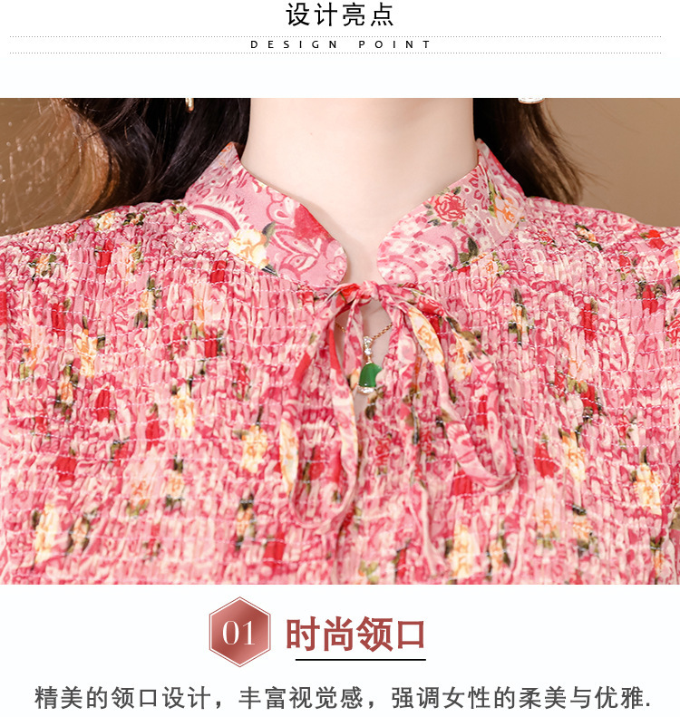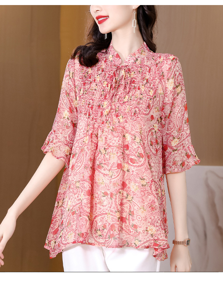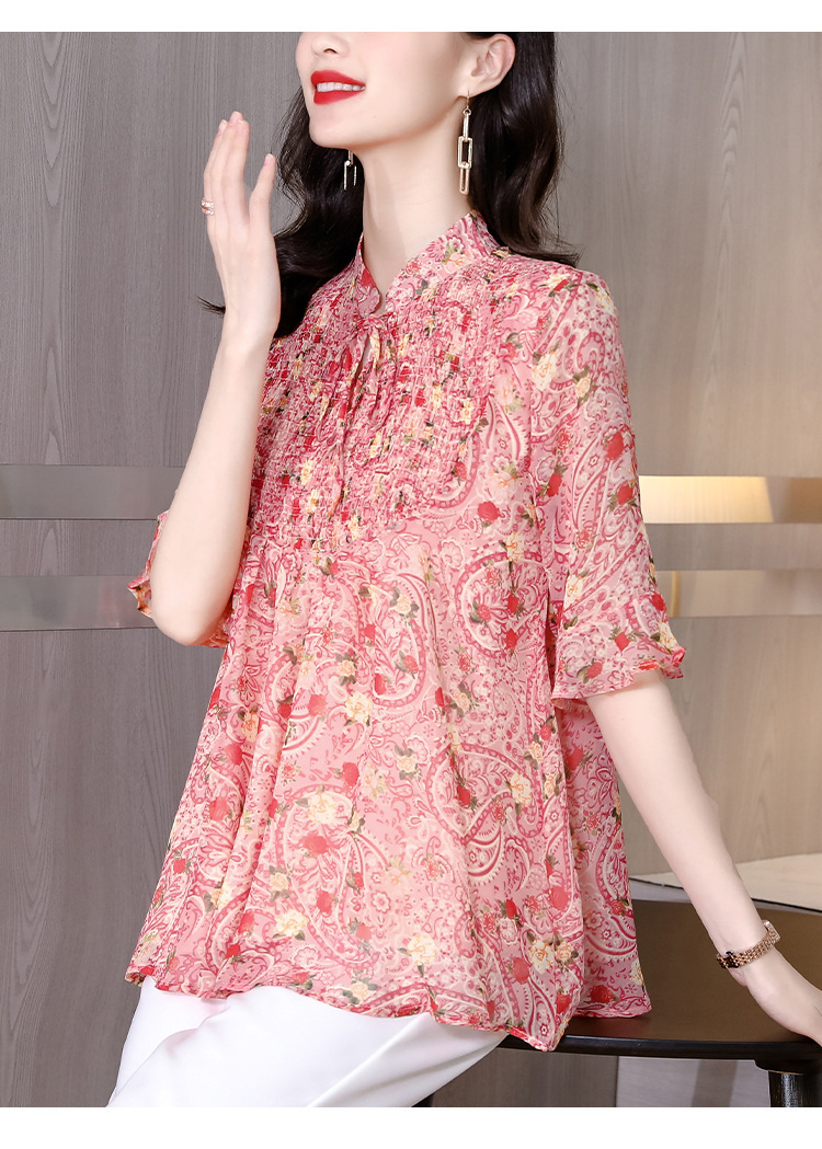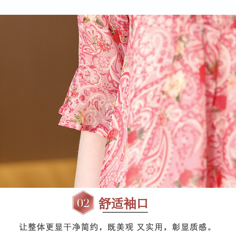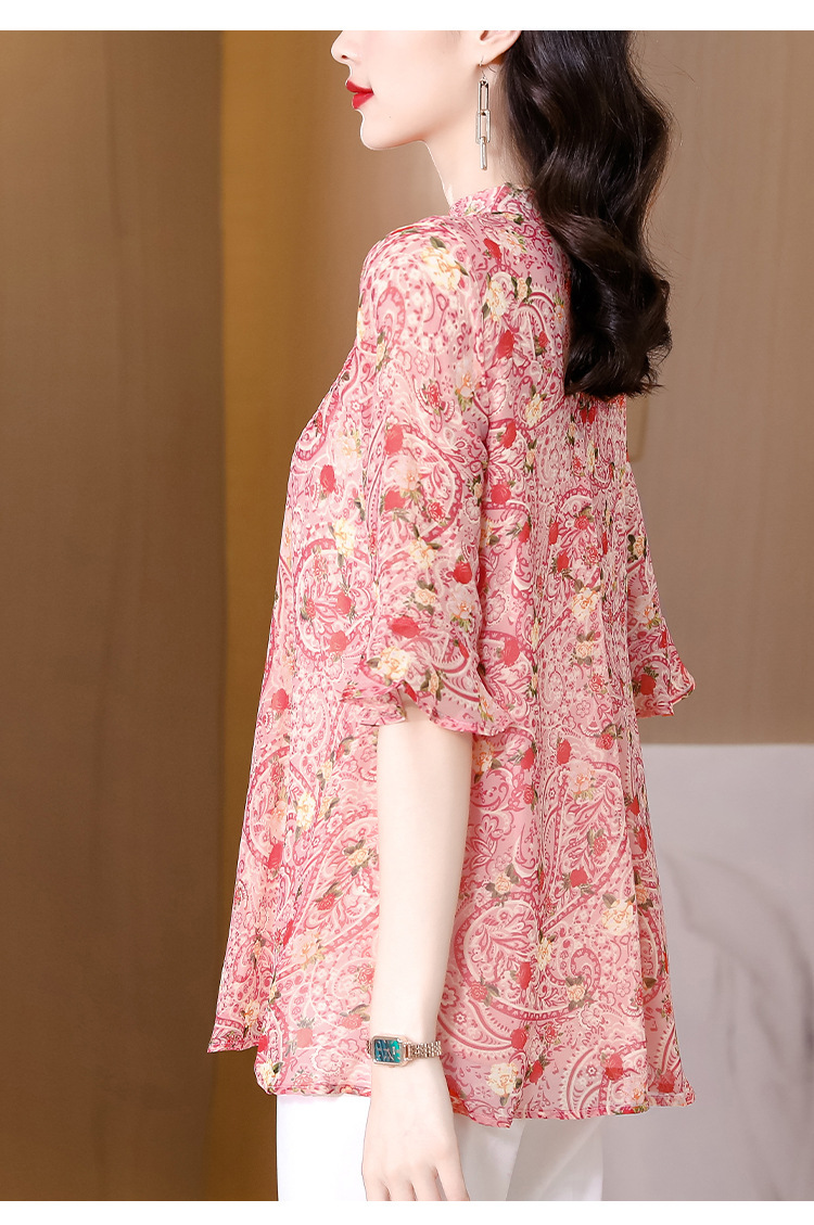 漂亮雪纺衫碎花中袖a字裙摆遮肚减龄漂亮小衫KQL-A51N3337