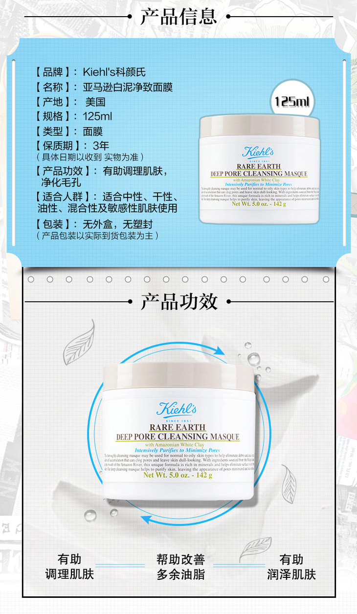 科颜氏亚马逊净致白泥面膜125ml