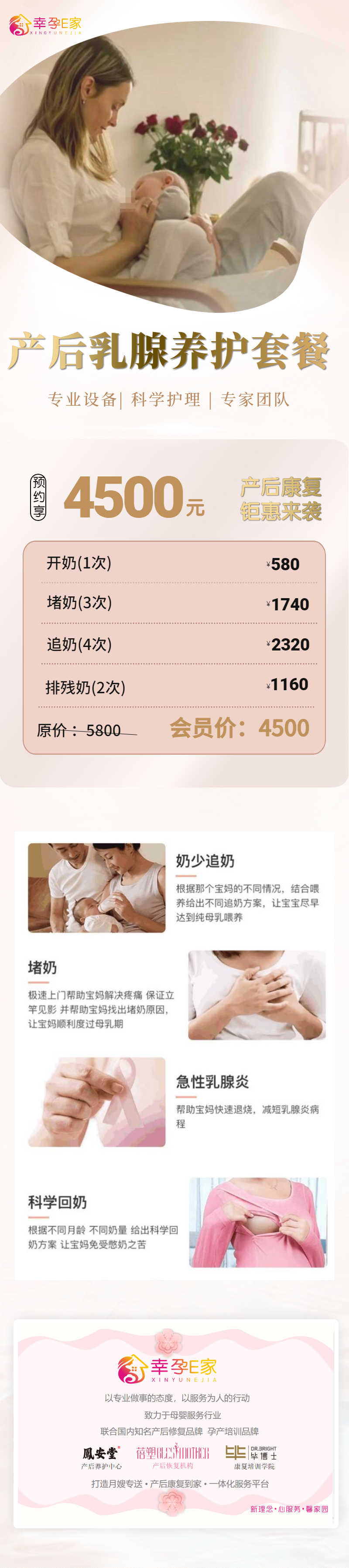【15%订金】幸孕E家高端上门产后修复 乳腺养护套餐 开奶/堵奶/追奶/排残奶 会员价4500元/10次