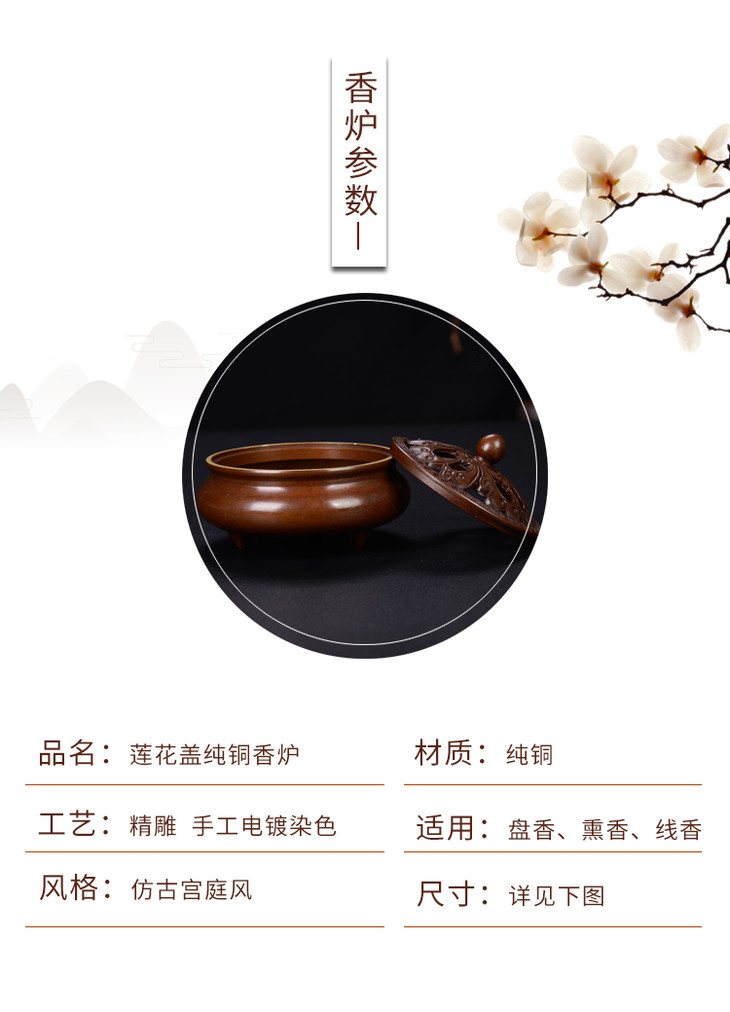 纯铜盘香炉禅意供佛供奉茶道香薰炉家用室内檀香炉创意摆件熏香炉