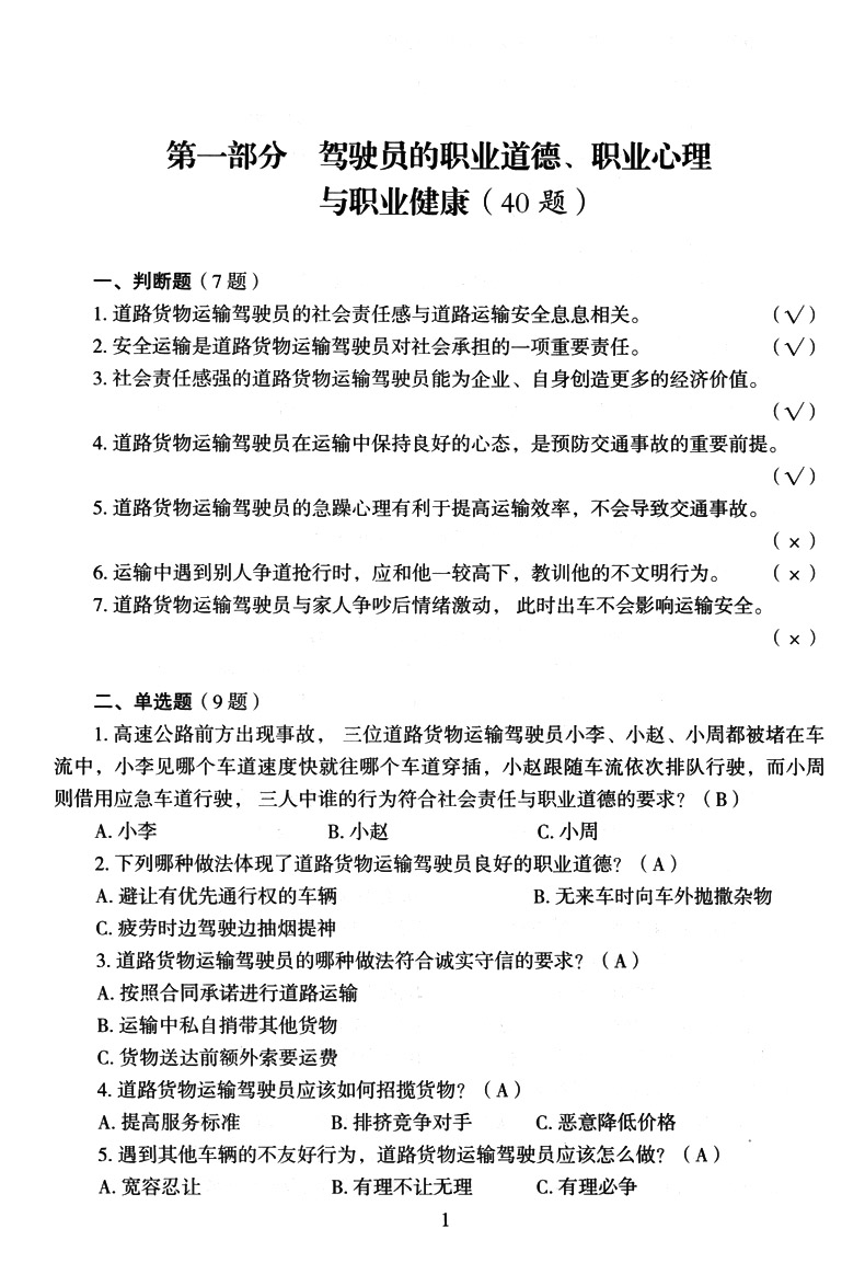 书名:道路货物运输驾驶员从业资格考试基本知识考试题库