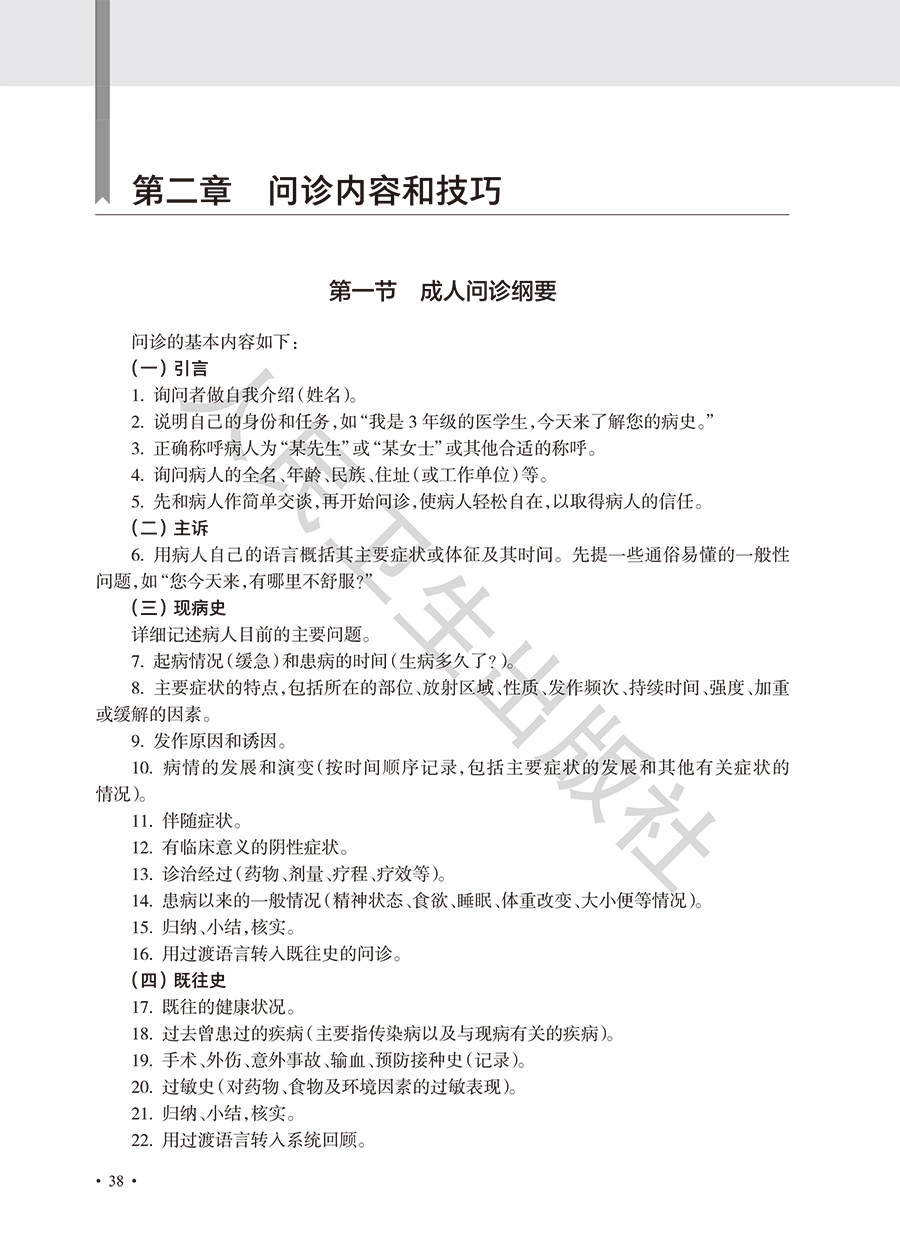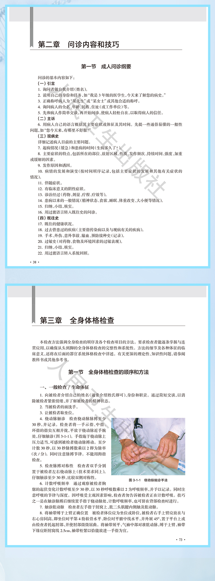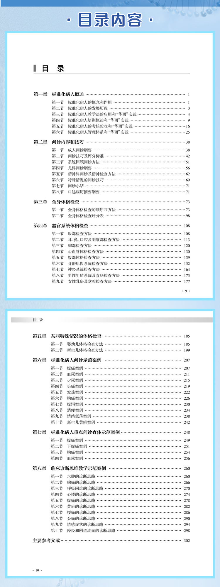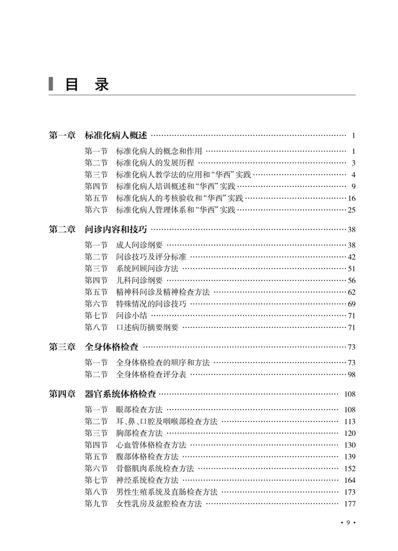 第一章 标准化病人概述/ 1 第一节 标准化病人的概念和作用/ 1 第二节 标准化病人的发展历程/ 3 第三节 标准化病人教学法的应用和“华西”实践/ 4 第四节 标准化病人培训概述和“华西”实践/ 9 第五节 标准化病人的考核验收和“华西”实践/ 16 第六节 标准化病人管理体系和“华西”实践/ 25 第二章 问诊内容和技巧/ 38 第一节 成人问诊纲要/ 38 第二节 问诊技巧及评分标准/ 42 第三节 系统回顾问诊方法/ 51 第四节 儿科问诊纲要/ 56 第五节 精神科问诊及精神检查方法/ 62 第六节 特殊情况的问诊技巧/ 69 第七节 问诊小结/ 71 第八节 口述病历摘要纲要/ 71 第三章 全身体格检查/ 73 第一节 全身体格检查的顺序和方法/ 73 第二节 全身体格检查评分表/ 98 第四章 器官系统体格检查/ 108 第一节 眼部检查方法/ 108 第二节 耳、鼻、口腔及咽喉部检查方法/ 113 第三节 胸部检查方法/ 120 第四节 心血管体格检查方法/ 130 第五节 腹部体格检查方法/ 139 第六节 骨骼肌肉系统检查方法/ 152 第七节 神经系统检查方法/ 164 第八节 男性生殖系统及直肠检查方法/ 173 第九节 女性乳房及盆腔检查方法/ 177 第五章 某些特殊情况的体格检查/ 185 第一节 婴幼儿体格检查方法/ 185 第二节 新生儿体格检查方法/ 199 第六章 标准化病人问诊示范案例/ 207 第一节 腹痛案例/ 207 第二节 血尿案例/ 211 第三节 少尿案例/ 215 第四节 头痛案例/ 219 第五节 发热案例/ 222 第六节 胸痛案例/ 226 第七节 腹泻案例/ 230 第八节 消瘦案例/ 234 第九节 情绪低落案例/ 238 第十节 新生儿黄疸案例/ 242 第七章 标准化病人重点问诊查体示范案例/ 248 第一节 腹痛案例/ 249 第二节 下腹痛案例/ 251 第三节 胸痛案例/ 254 第四节 血尿案例/ 256 第八章 临床诊断思维教学示范案例/ 260 第一节 水肿的诊断思路/ 260 第二节 胸痛的诊断思路/ 266 第三节 呼吸困难的诊断思路/ 270 第四节 心悸的诊断思路/ 274 第五节 腹痛的诊断思路/ 278 第六节 黄疸的诊断思路/ 282 第七节 腰痛的诊断思路/ 286 第八节 头痛的诊断思路/ 290 第九节 情感症状的诊断思路/ 294 第十节 停经和阴道流血的诊断思路/ 298 主要参考文献/ 302