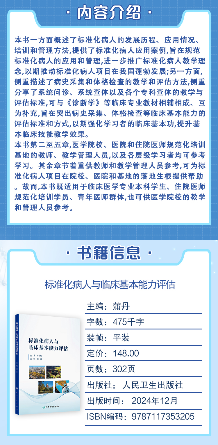 标准化病人与临床基本能力评估 蒲丹 既可作为医学相关专业教师等的参考用书 又可作为医学院校本专科学生等的学习和考试参考用书