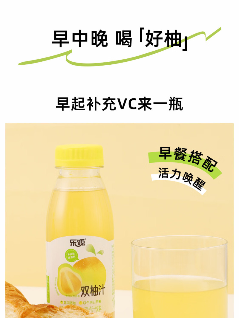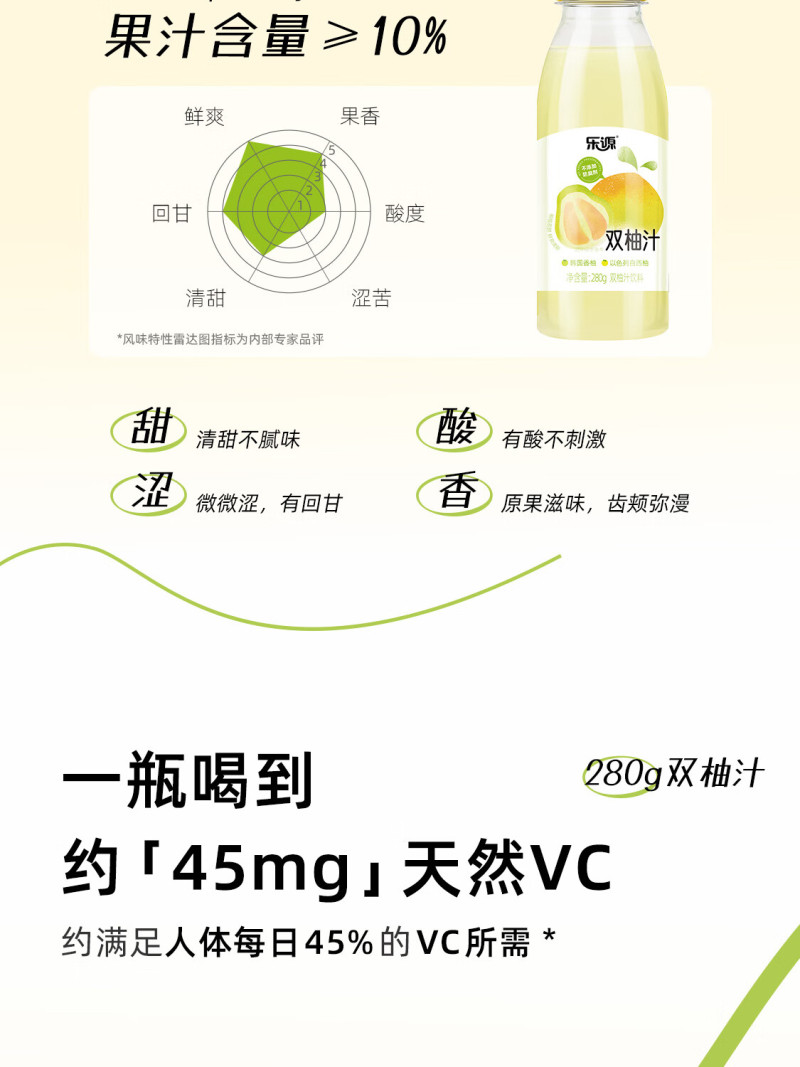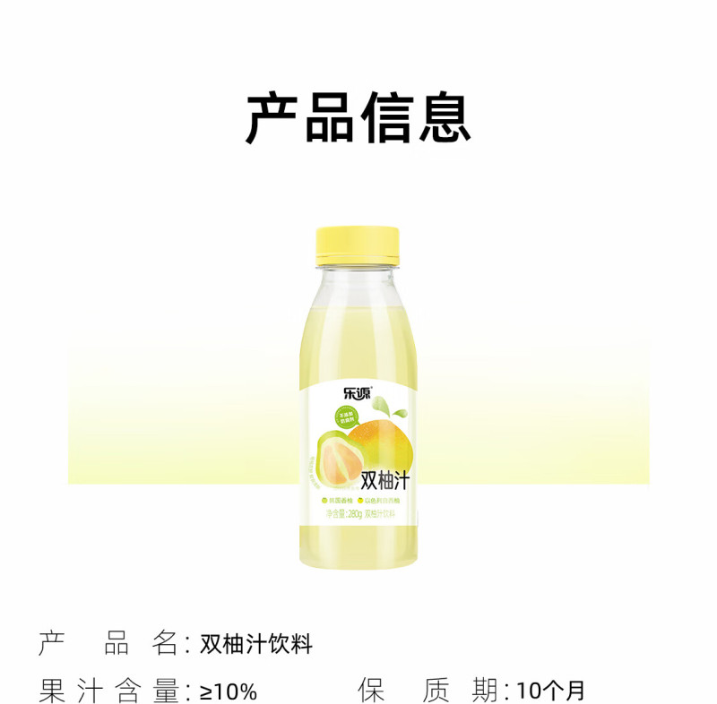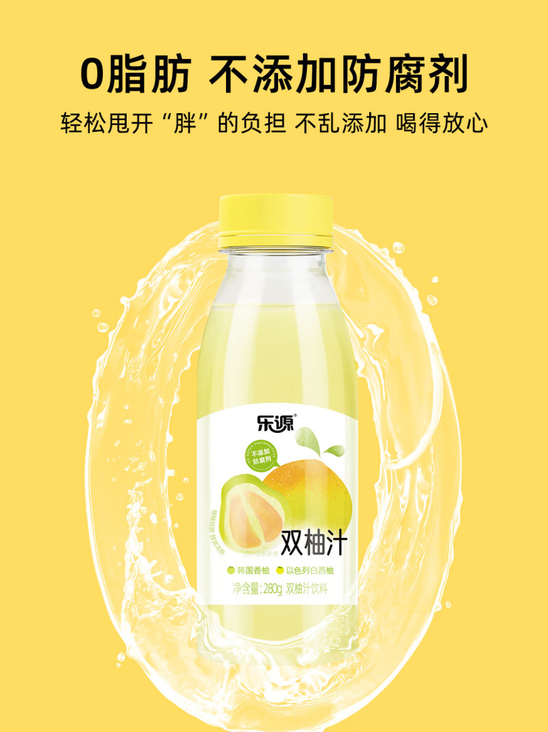 乐源双柚汁饮料工艺柚子味饮料280g*8瓶装