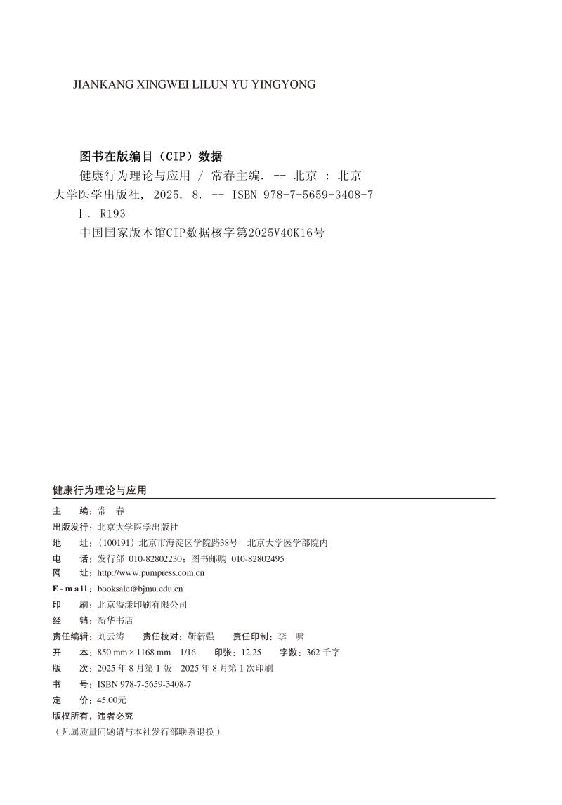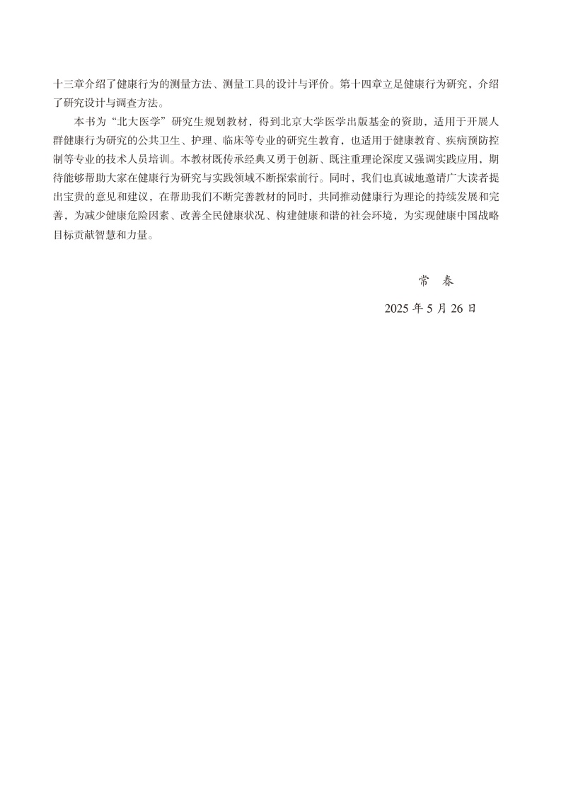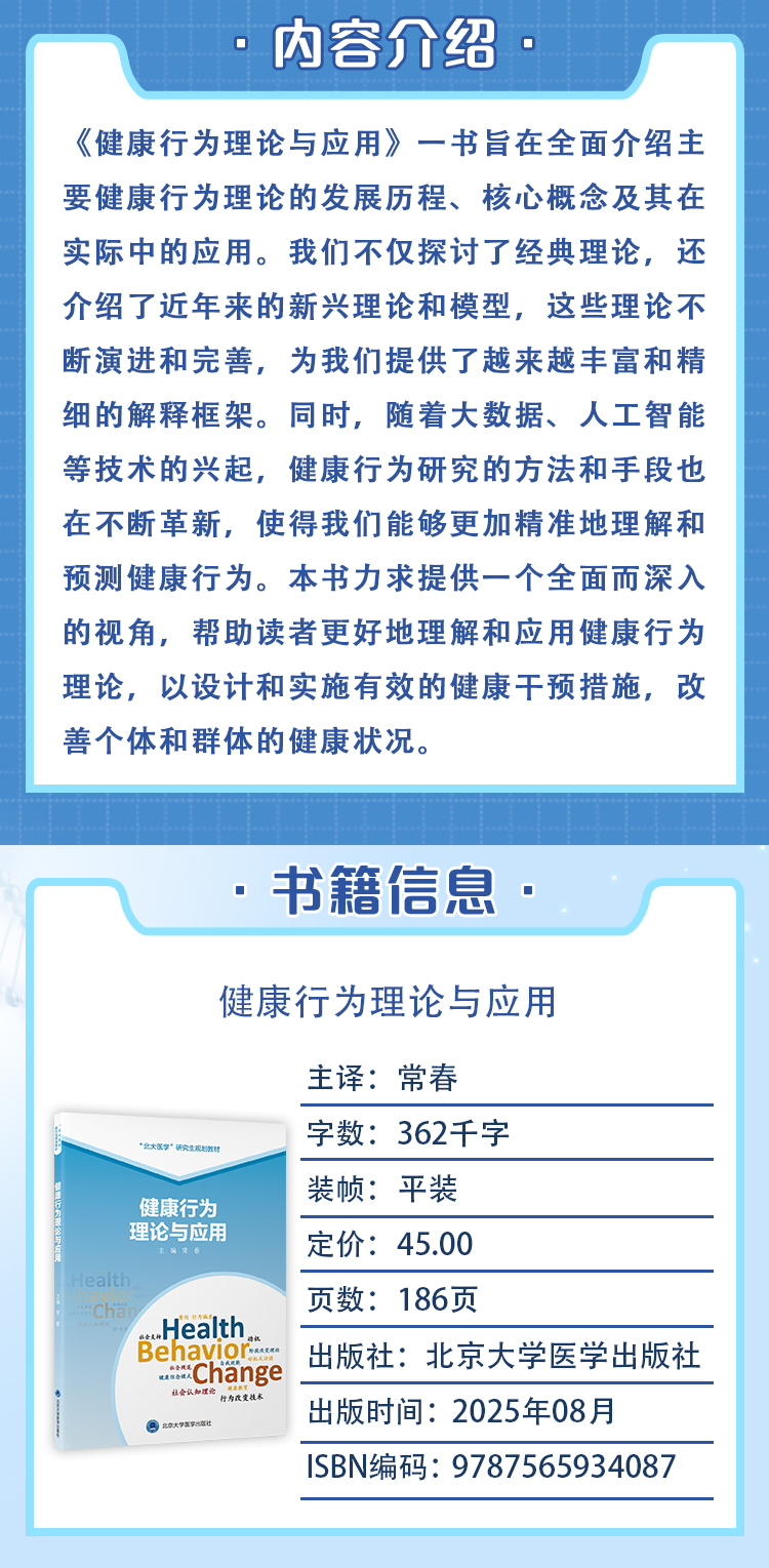 健康行为理论与应用 北大医学研究生规划教材 常春 健康信念模式与保护动机理论 社会学习理论与社会认知理论 北京大学医学出版社