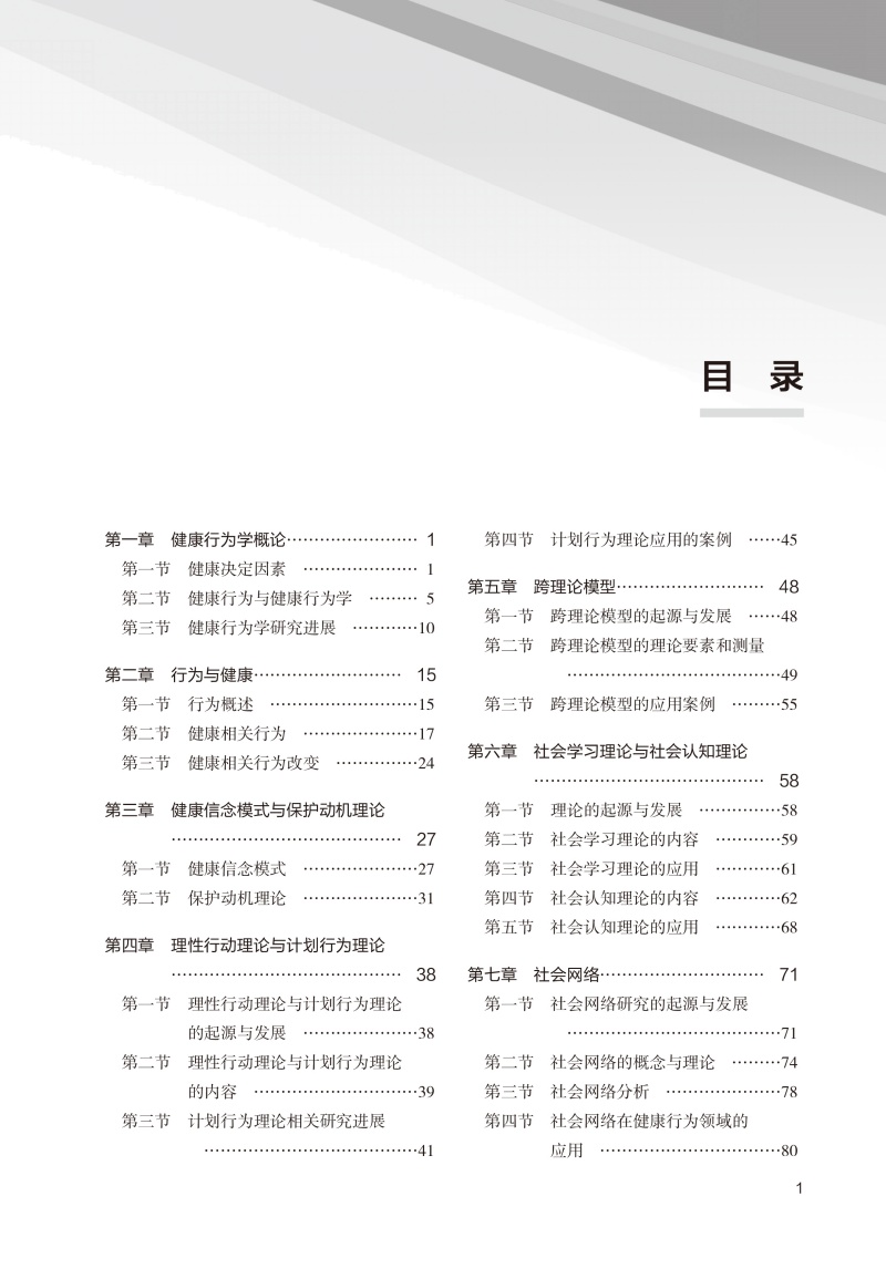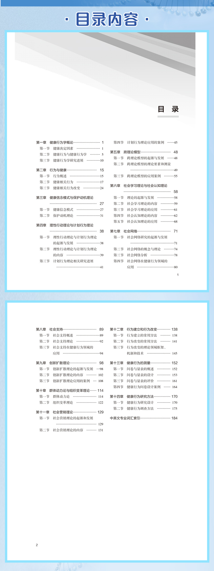 《健康行为理论与应用》一书旨在全面介绍主要健康行为理论的发展历程、核心概念及其在实际中的应用。我们不仅探讨了经典理论,还介绍了近年来的新兴理论和模型,这些理论不断演进和完善,为我们提供了越来越丰富和精细的解释框架。同时,随着大数据、人工智能等技术的兴起,健康行为研究的方法和手段也在不断革新,使得我们能够更加精准地理解和预测健康行为。本书力求提供一个全面而深入的视角,帮助读者更好地理解和应用健康行为理论,以设计和实施有效的健康干预措施,改善个体和群体的健康状况。